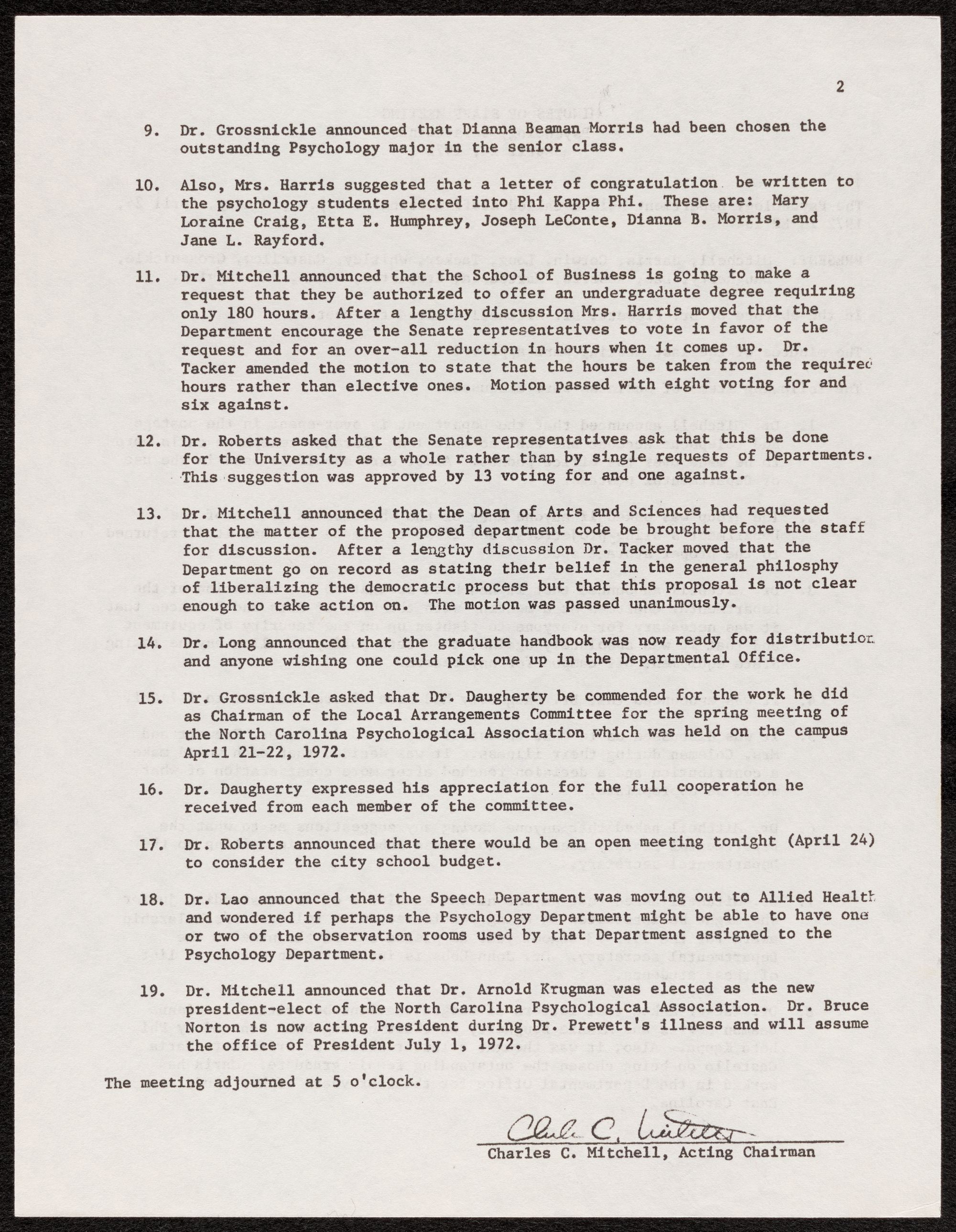 4. It was announced that Dr. Daugherty had been elected advisor to Psi Chi.