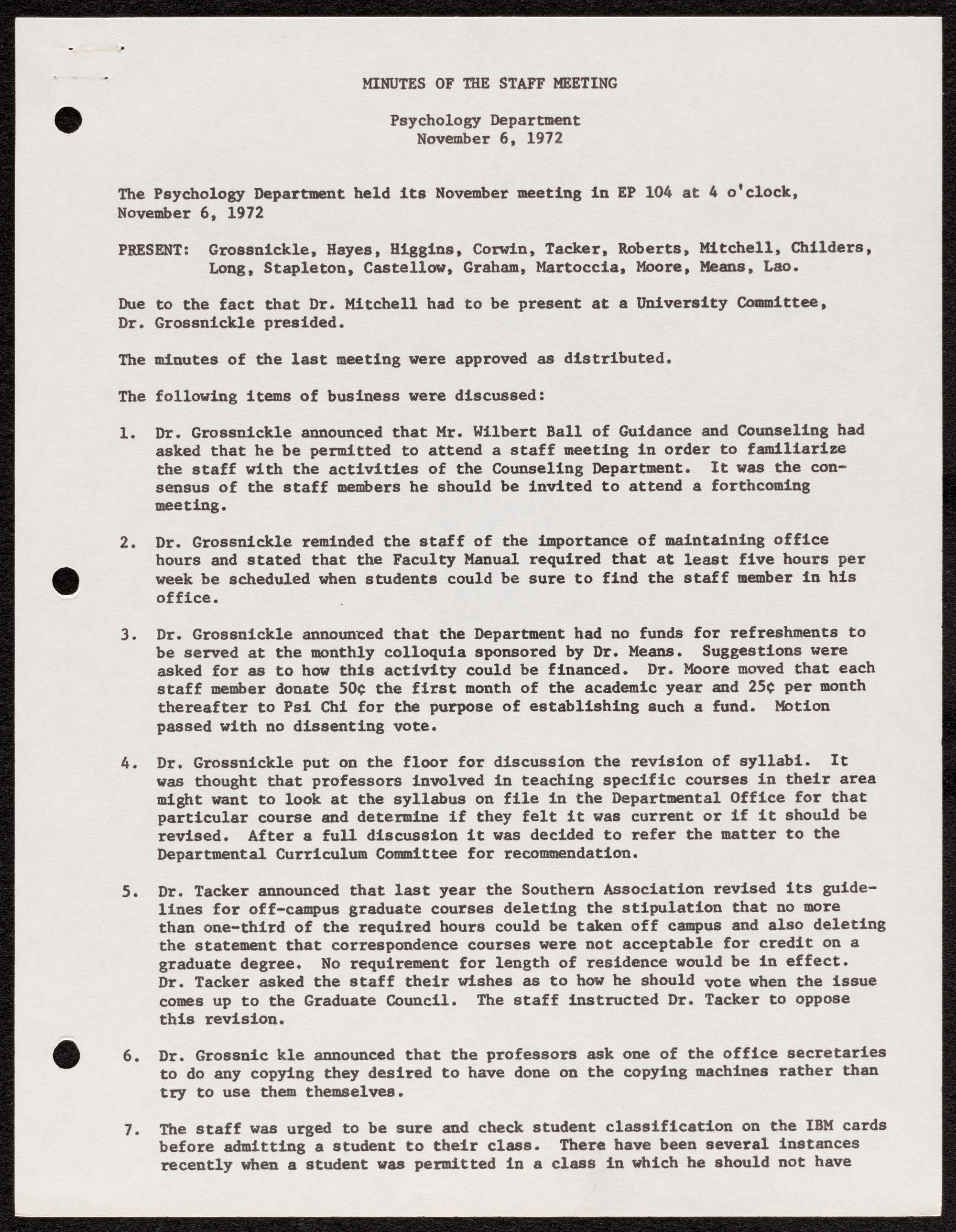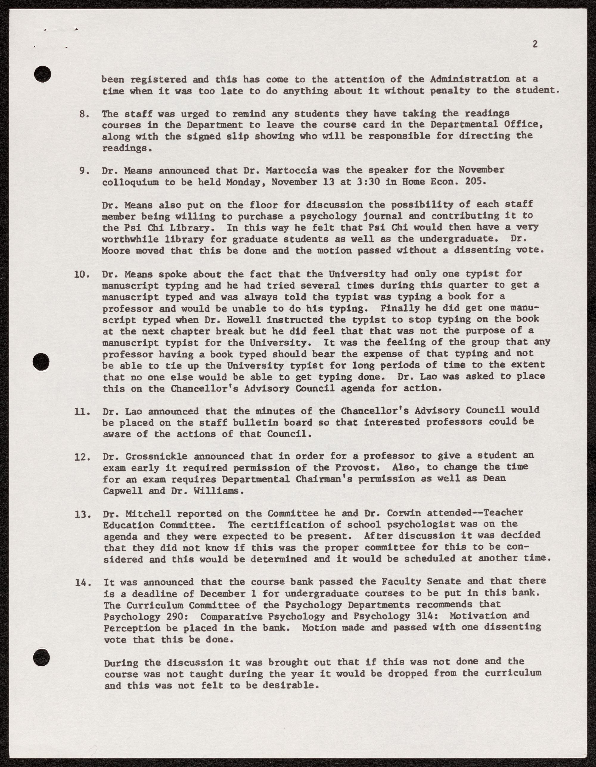 10. Dr. Means spoke about the fact that the University had only one typist for