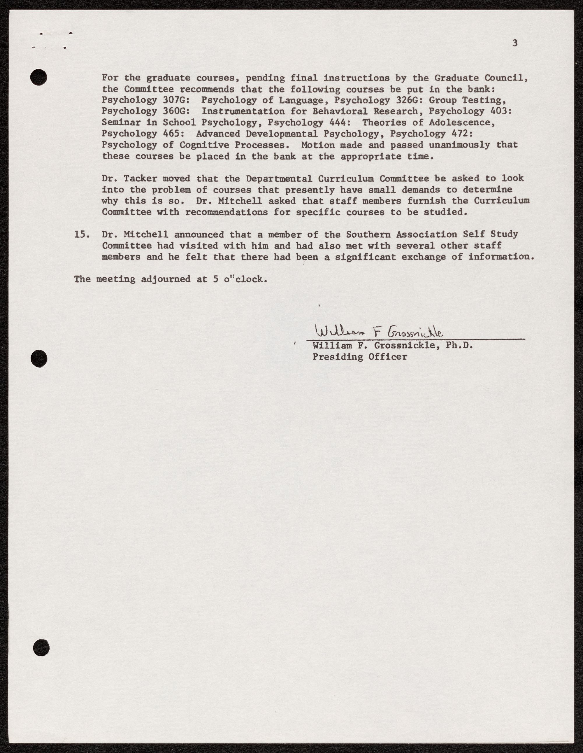 Psychology of Cognitive Processes. Motion made and passed unanimously that