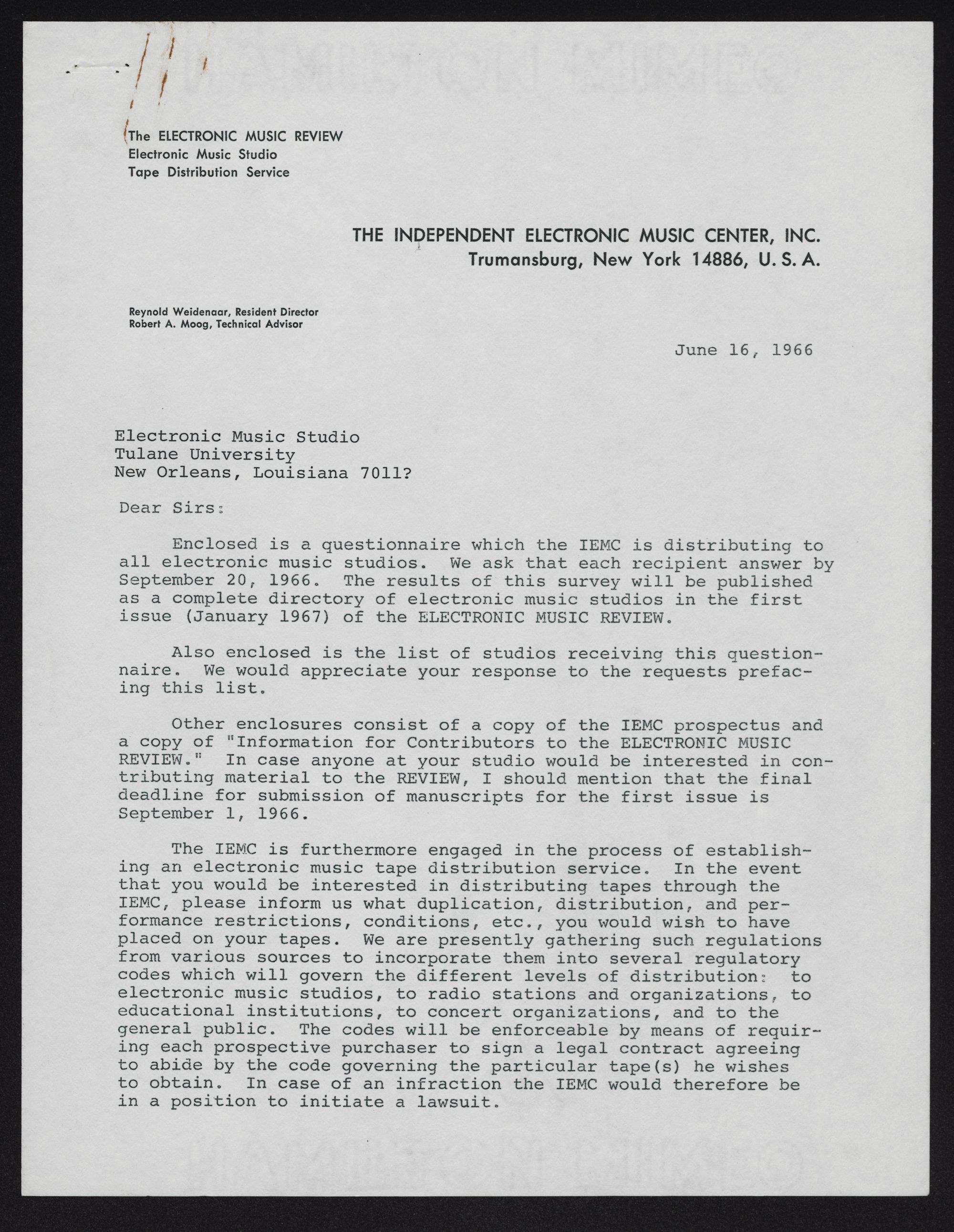 all electronic music studios. We ask that each recipient answer by