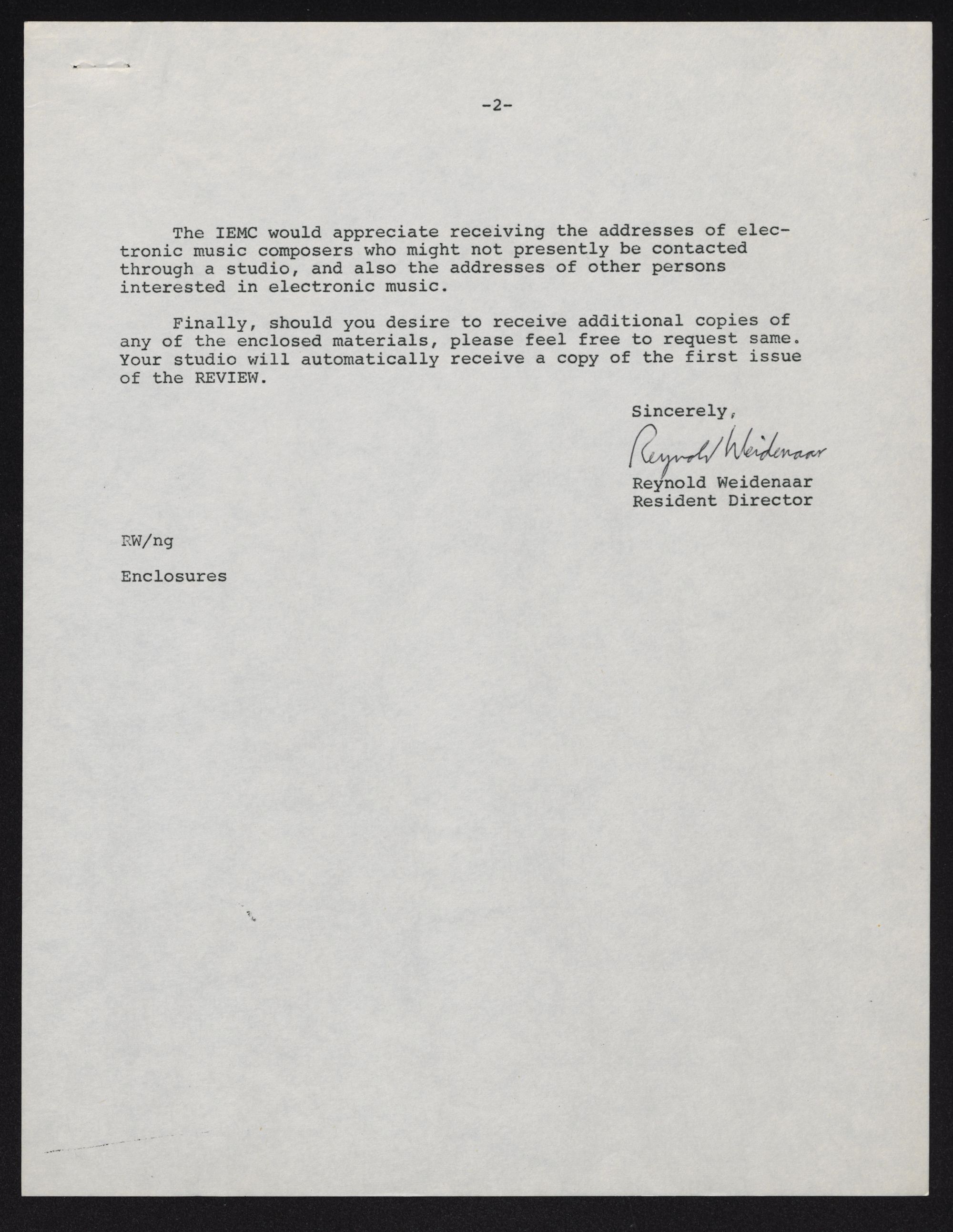 Reynold Weidenaar, Resident Director