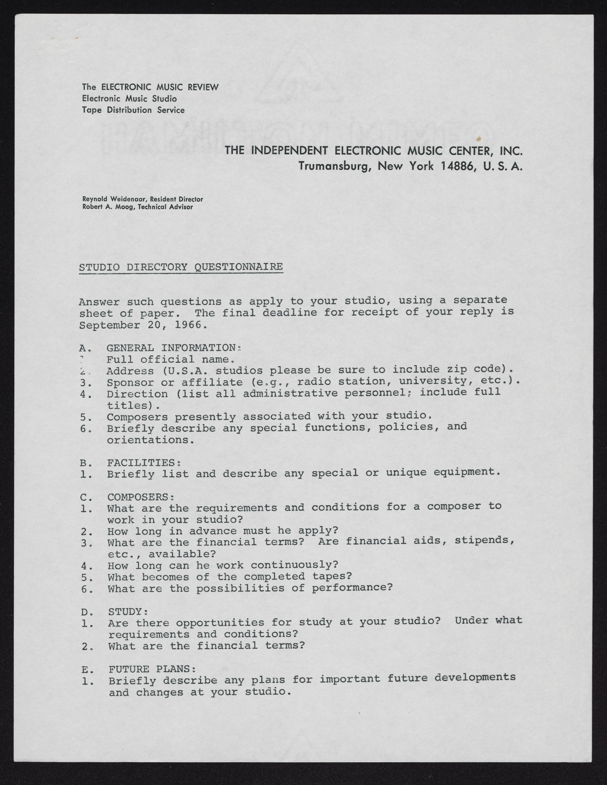 THE INDEPENDENT ELECTRONIC MUSIC CENTER, INC.