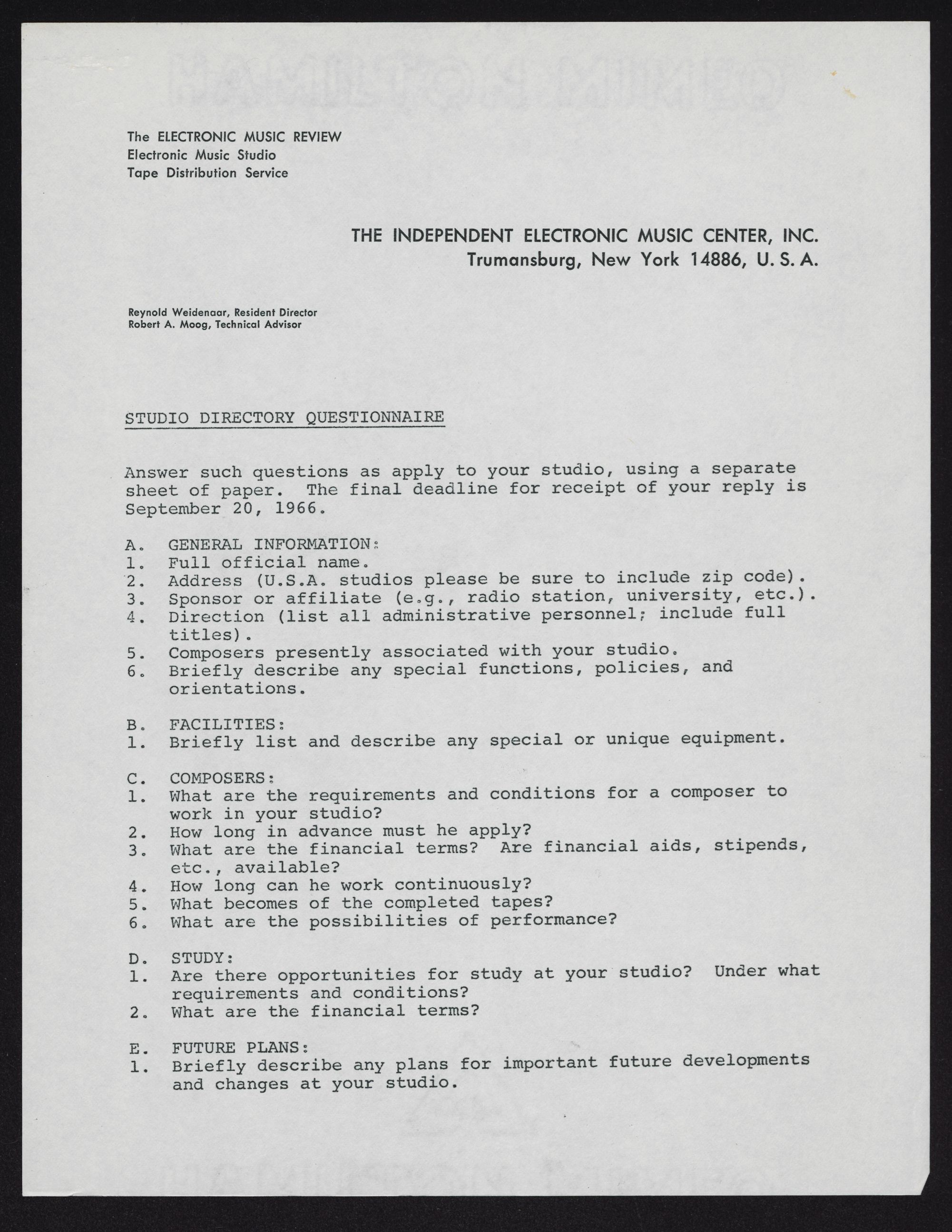 THE INDEPENDENT ELECTRONIC MUSIC CENTER, INC.