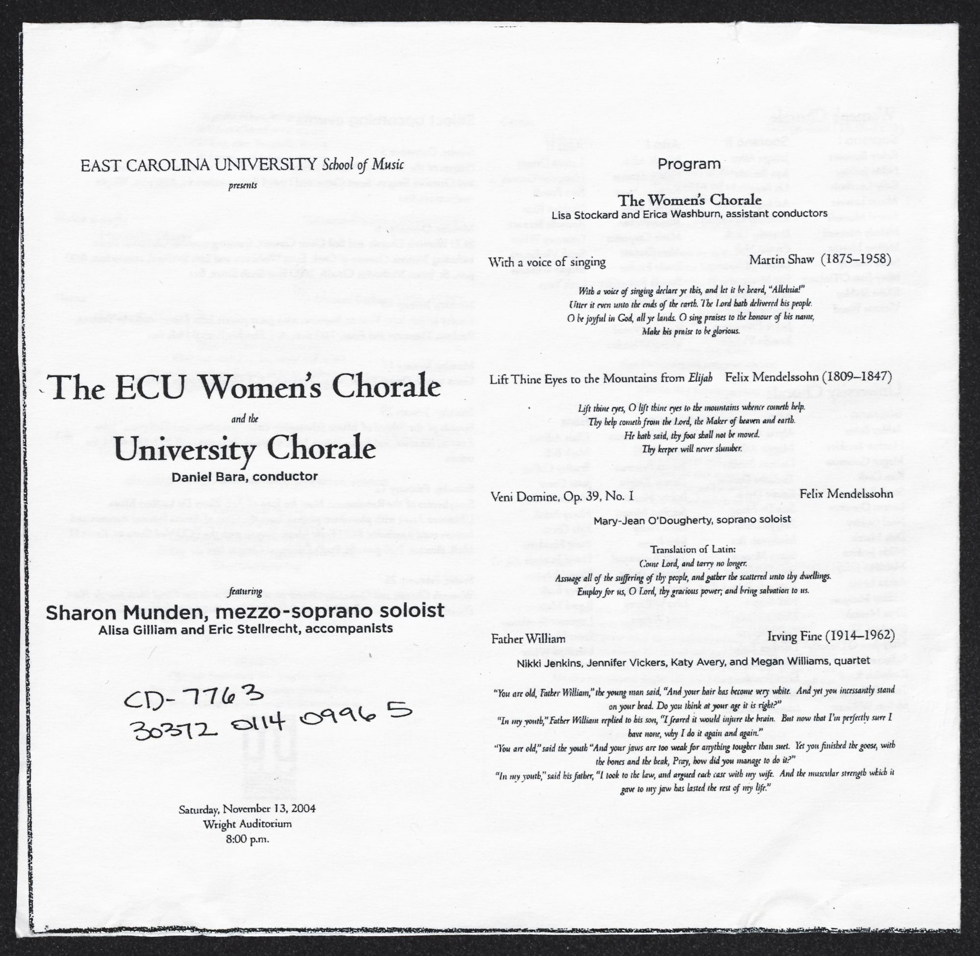 instrumental interludes; ECU Early Music Singers with the ECU Viol Consort, Kevin N.