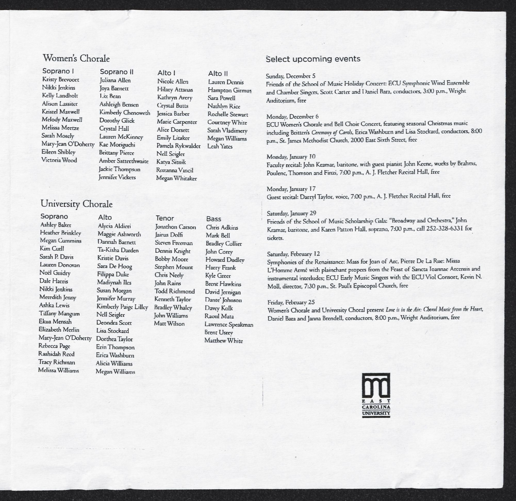ECU Women's Chorale and Bell Choir Concert, featuring seasonal Christmas music