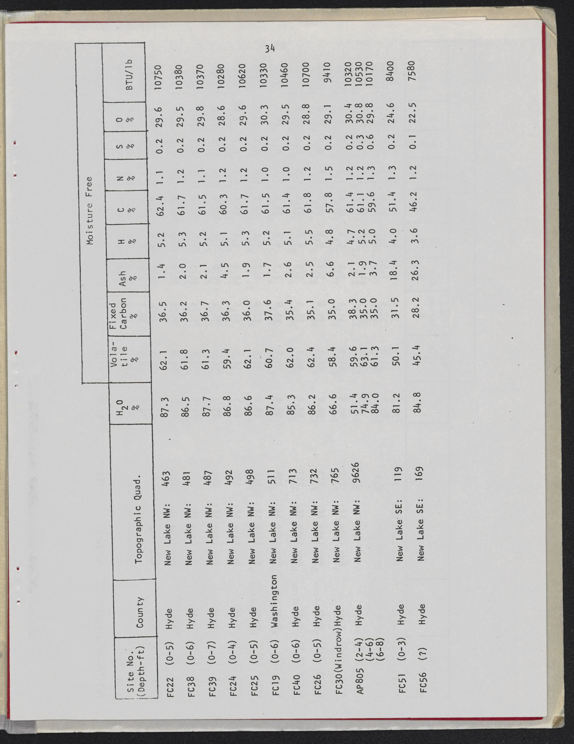 (Depth-ft) County Topographic Quad. % % % % % % % % % BTU/lb