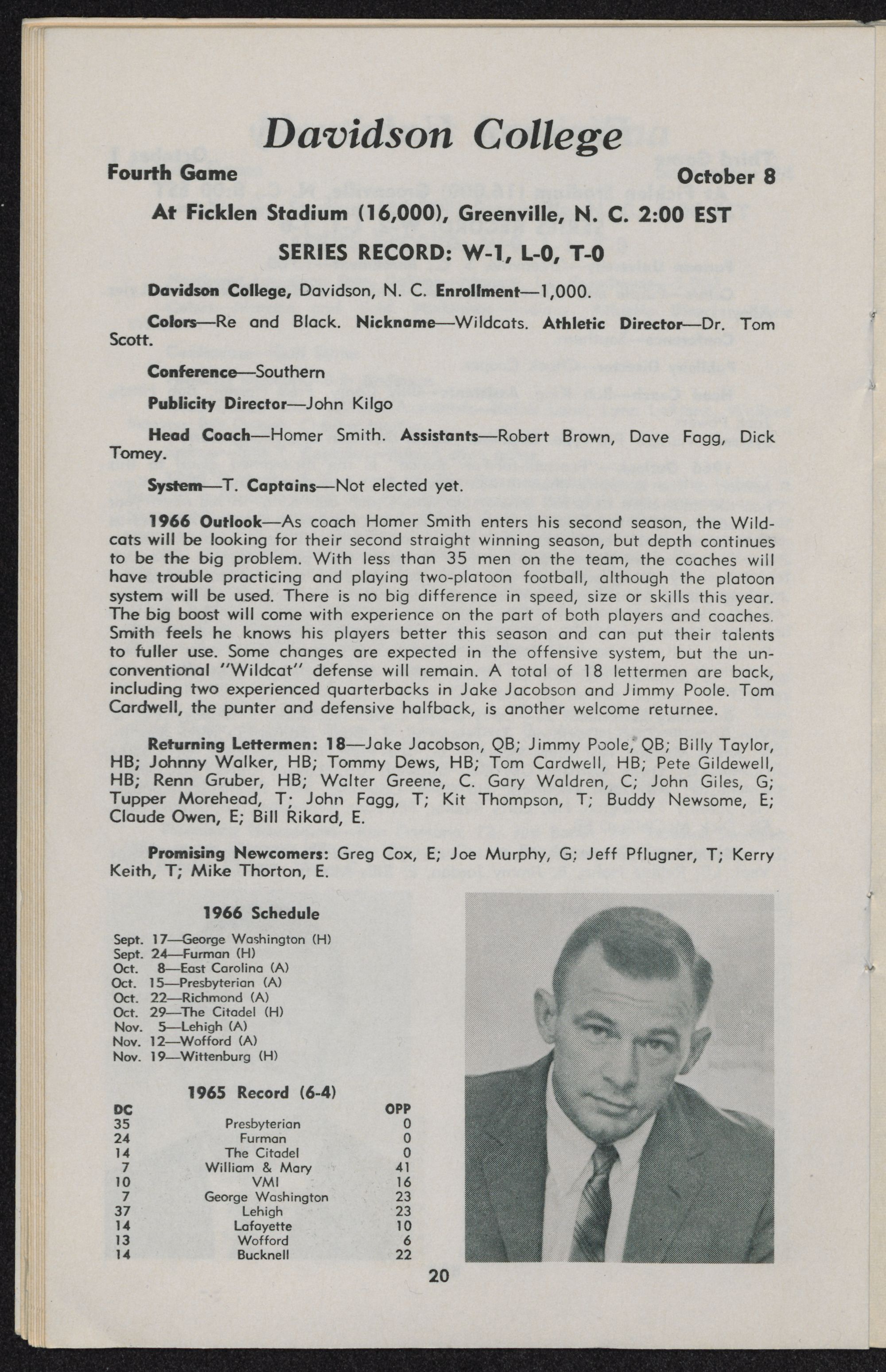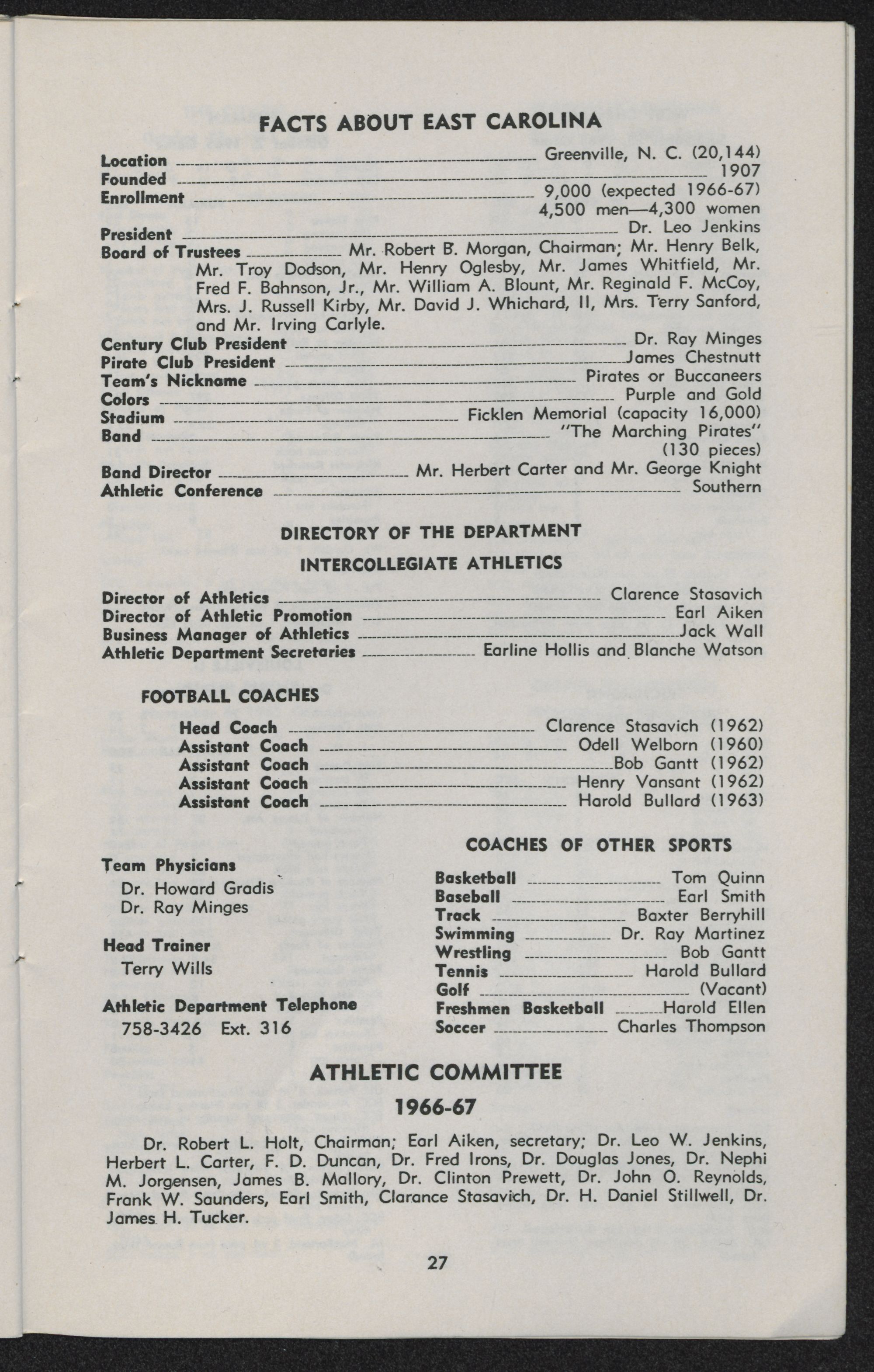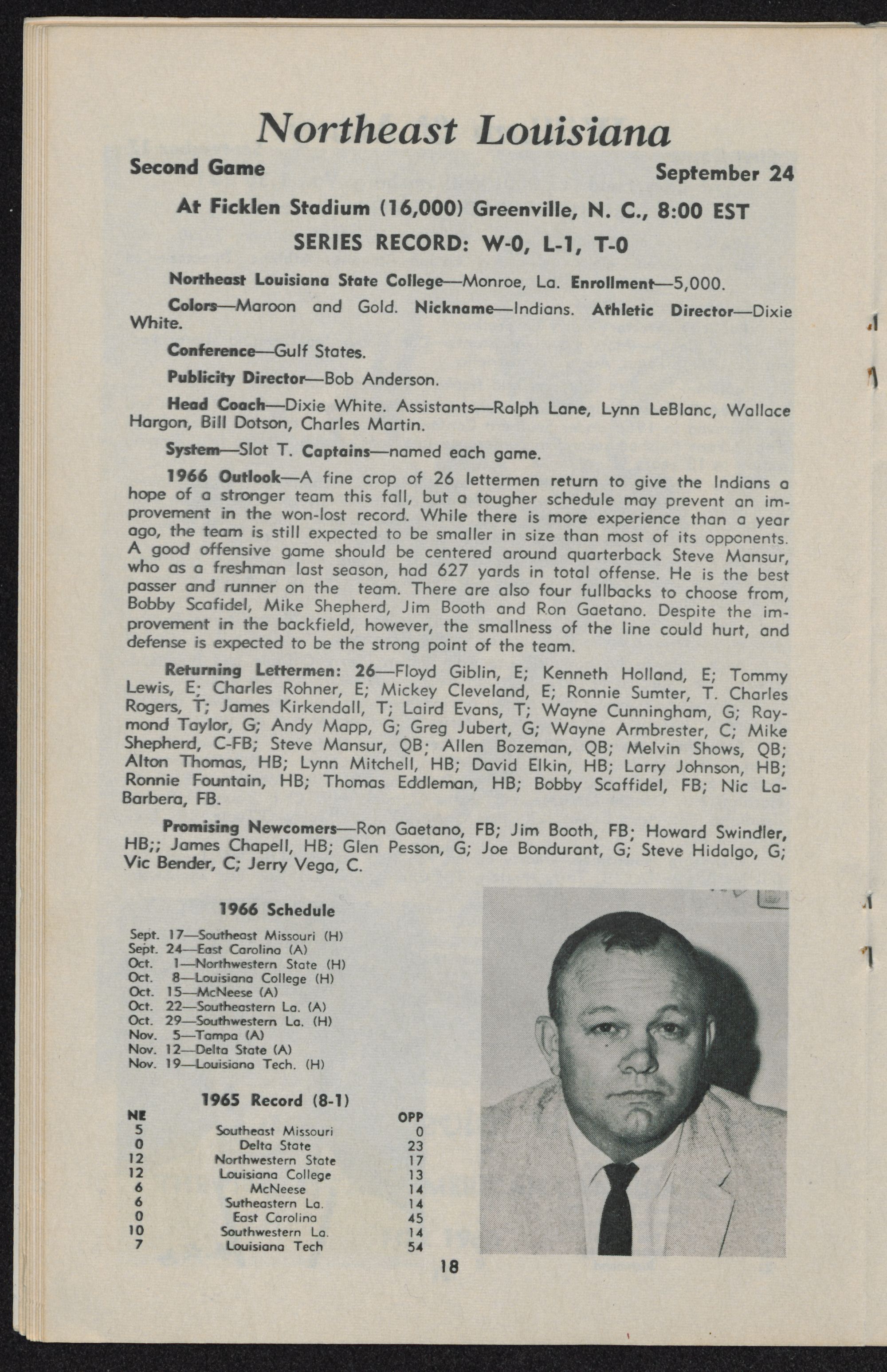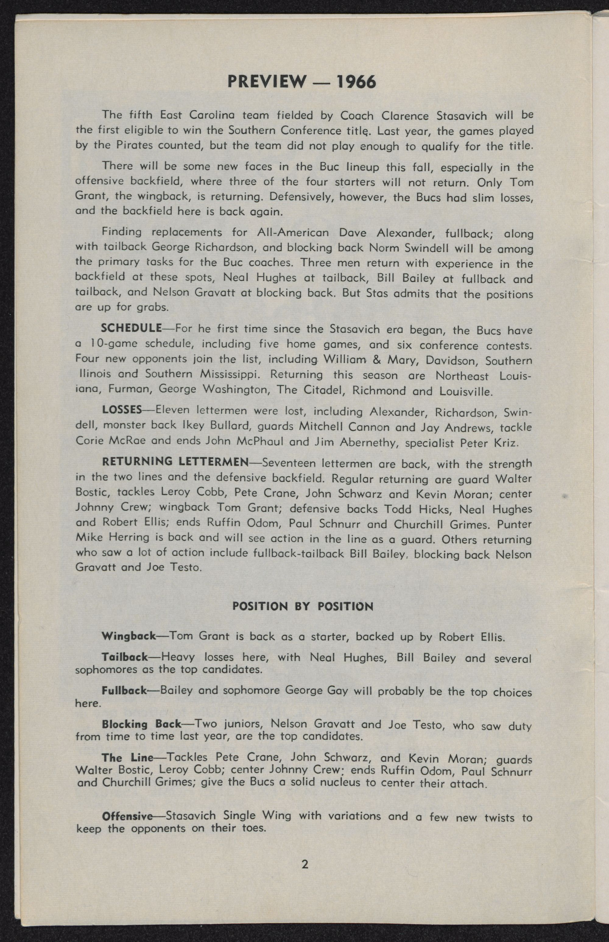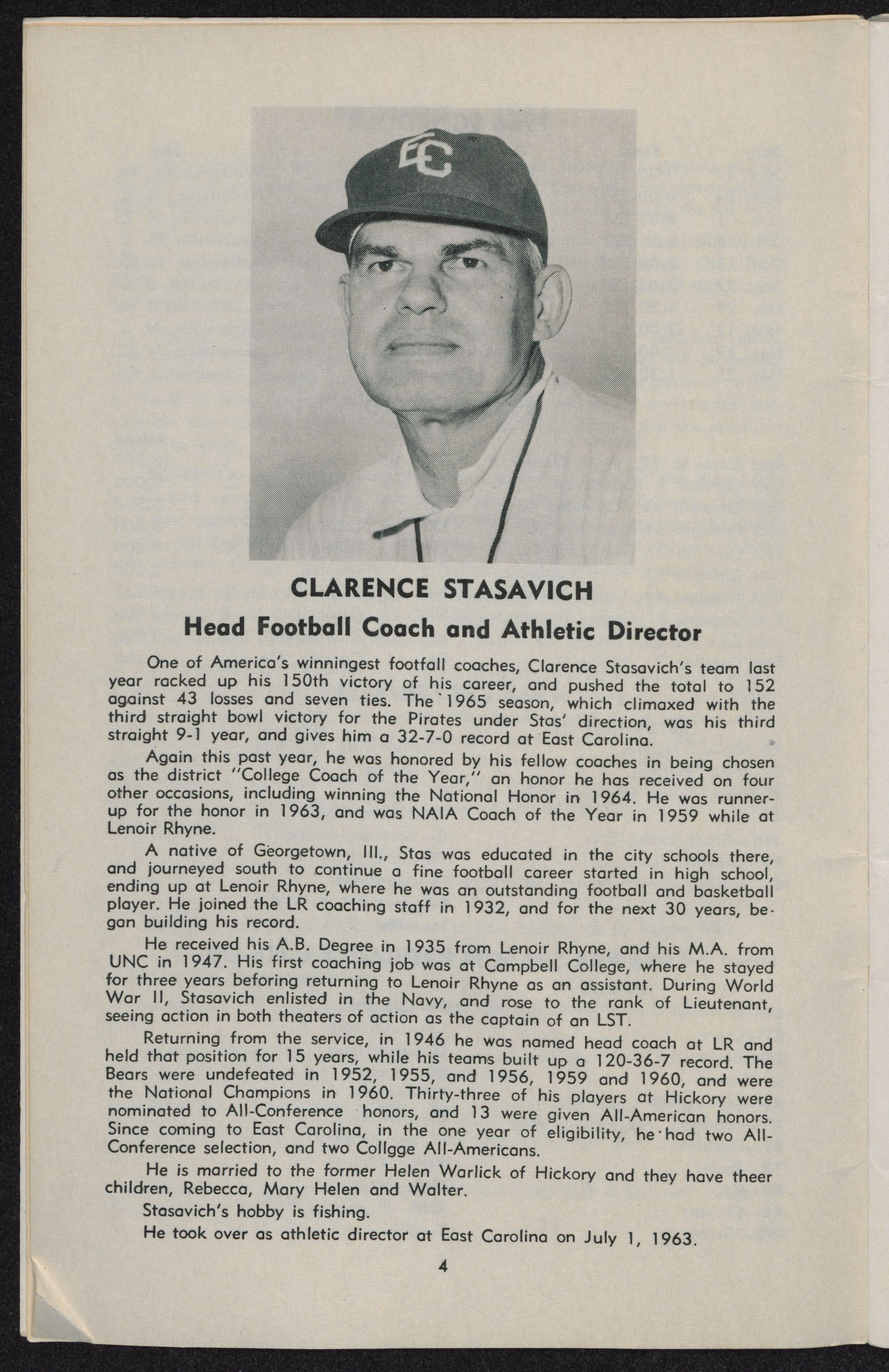 The fifth East Carolina team fielded by Coach Clarence Stasavich will be