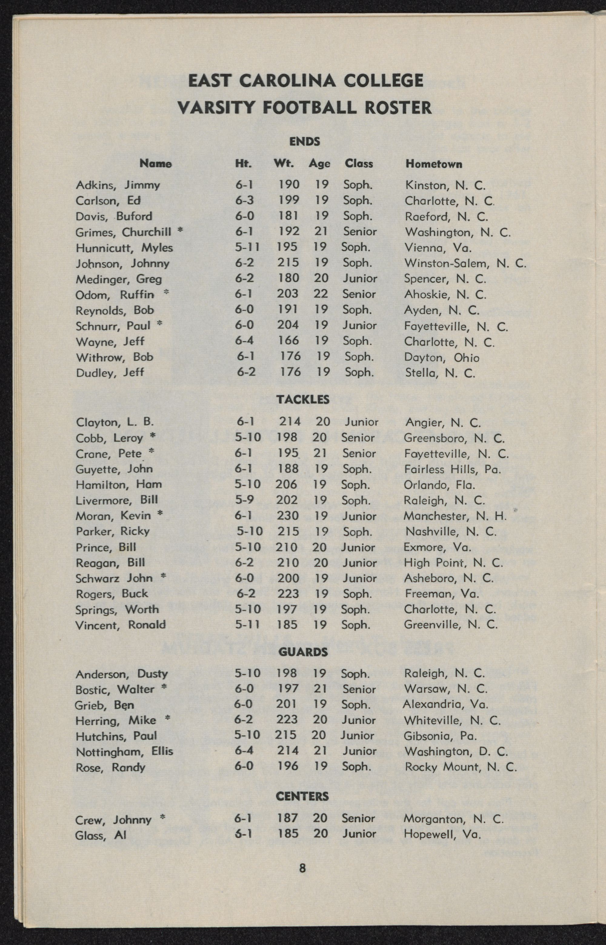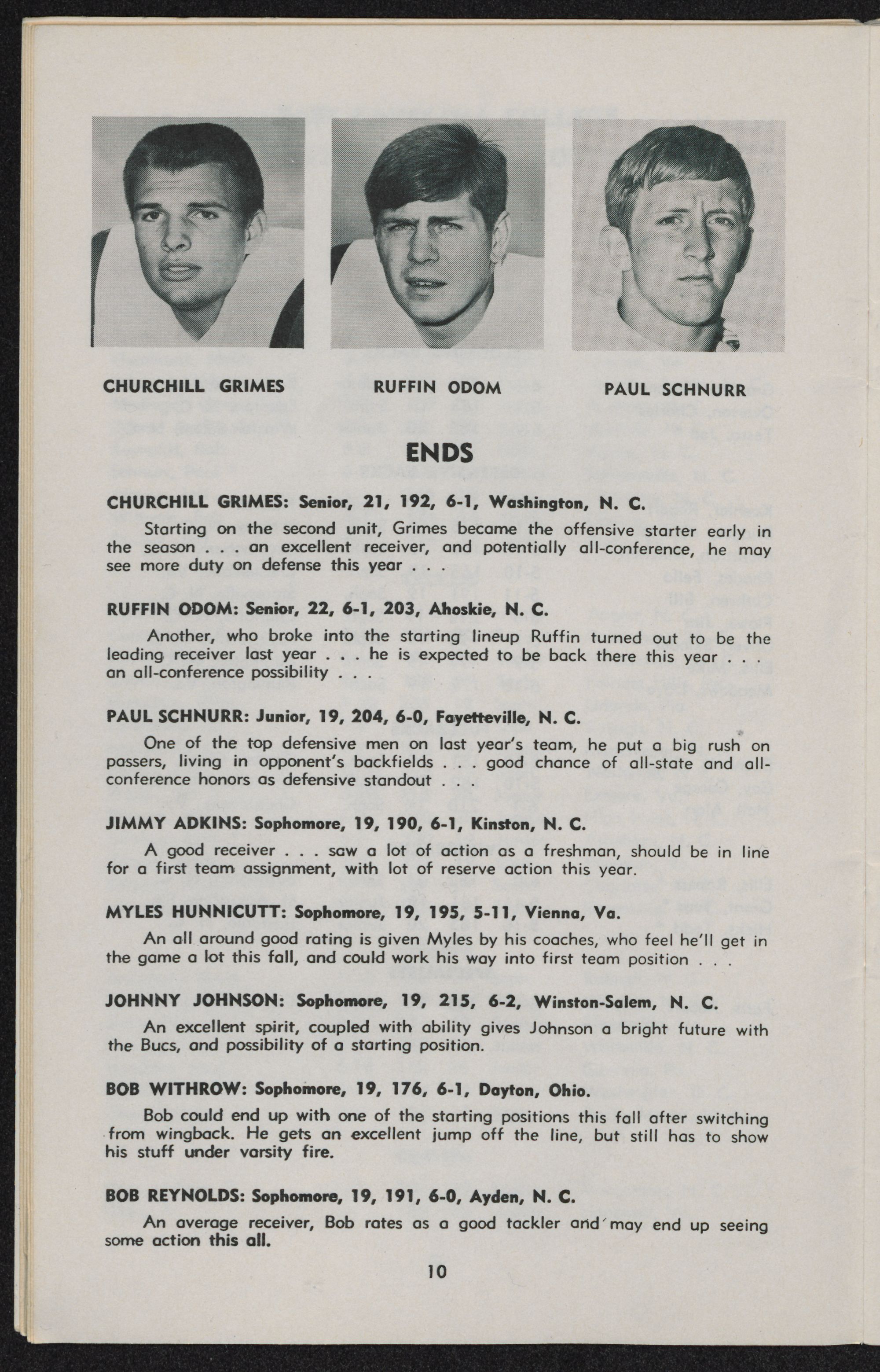 and Robert Ellis; ends Ruffin Odom, Paul Schnurr and Churchill Grimes. Punter