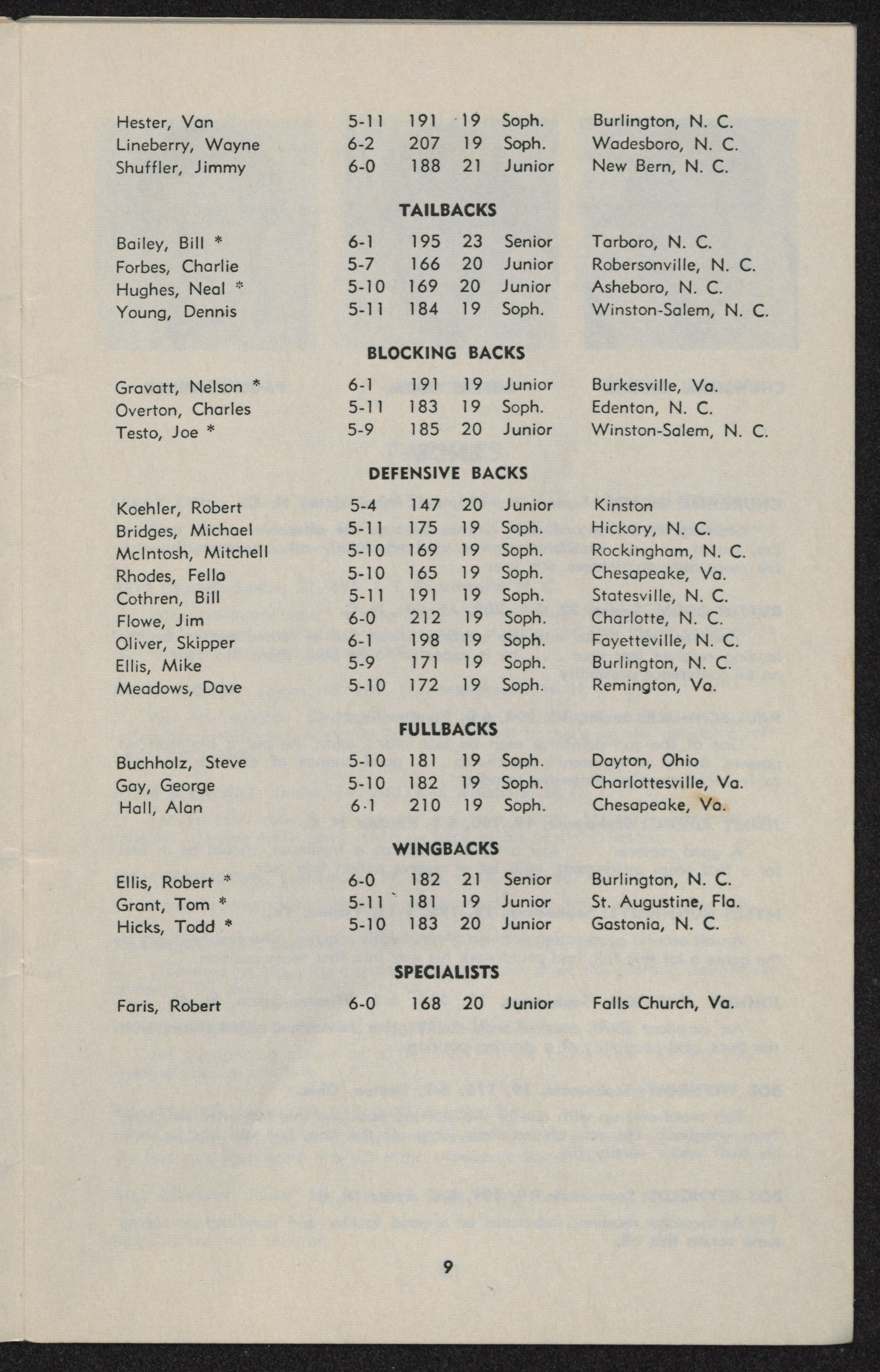 who saw a lot of action include fullback-tailback Bill Bailey. blocking back Nelson