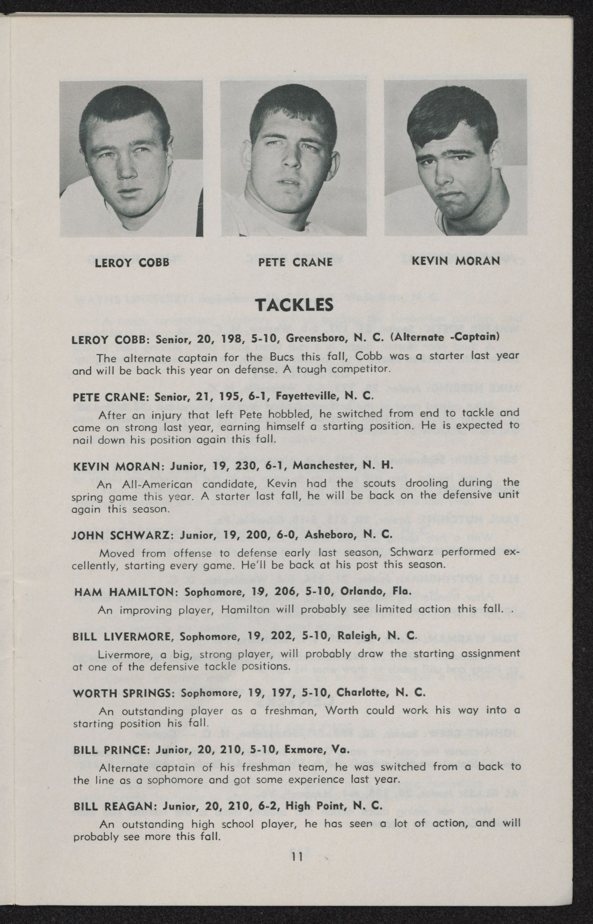 Corie McRae and ends John McPhaul and Jim Abernethy, specialist Peter Kriz.