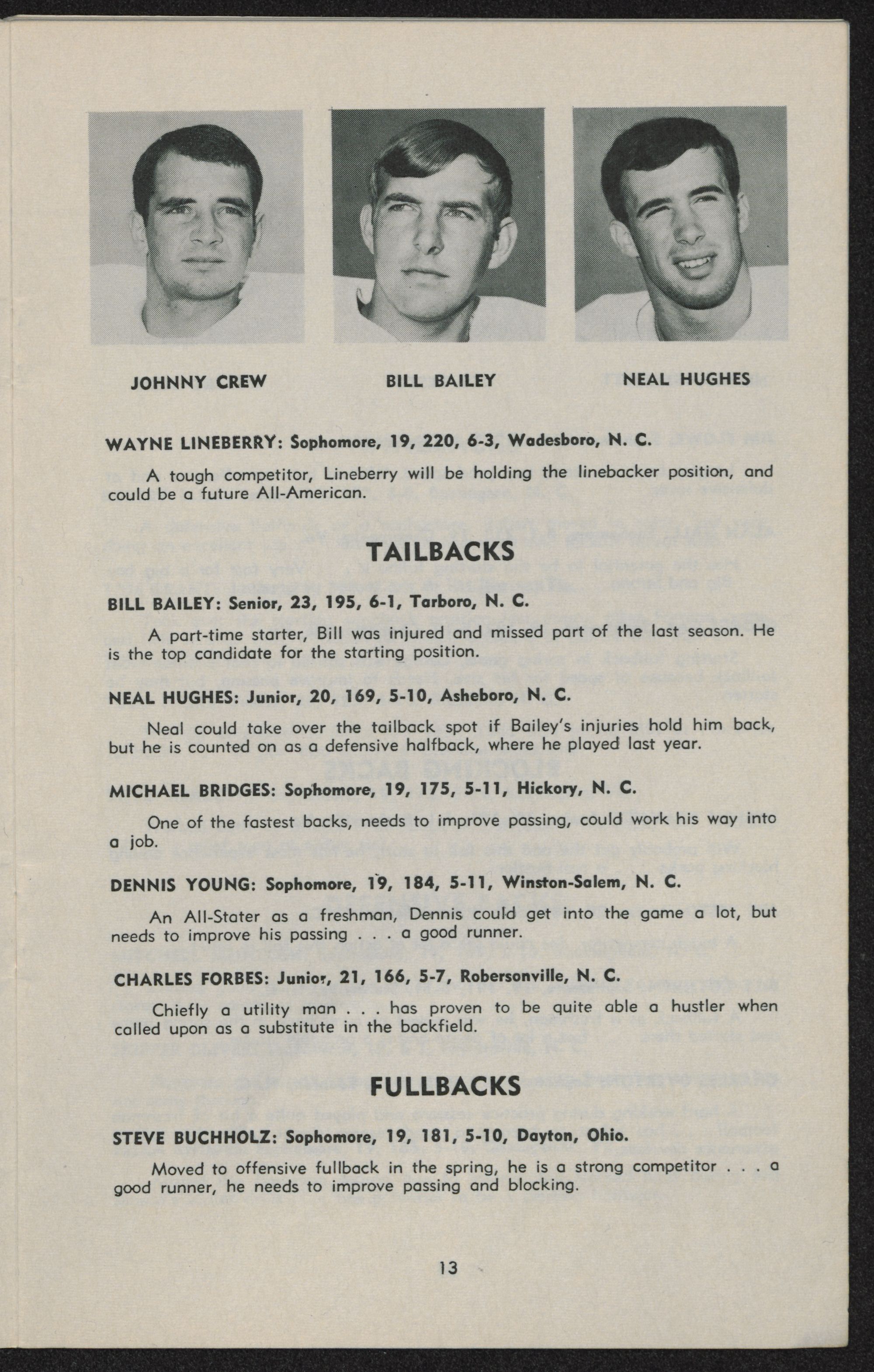 backfield at these spots, Neal Hughes at tailback, Bill Bailey at fullback and