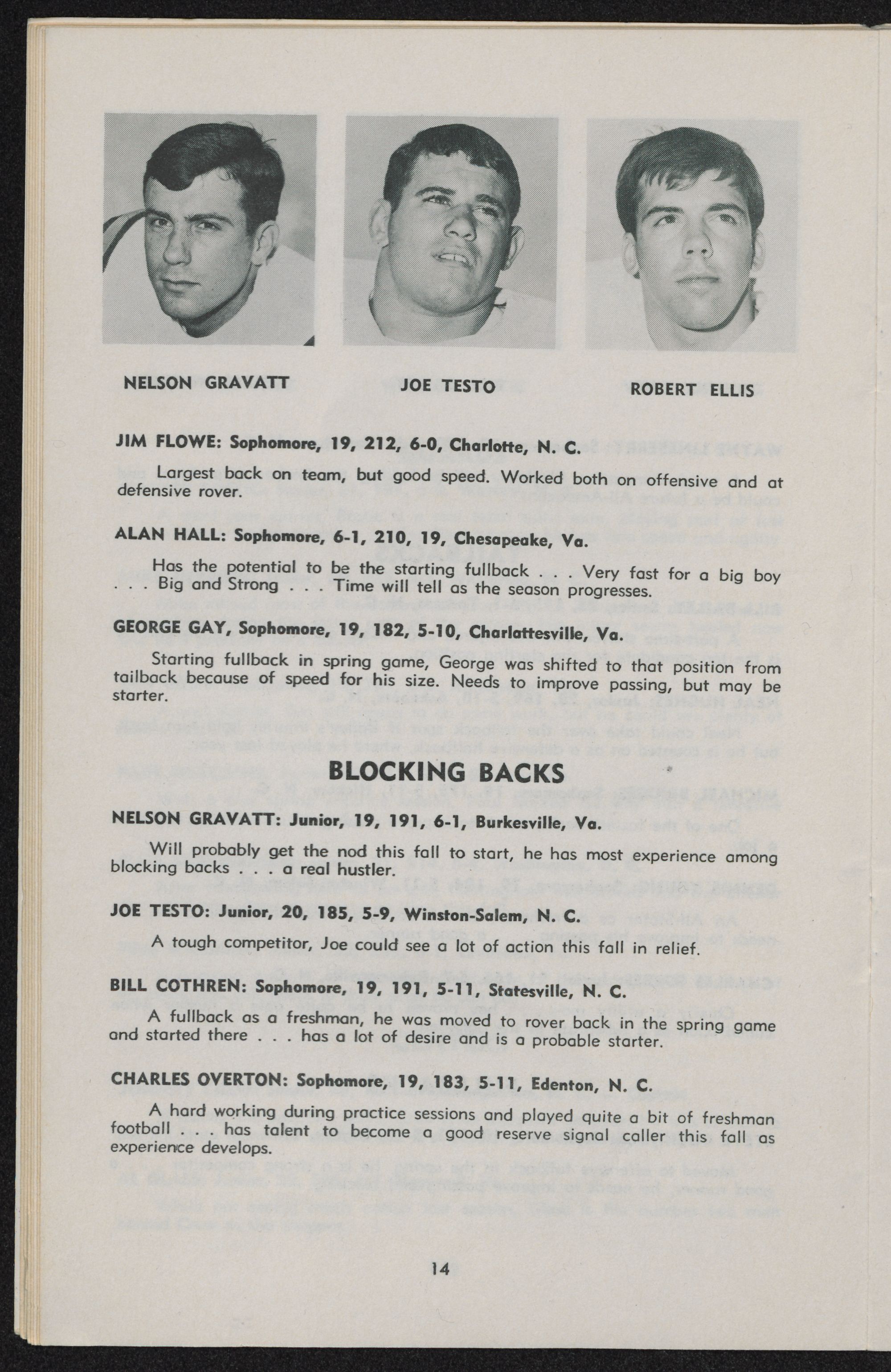 Blocking Back-Two juniors, Nelson Gravatt and Joe Testo, who saw duty