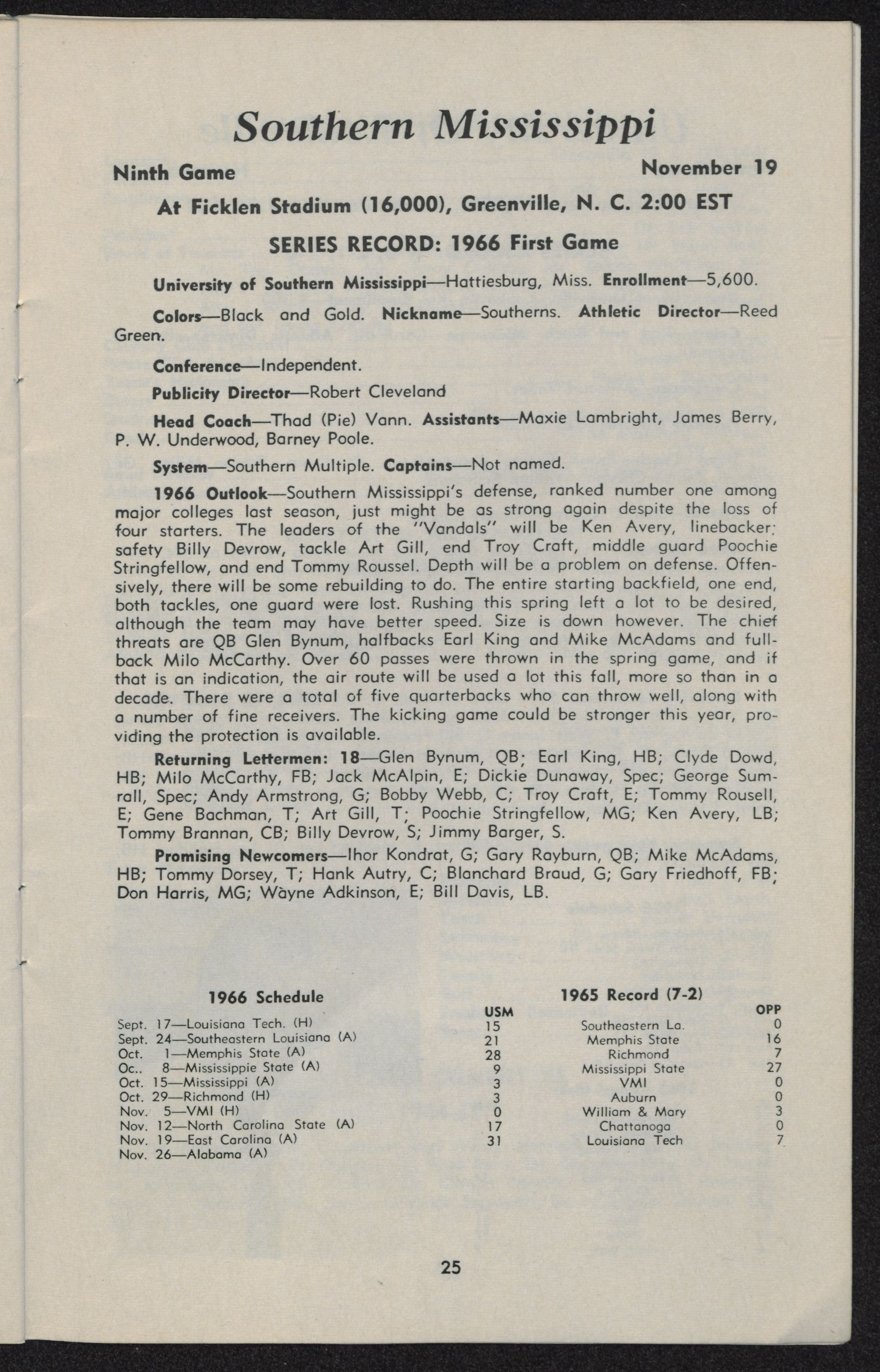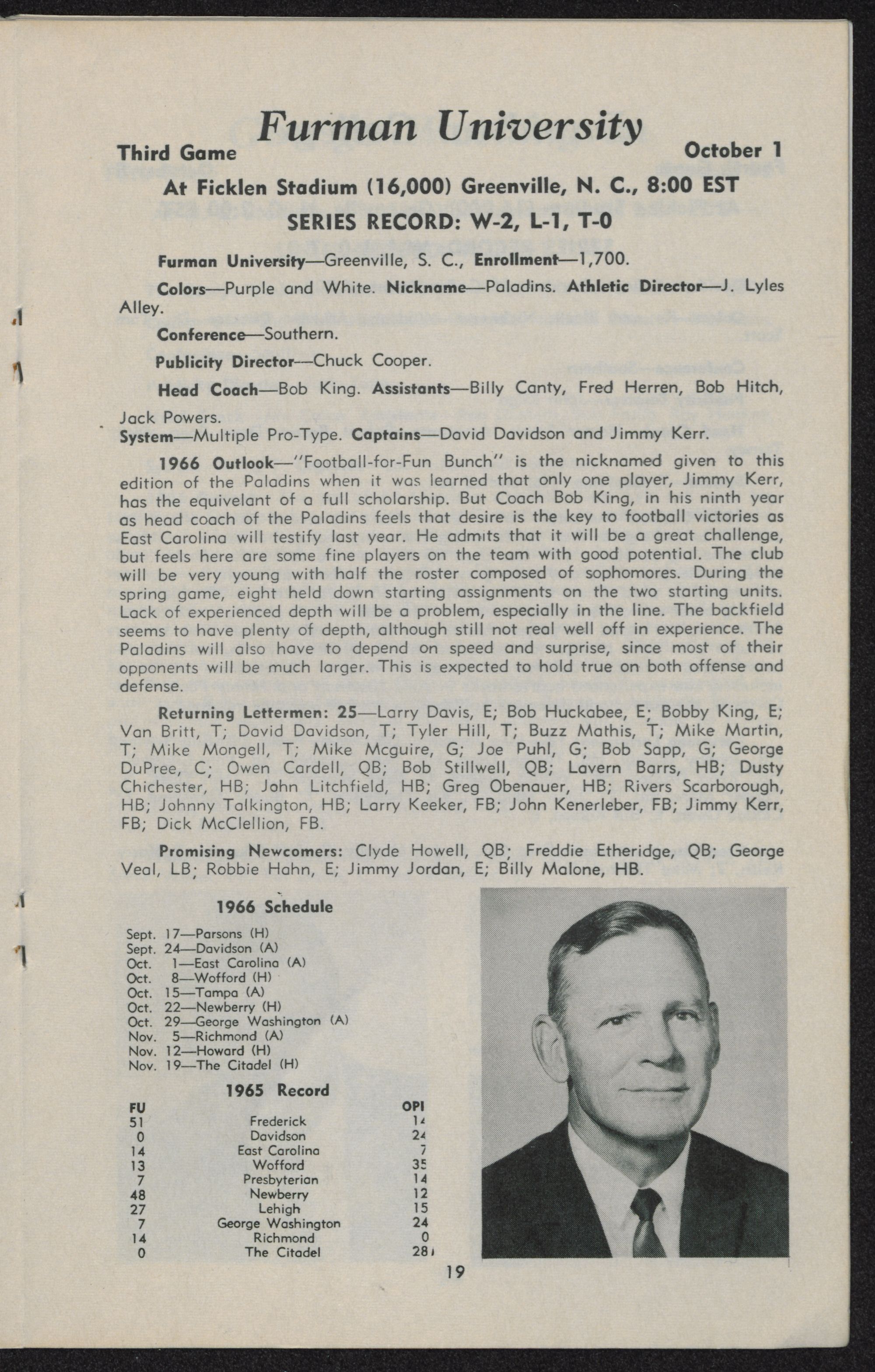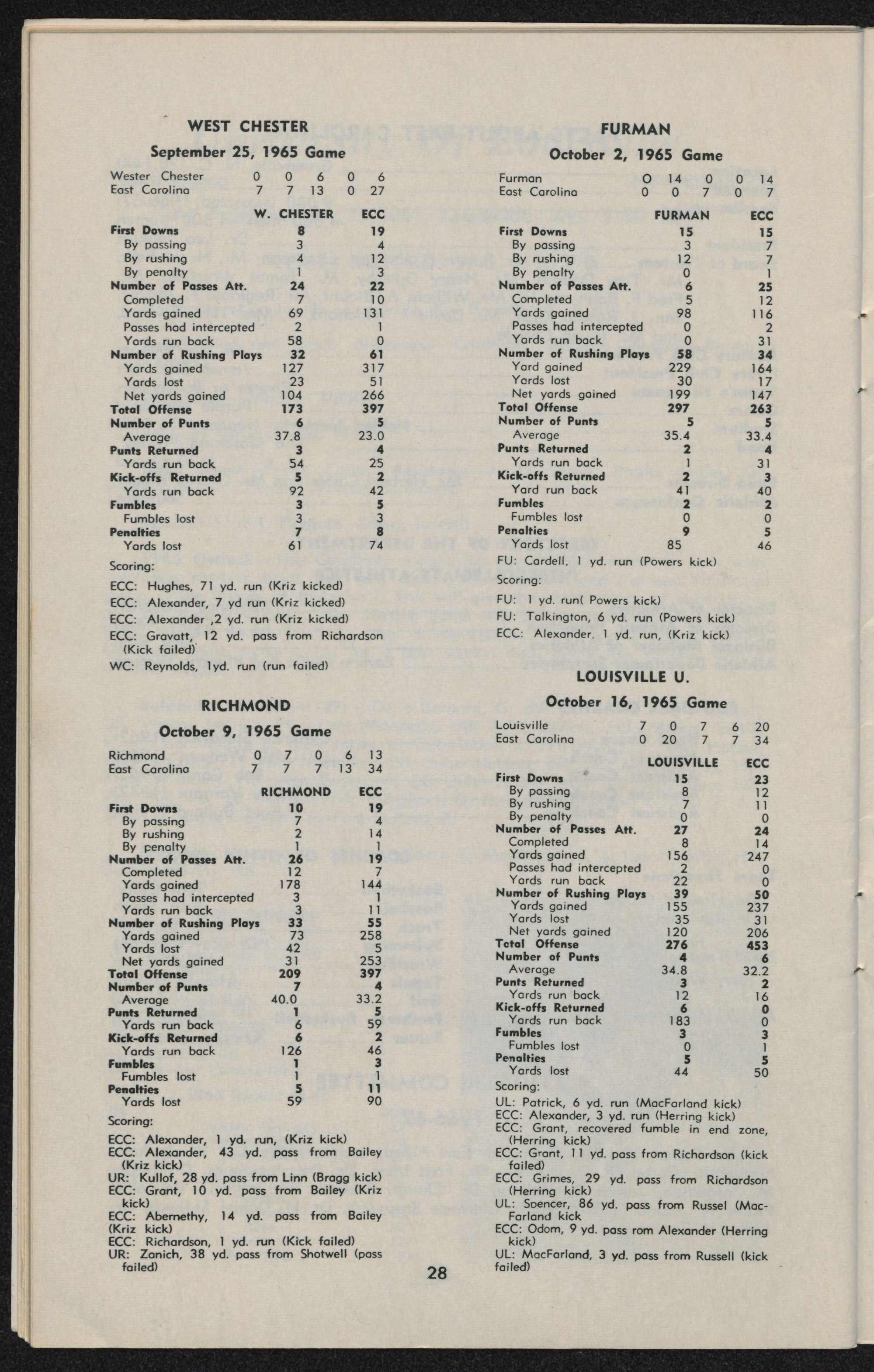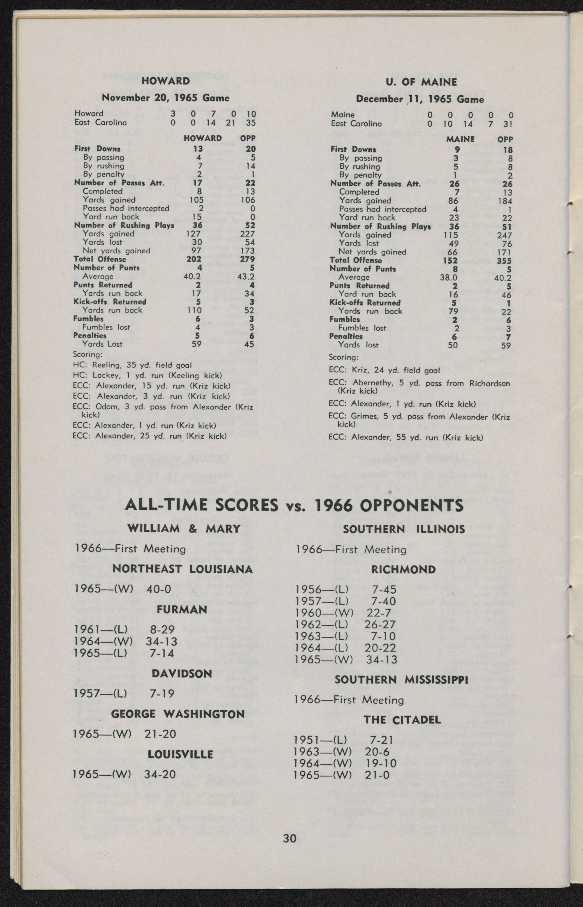 East Carolina 7, Furman 14 Oct. 2 Greenville, S. C. 4,000