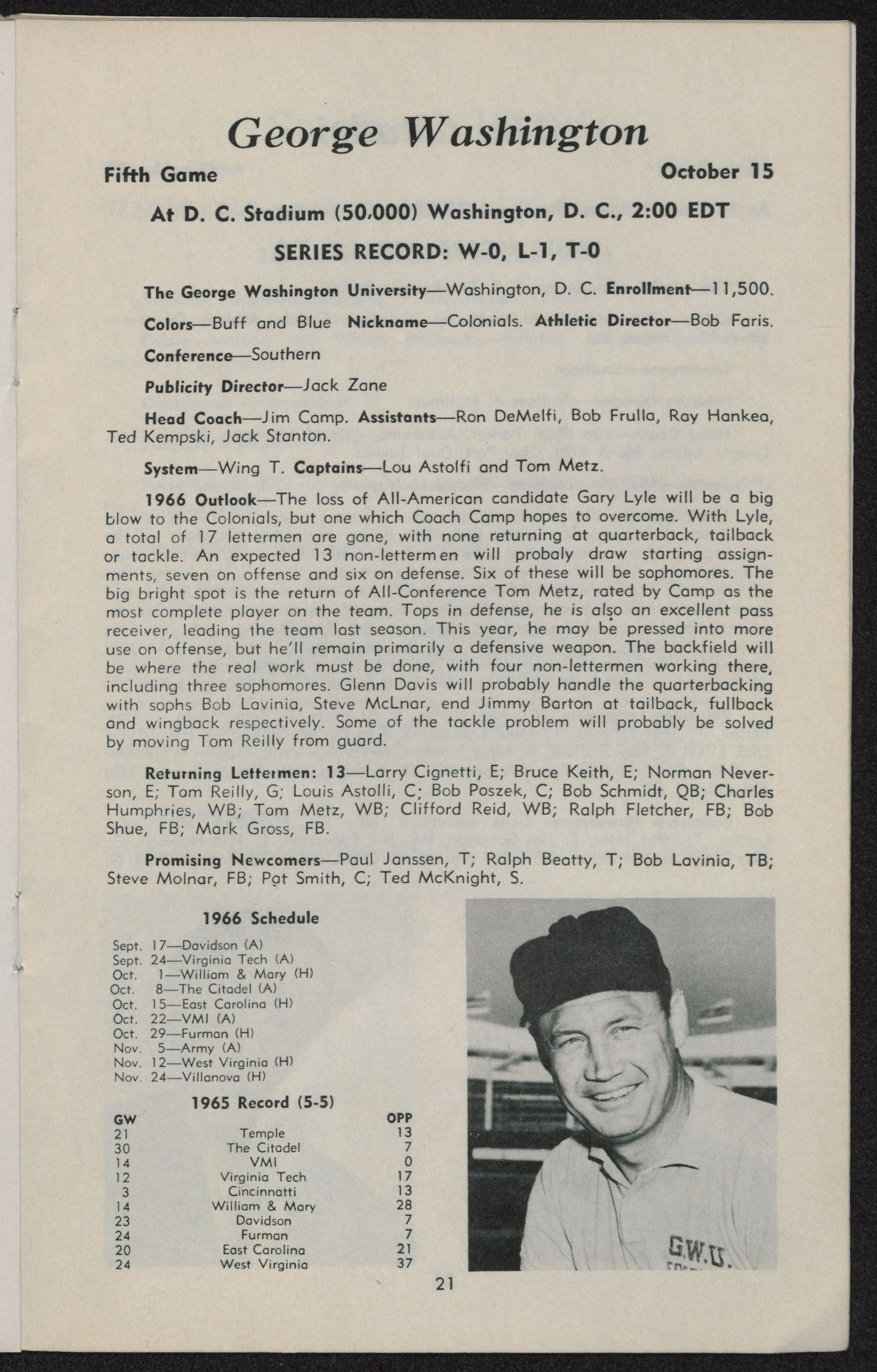 Most yards per punt: 45.9 (George Washington, 1965)