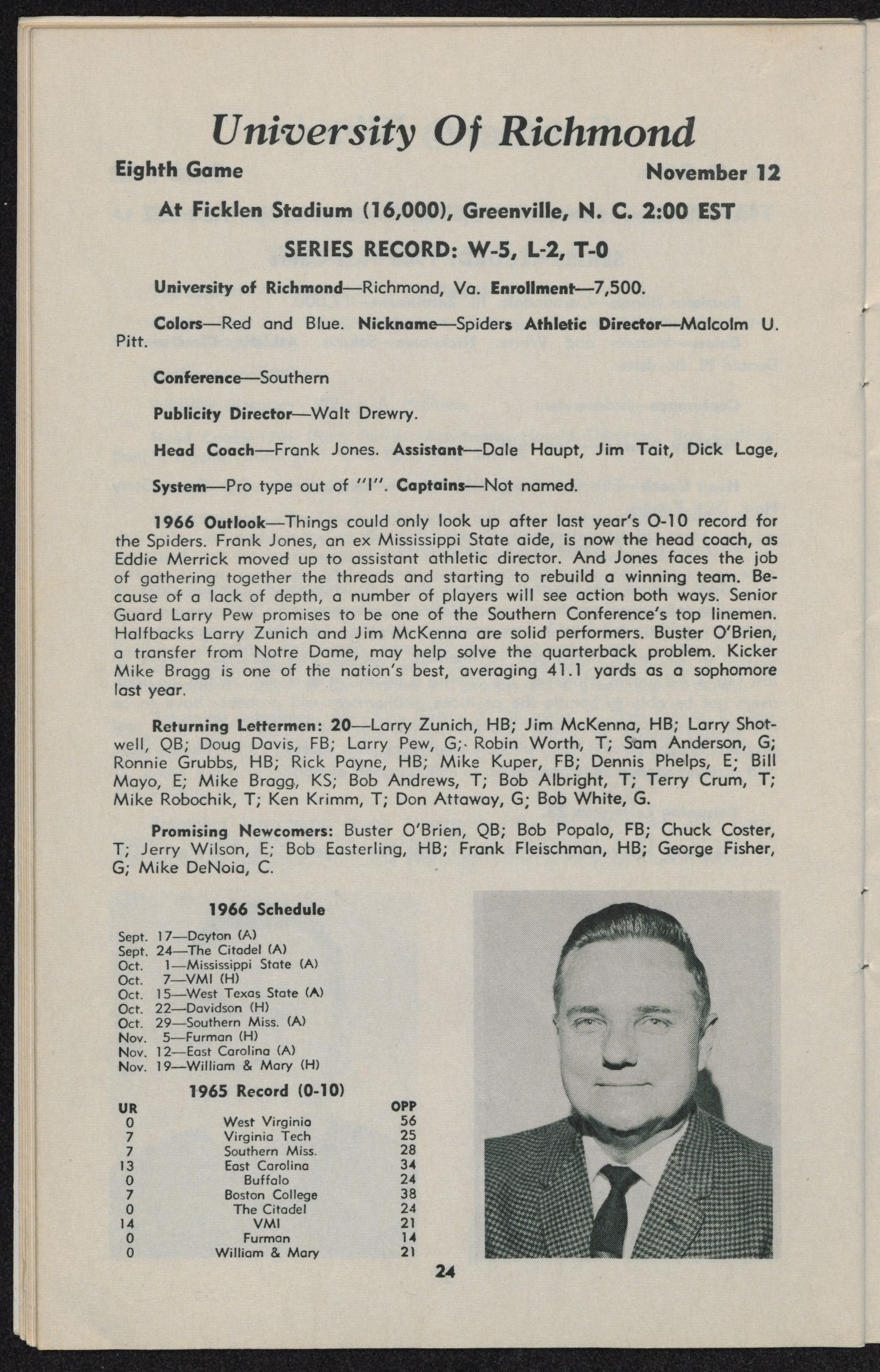 Nov. 12 2:00 5. Univ. of Richmond Greenville, N. C.