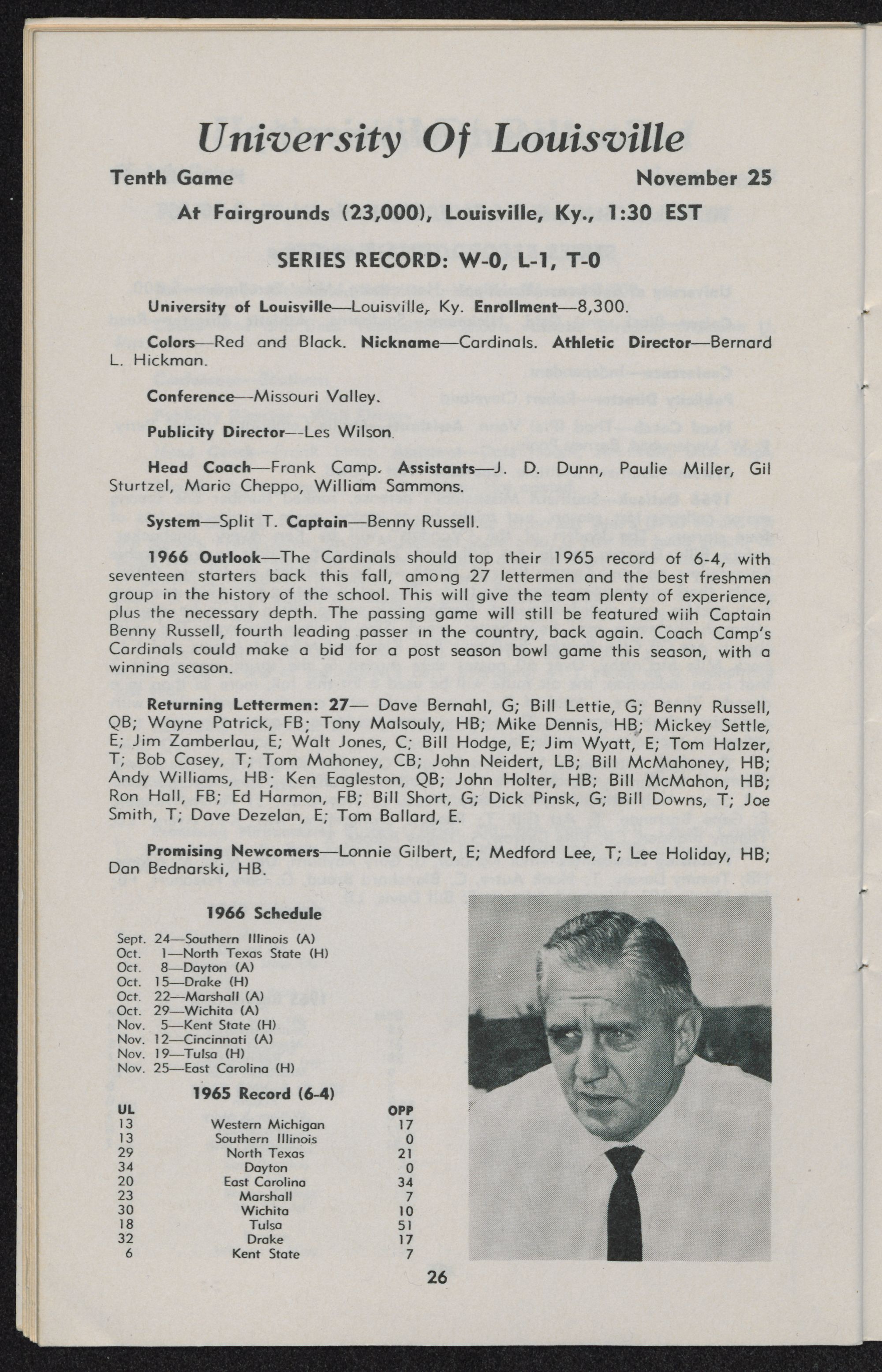 East Carolina 34, Louisville 20 Oct. 16 Louisville, Ky. 8,800
