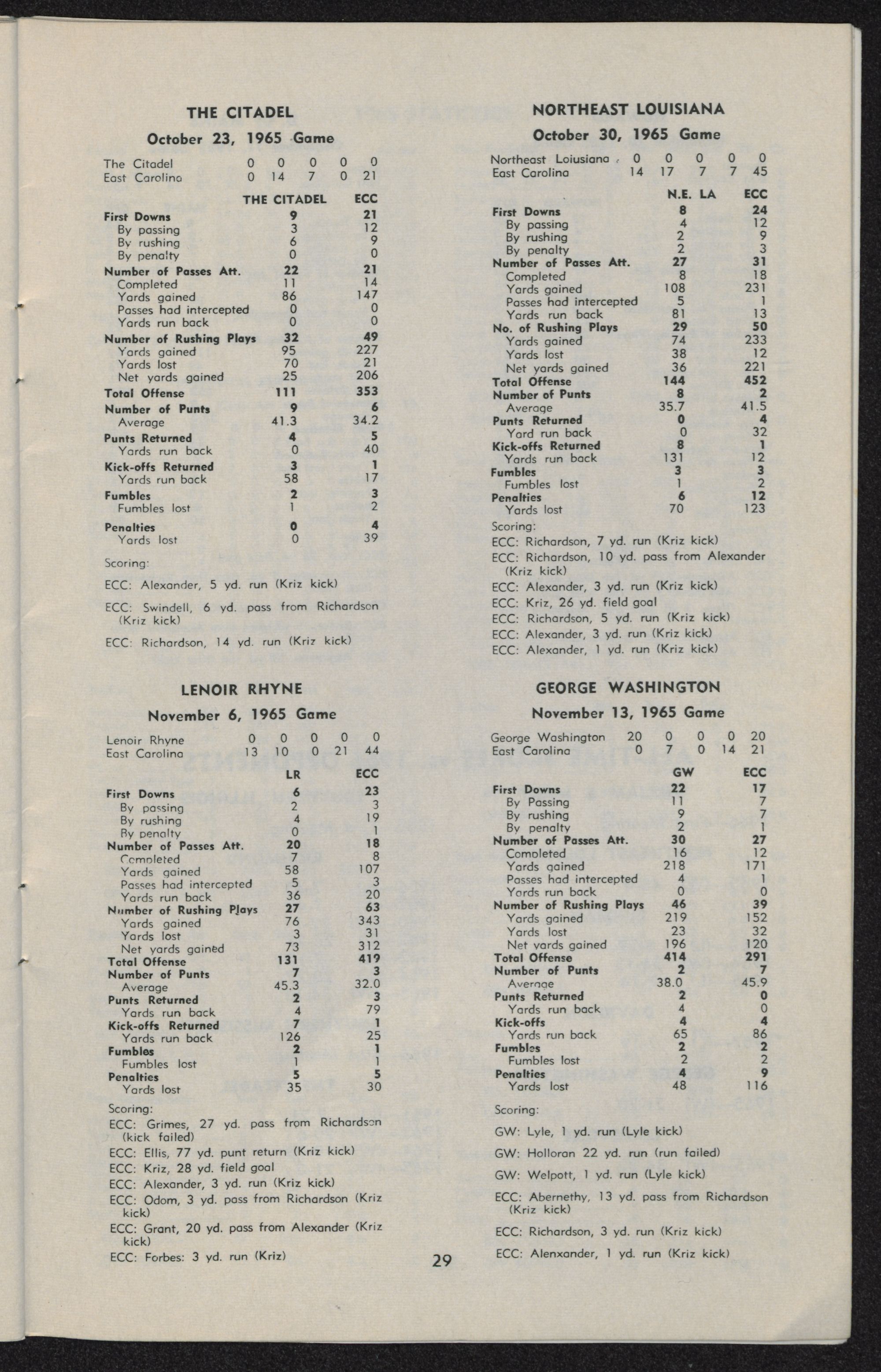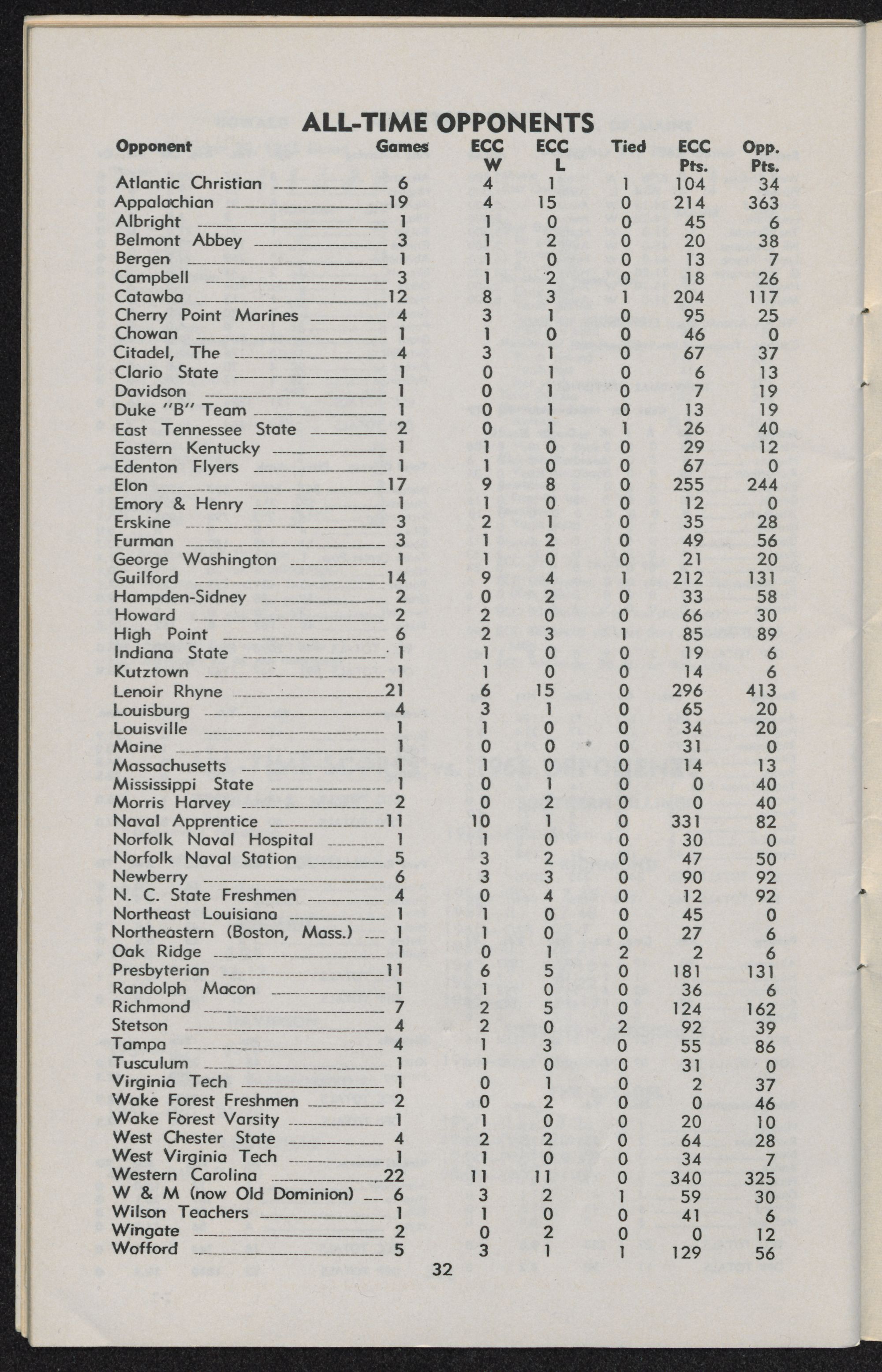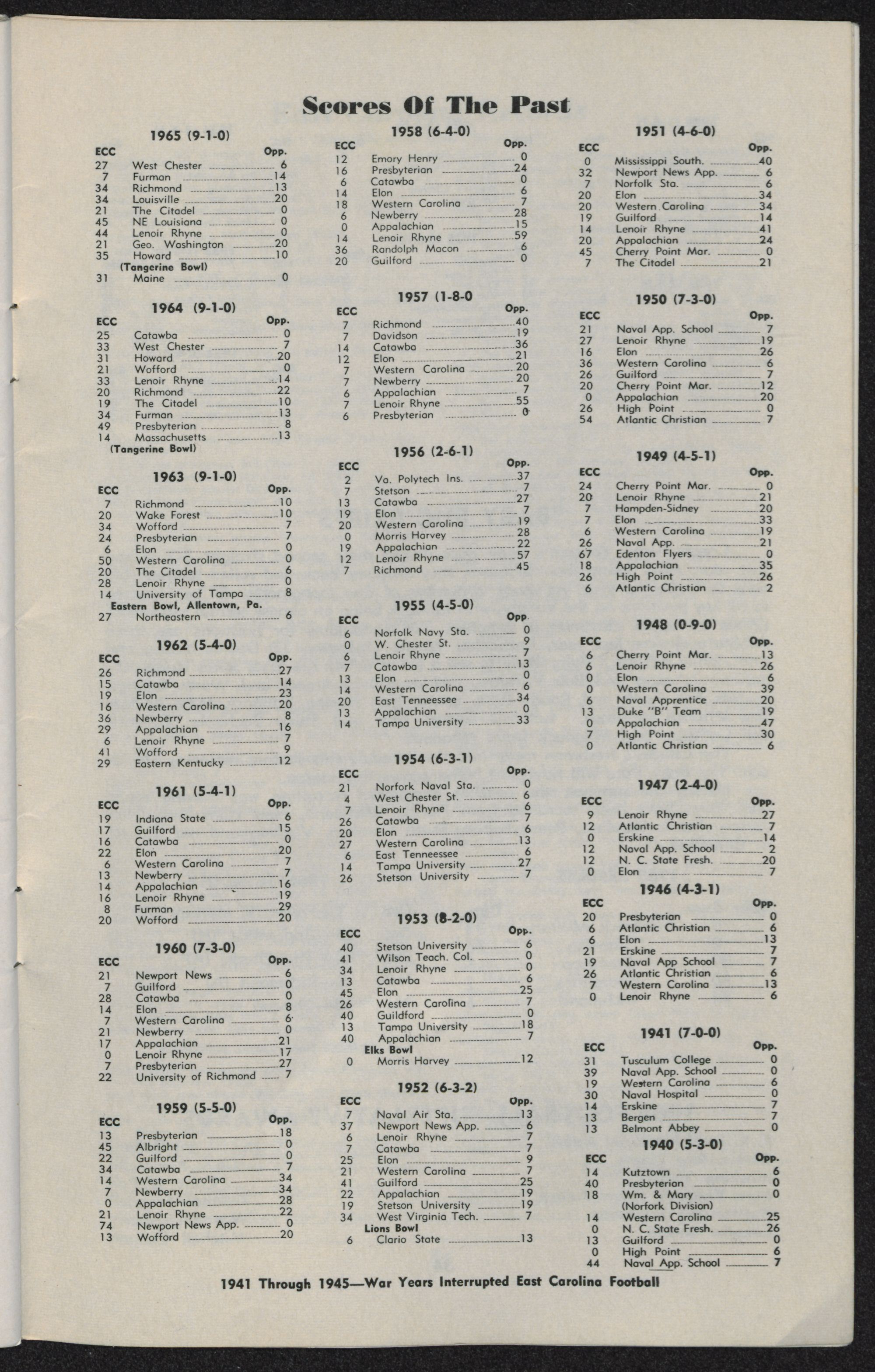 East Carolina 44, Lenoir Rhyne O Nov. 6 Greenville, N. C. 16,332