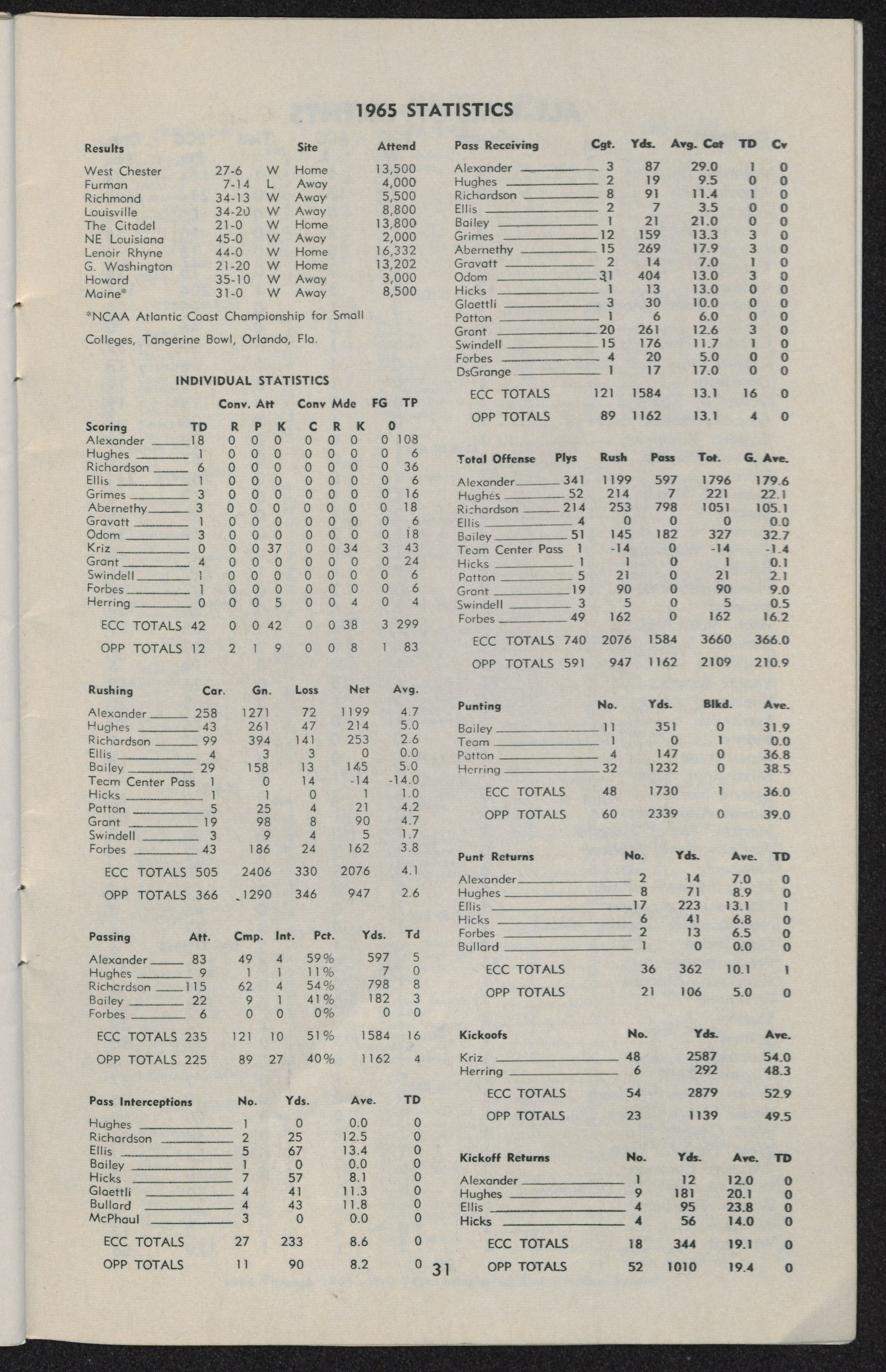 East Carolina 27, West Chester 6 Sept. 25 Greenville, N. C. 13,500