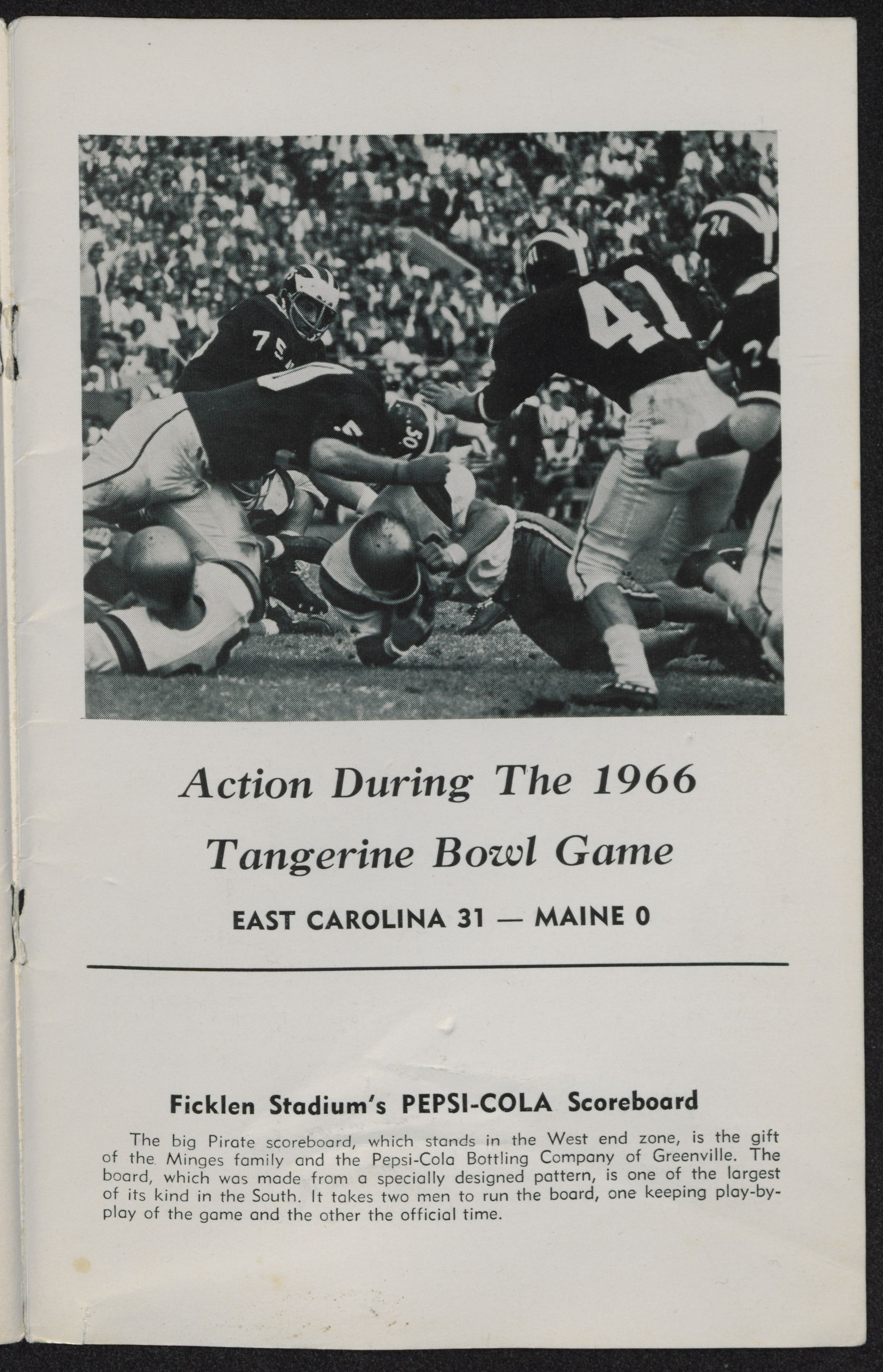 Ficklen Stadium's PEPSI-COLA Scoreboard
