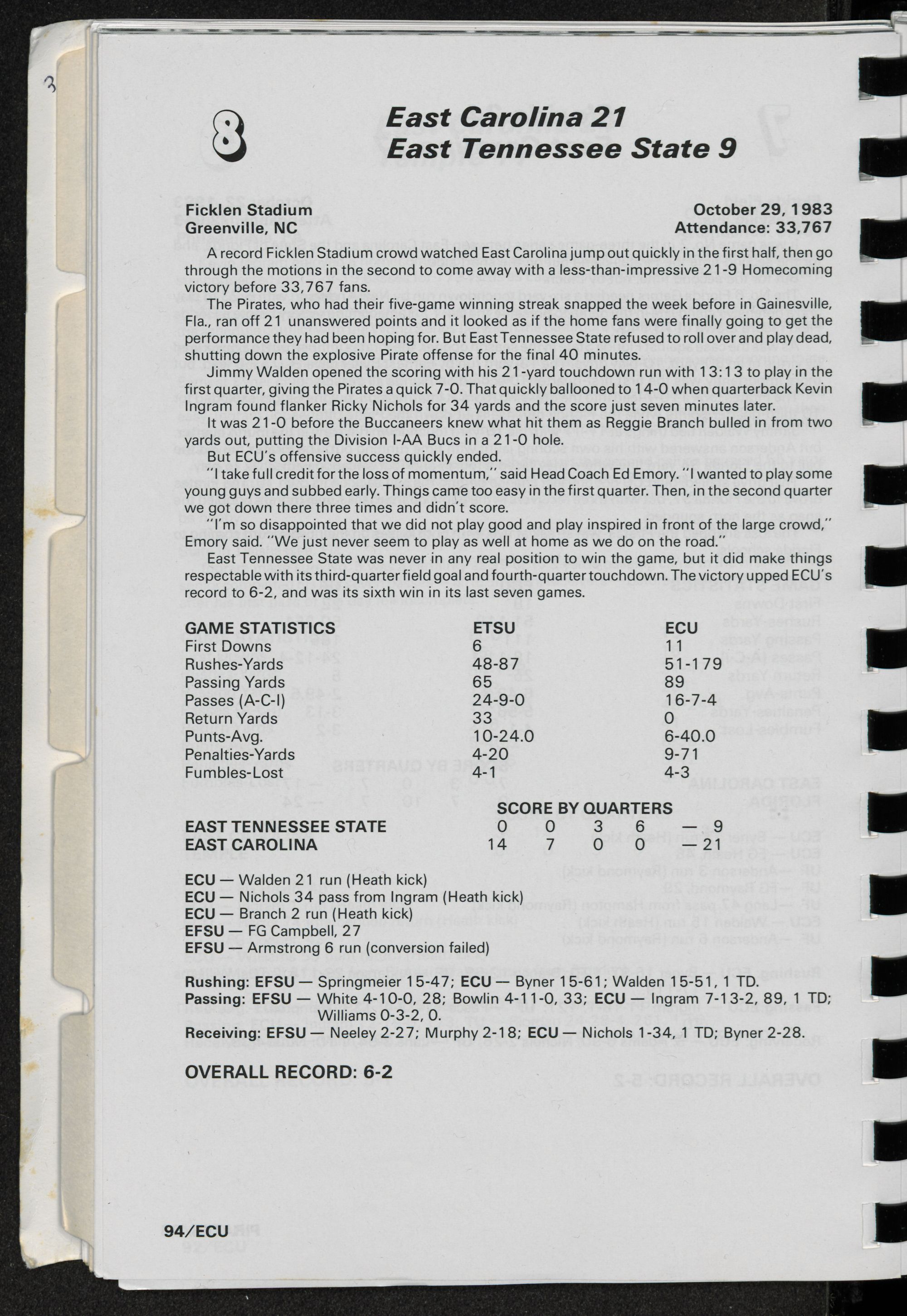 EAST TENNESSEE STATE FICKLEN STADIUM 21 9 33,767