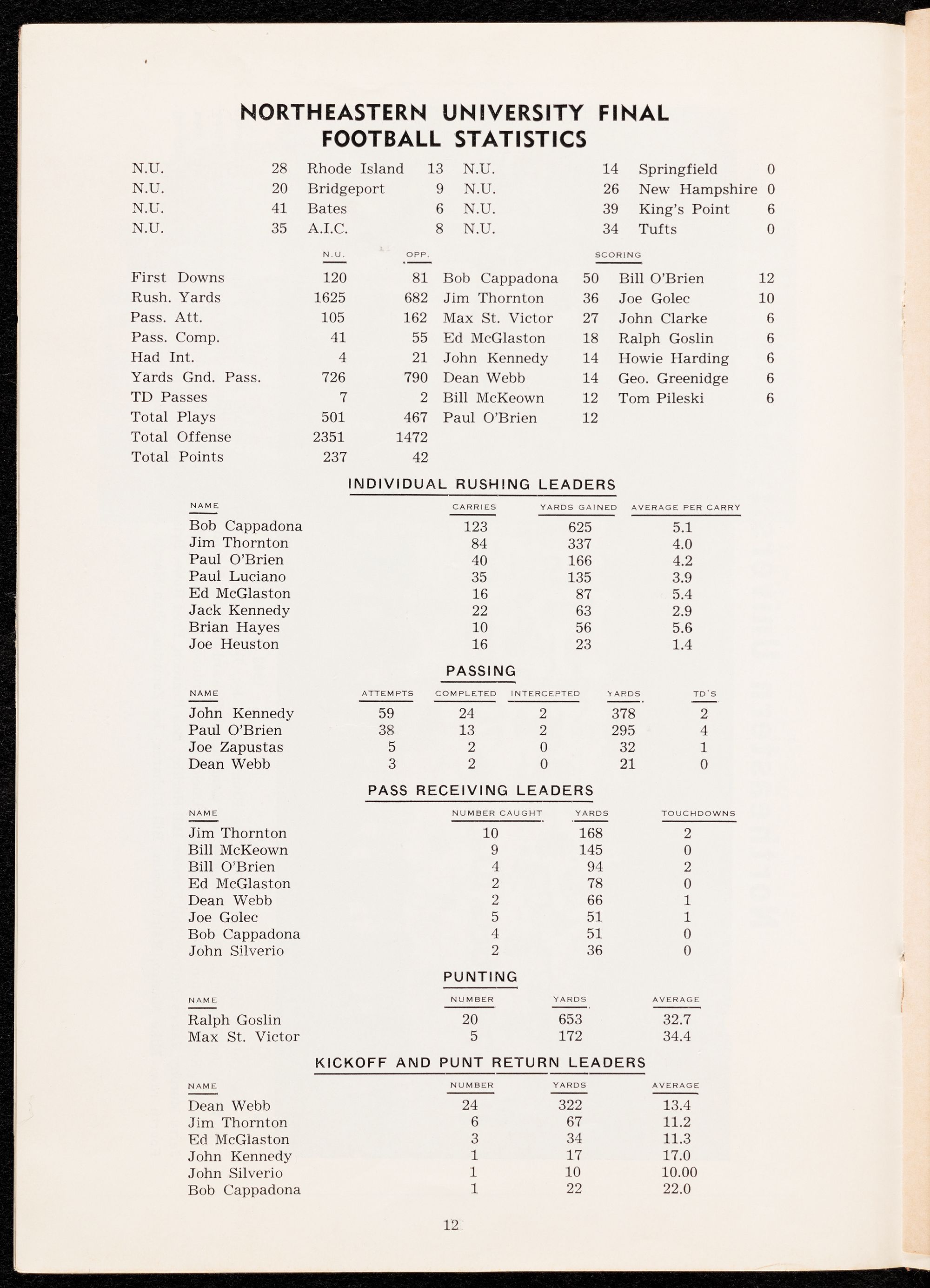 Northeastern Univ. 1963 Statistics ....... Page 12