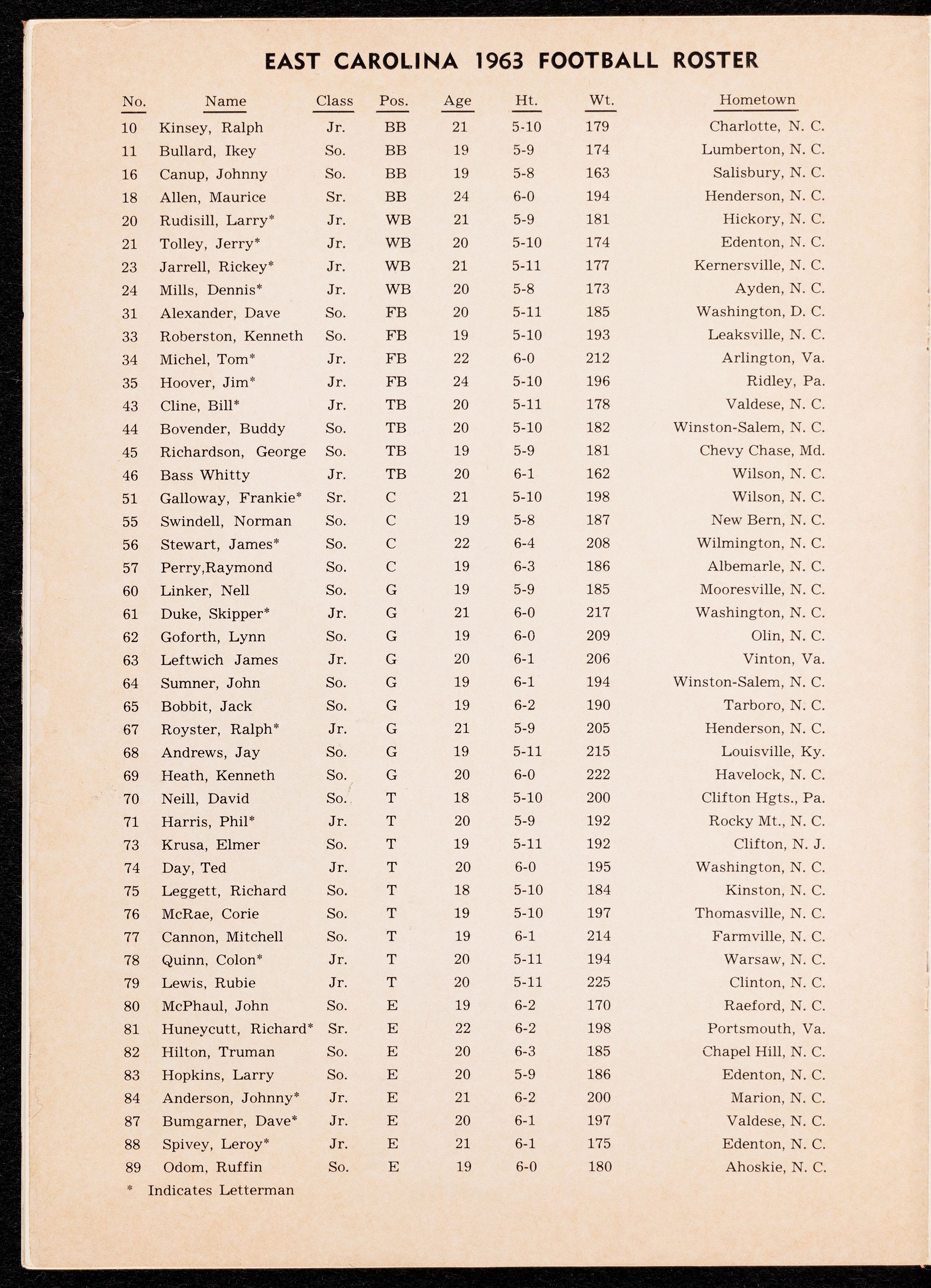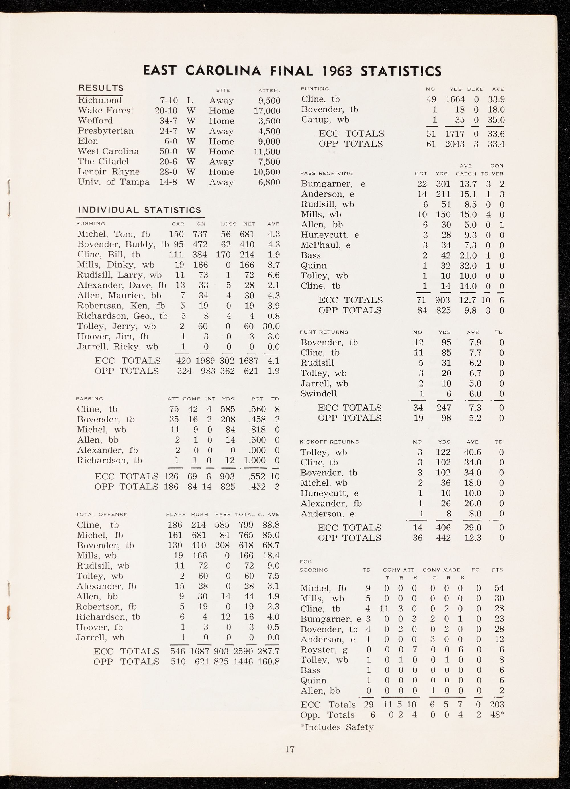 East Carolina 1963: Statistics 2.25. 22 Page 17