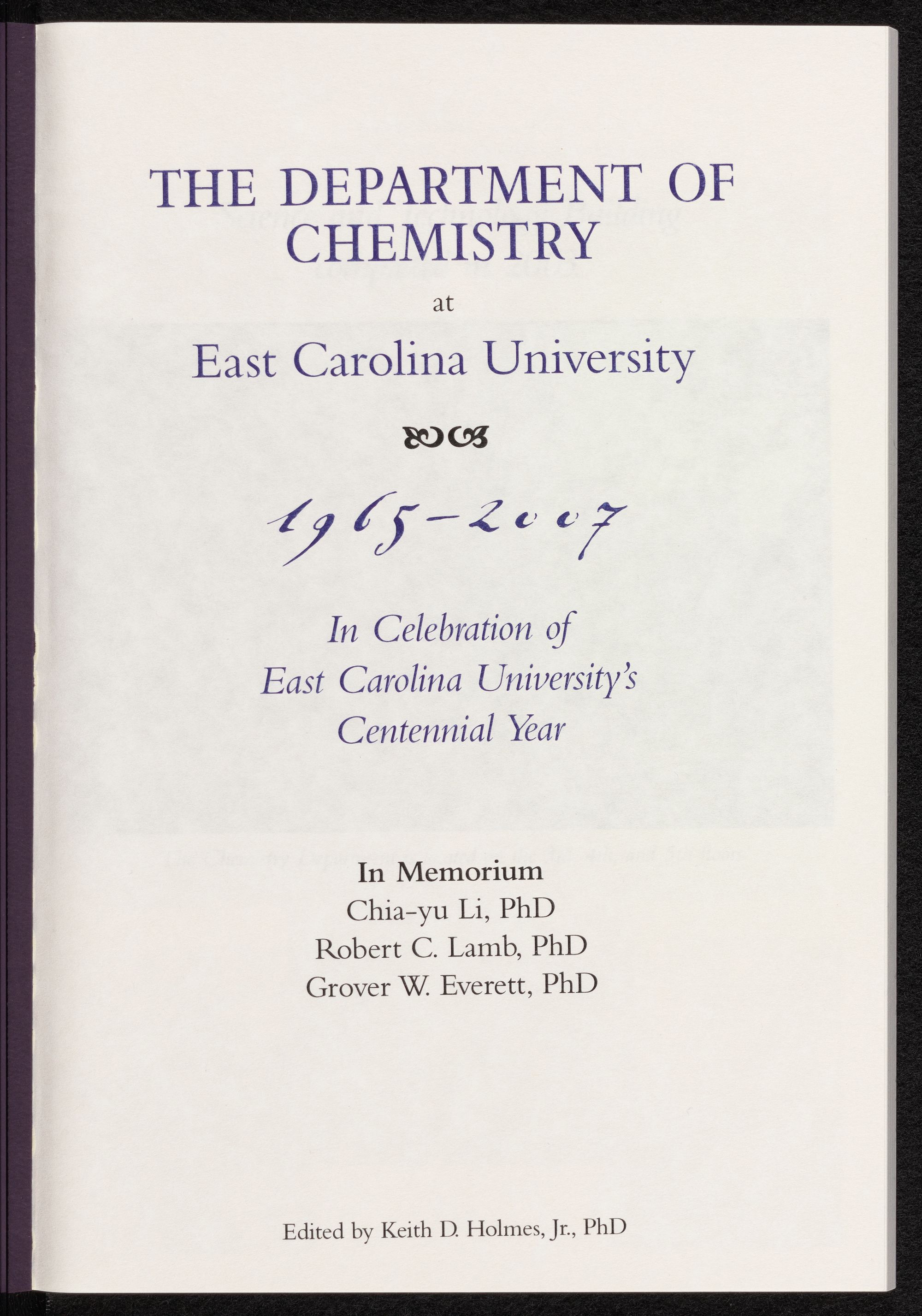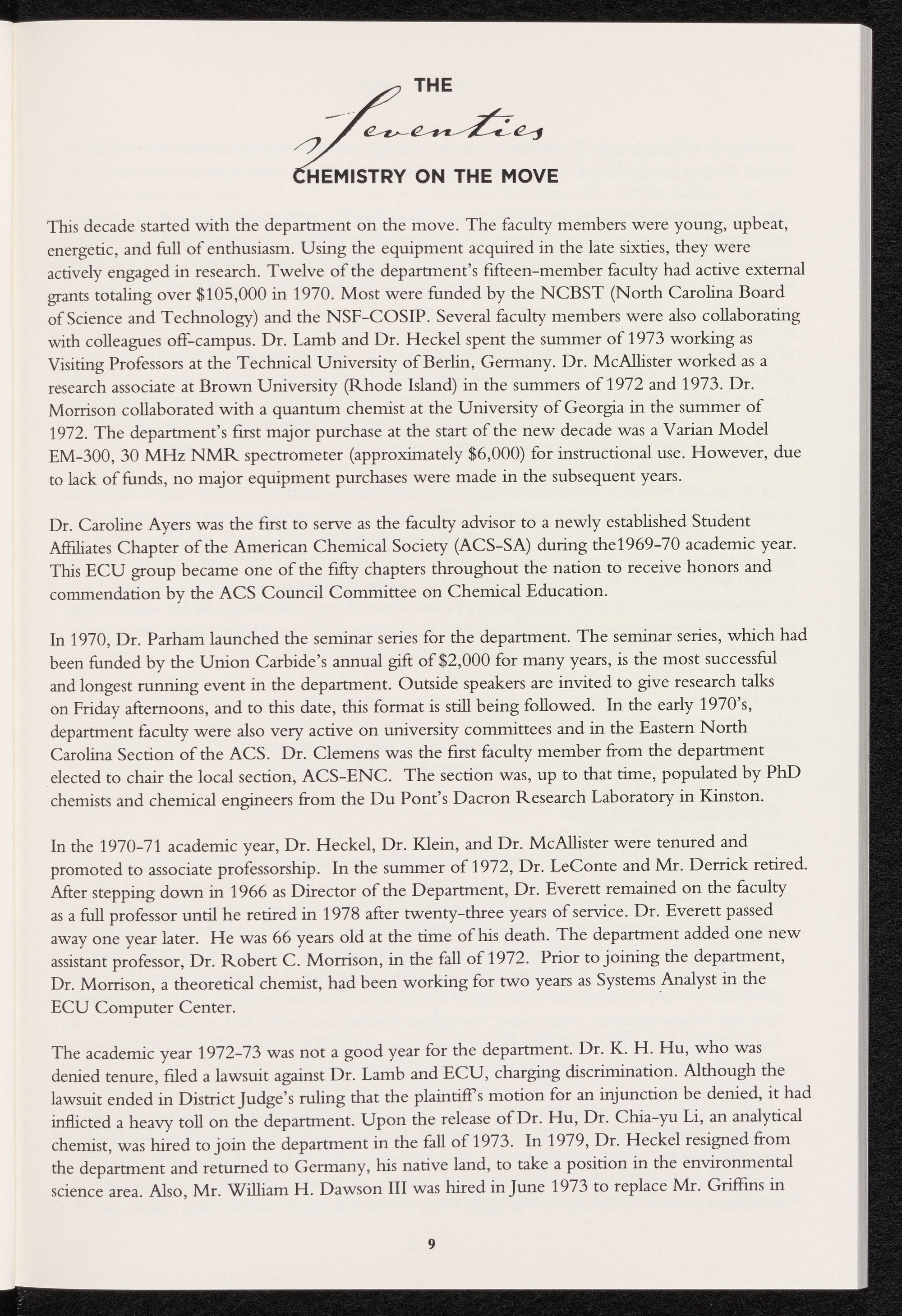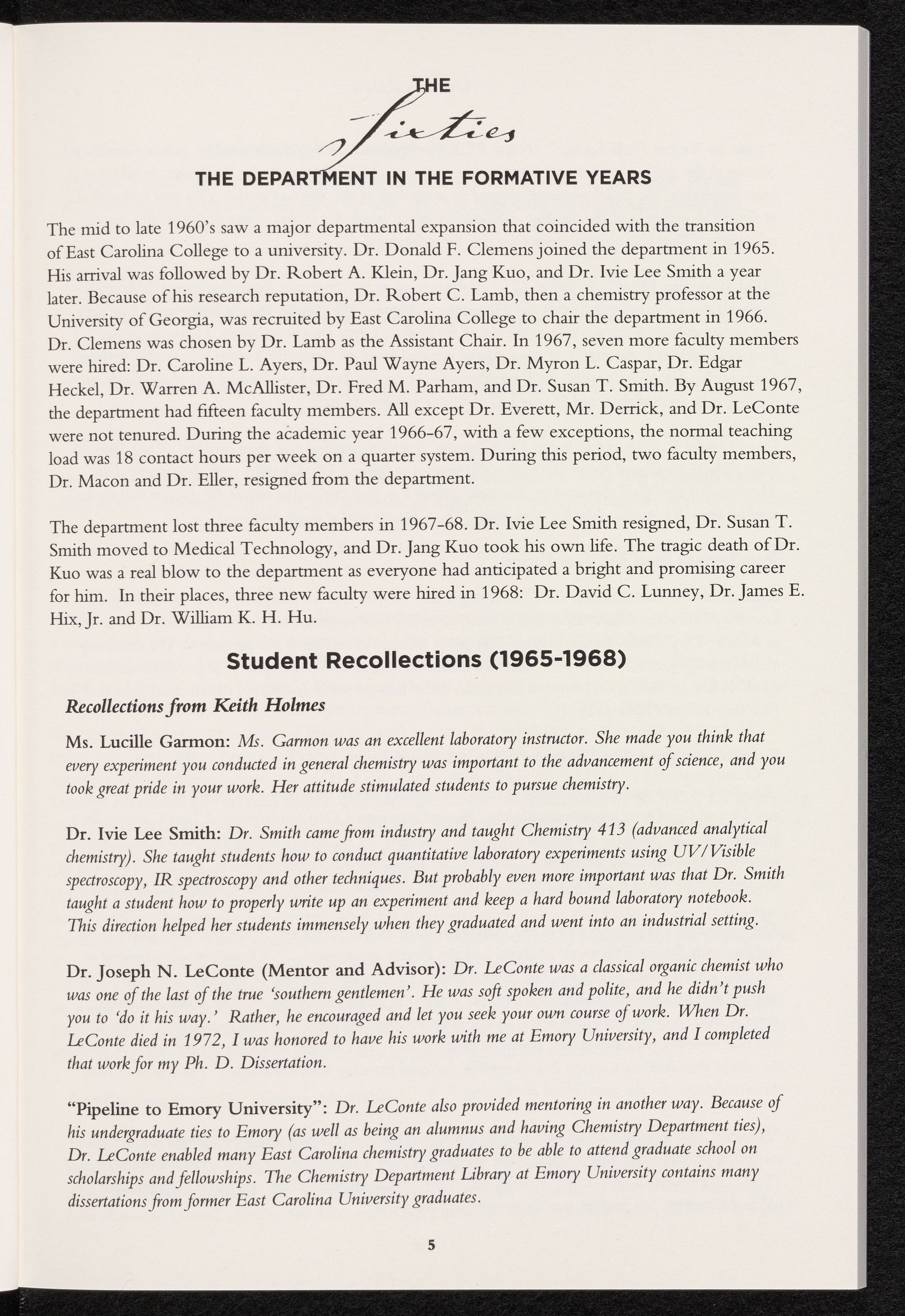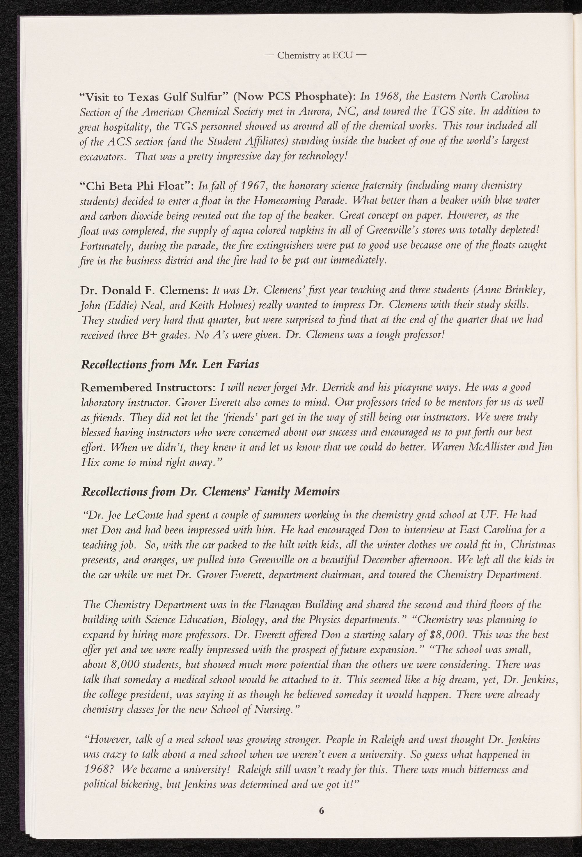 ever hired to specifically teach chemistry at East Carolina University.) During the 1963-64
