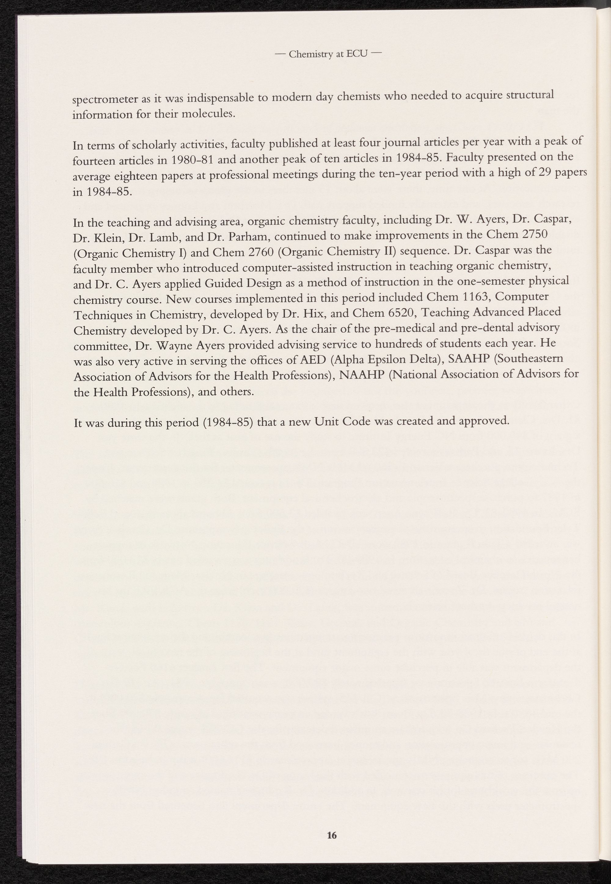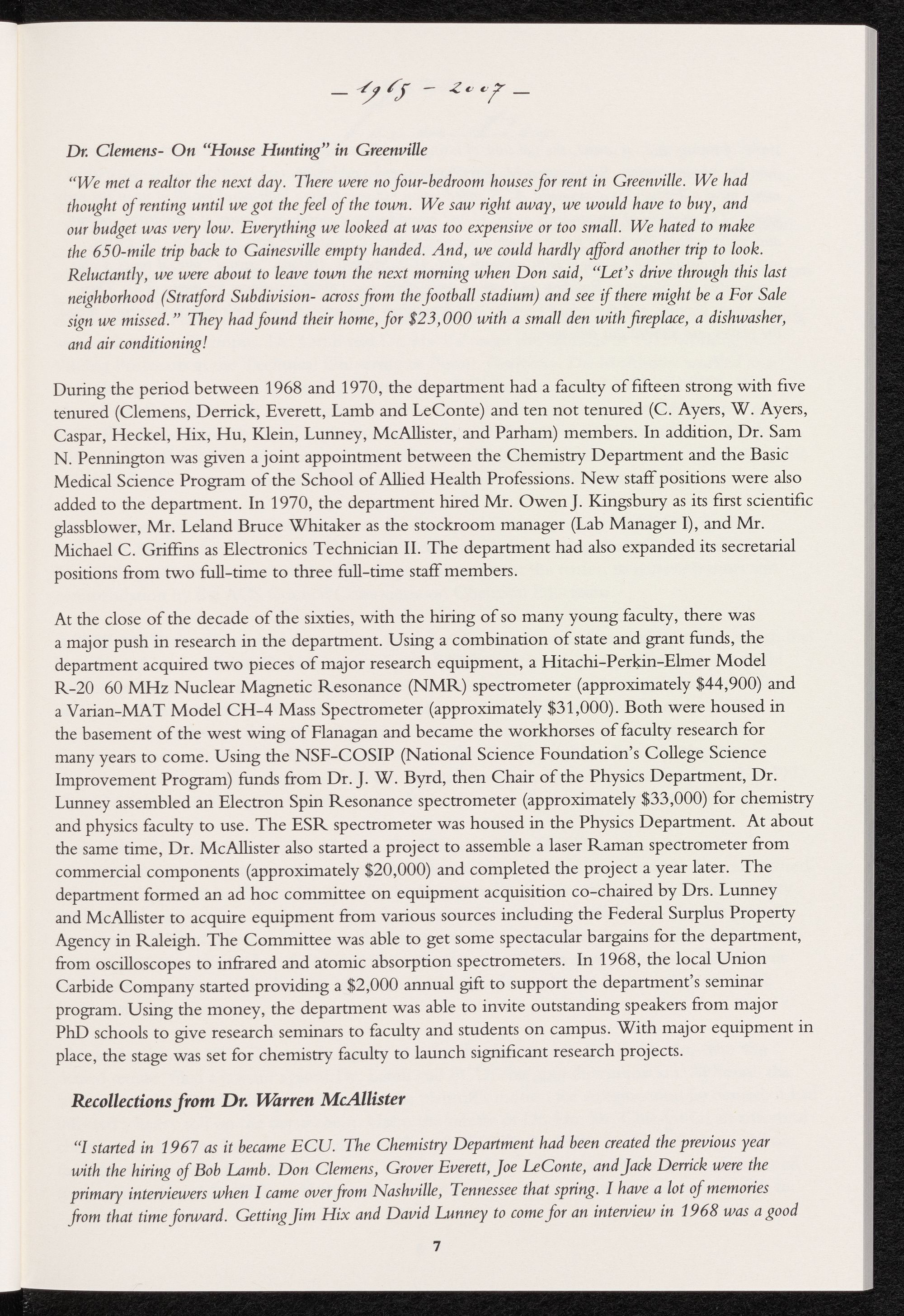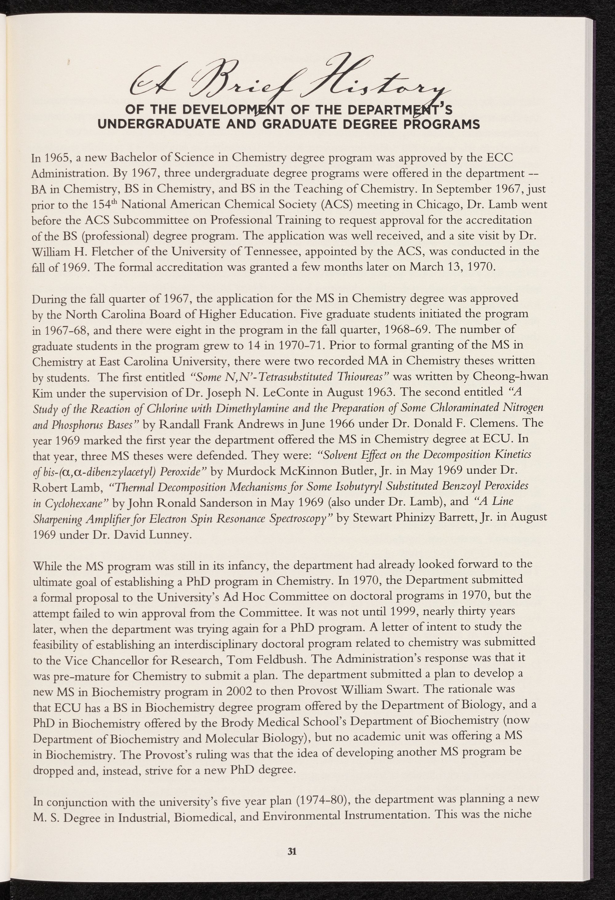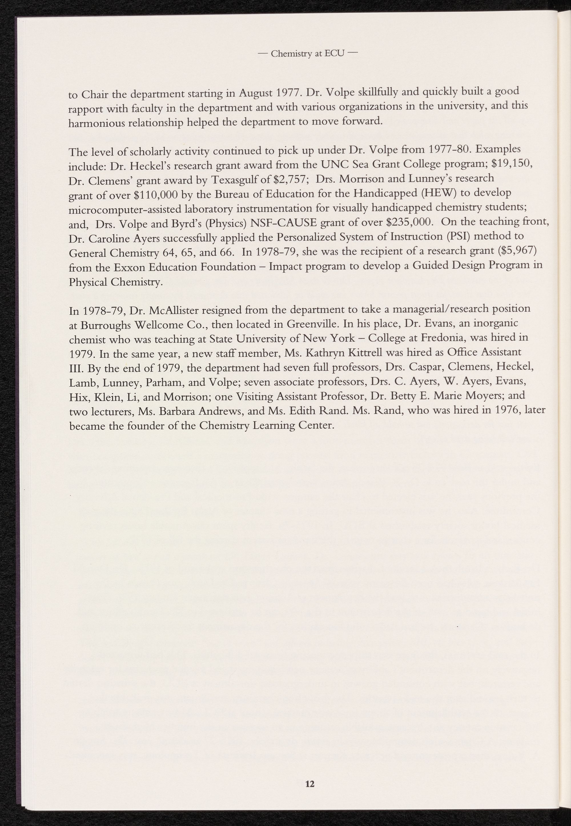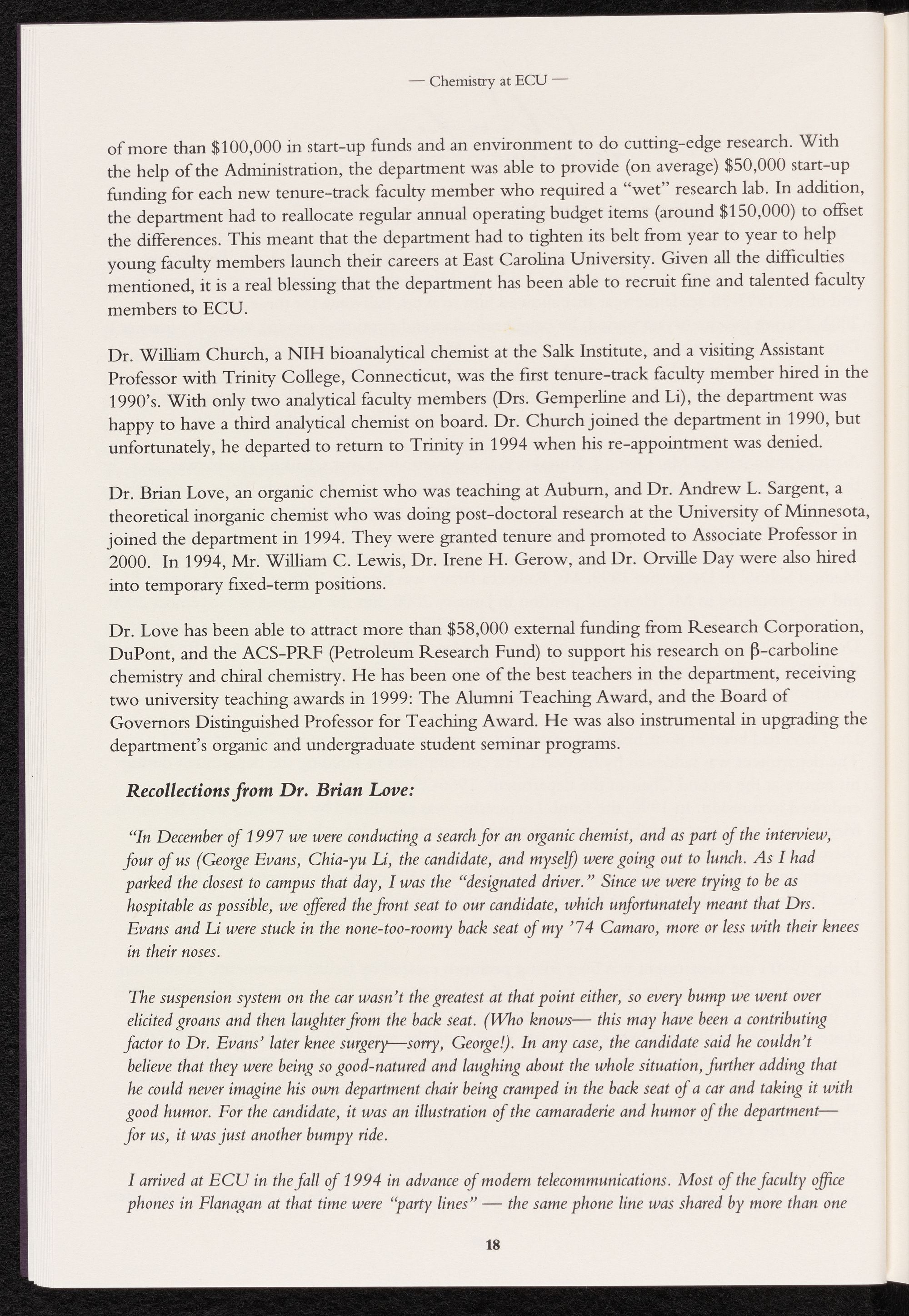 ever hired to specifically teach chemistry at East Carolina University.) During the 1963-64