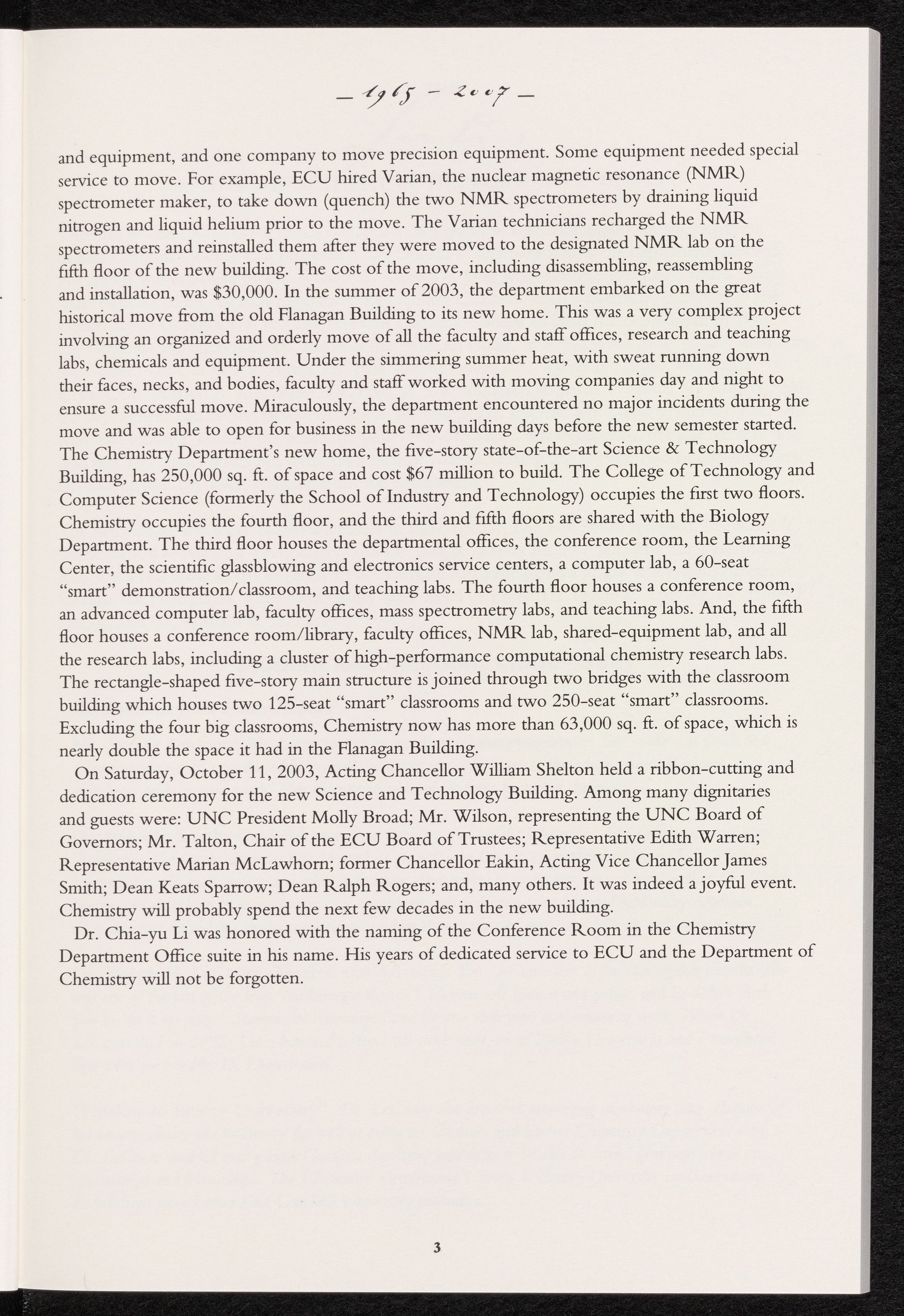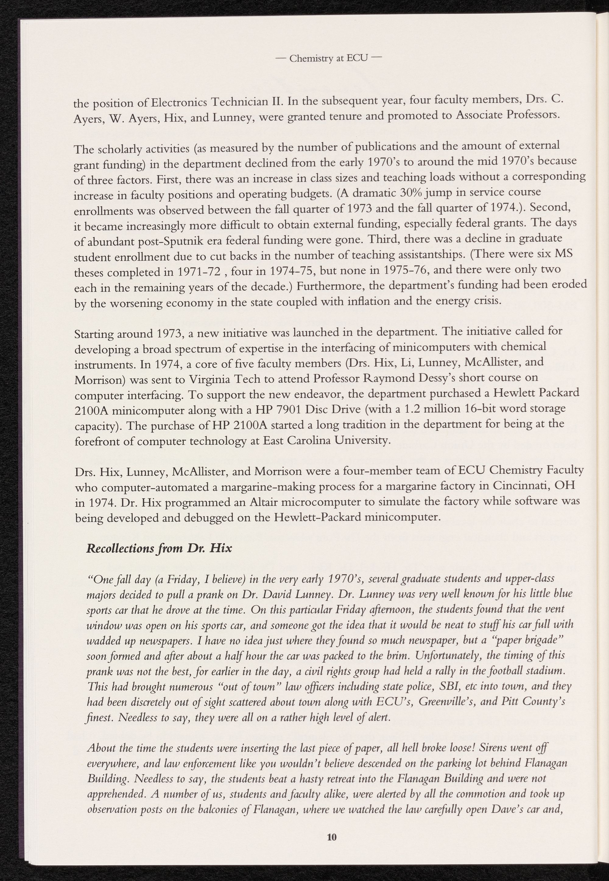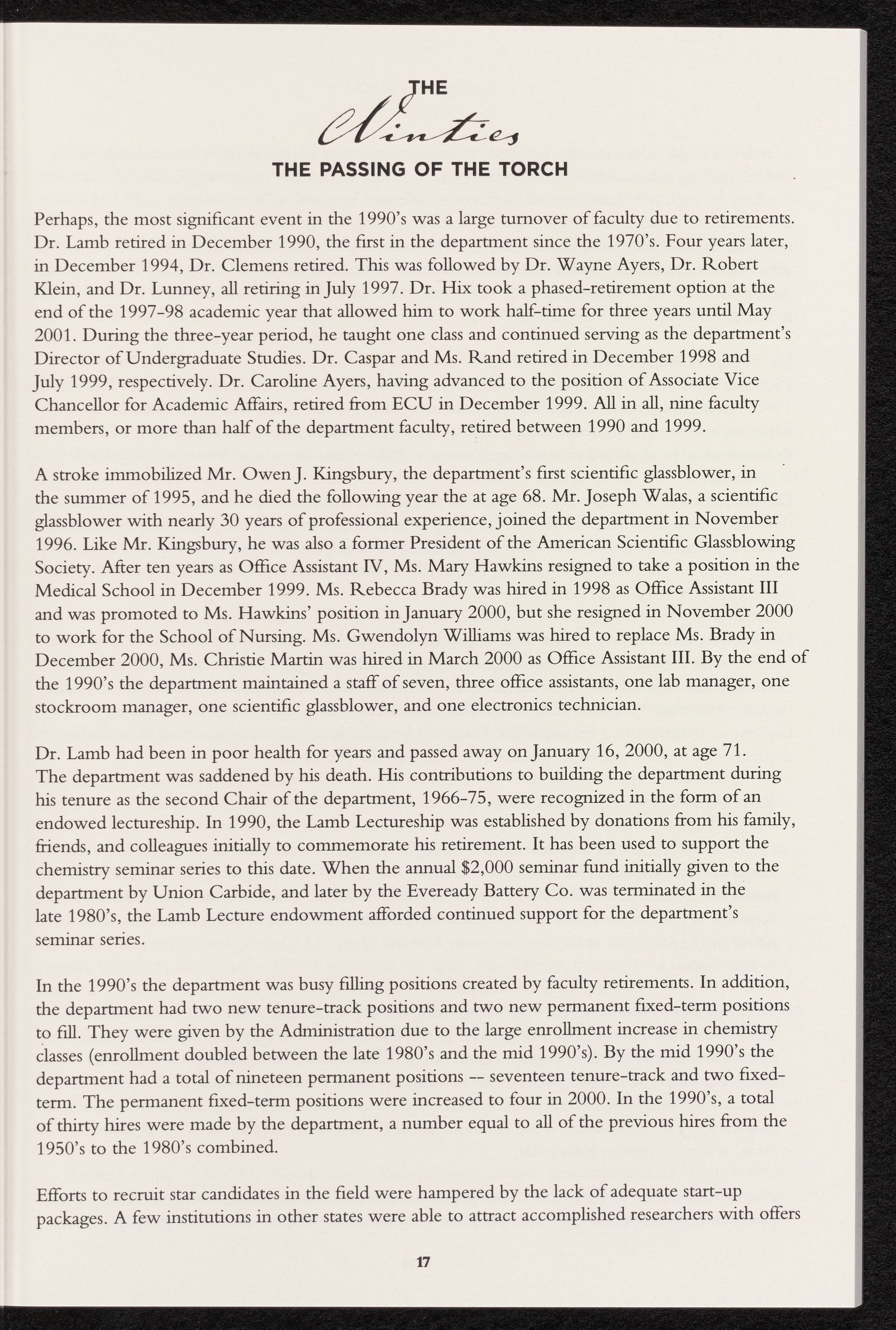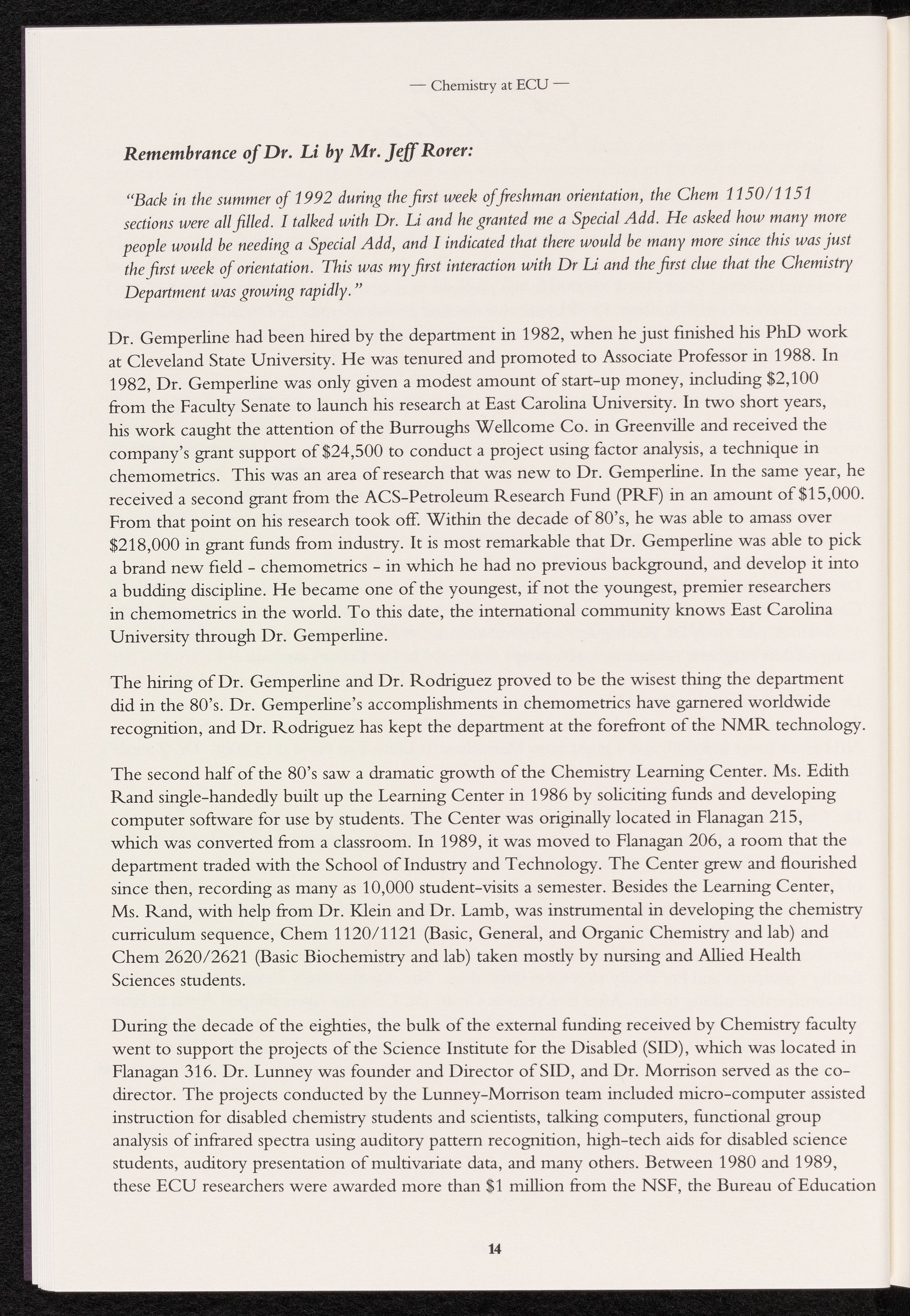 ever hired to specifically teach chemistry at East Carolina University.) During the 1963-64