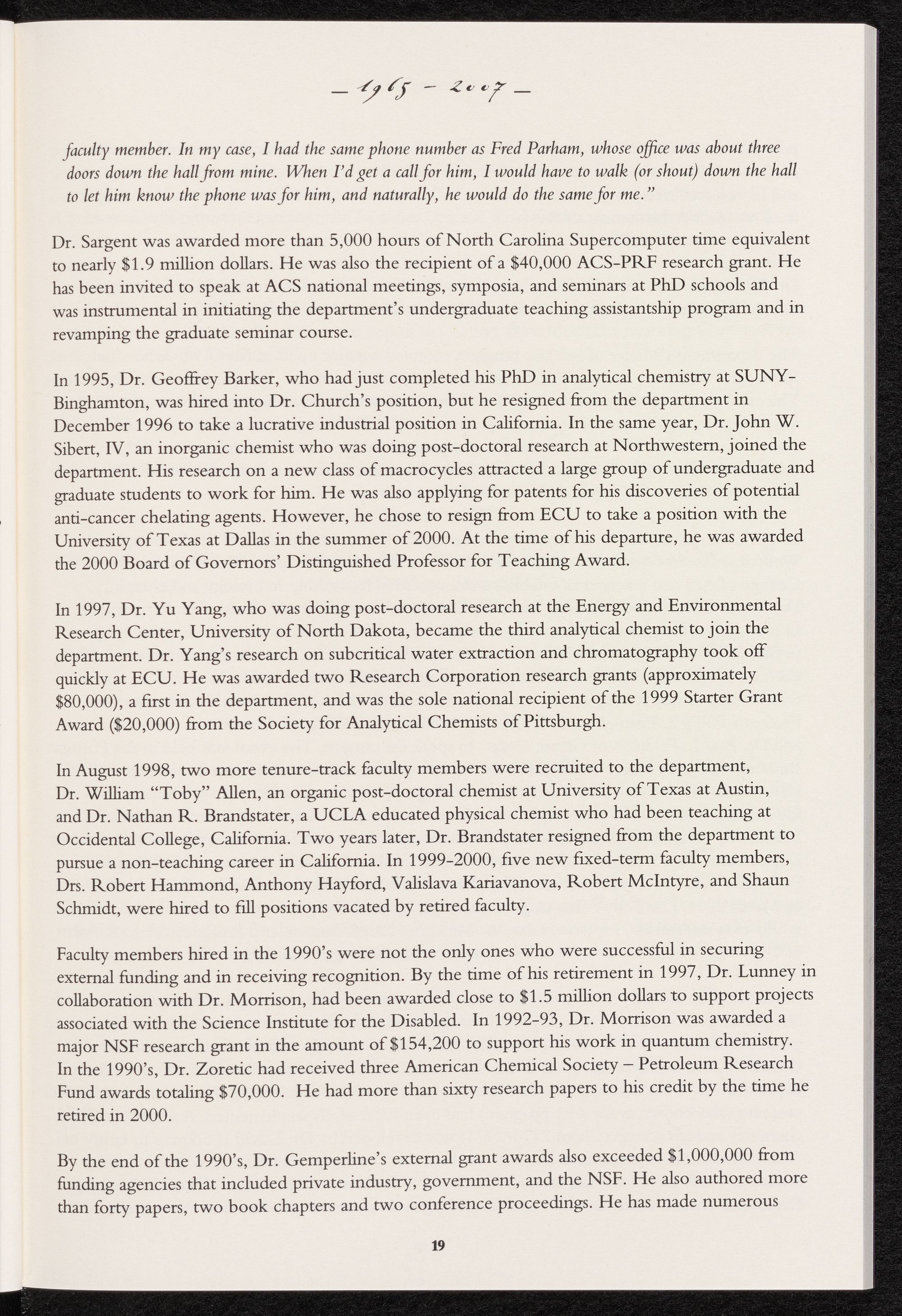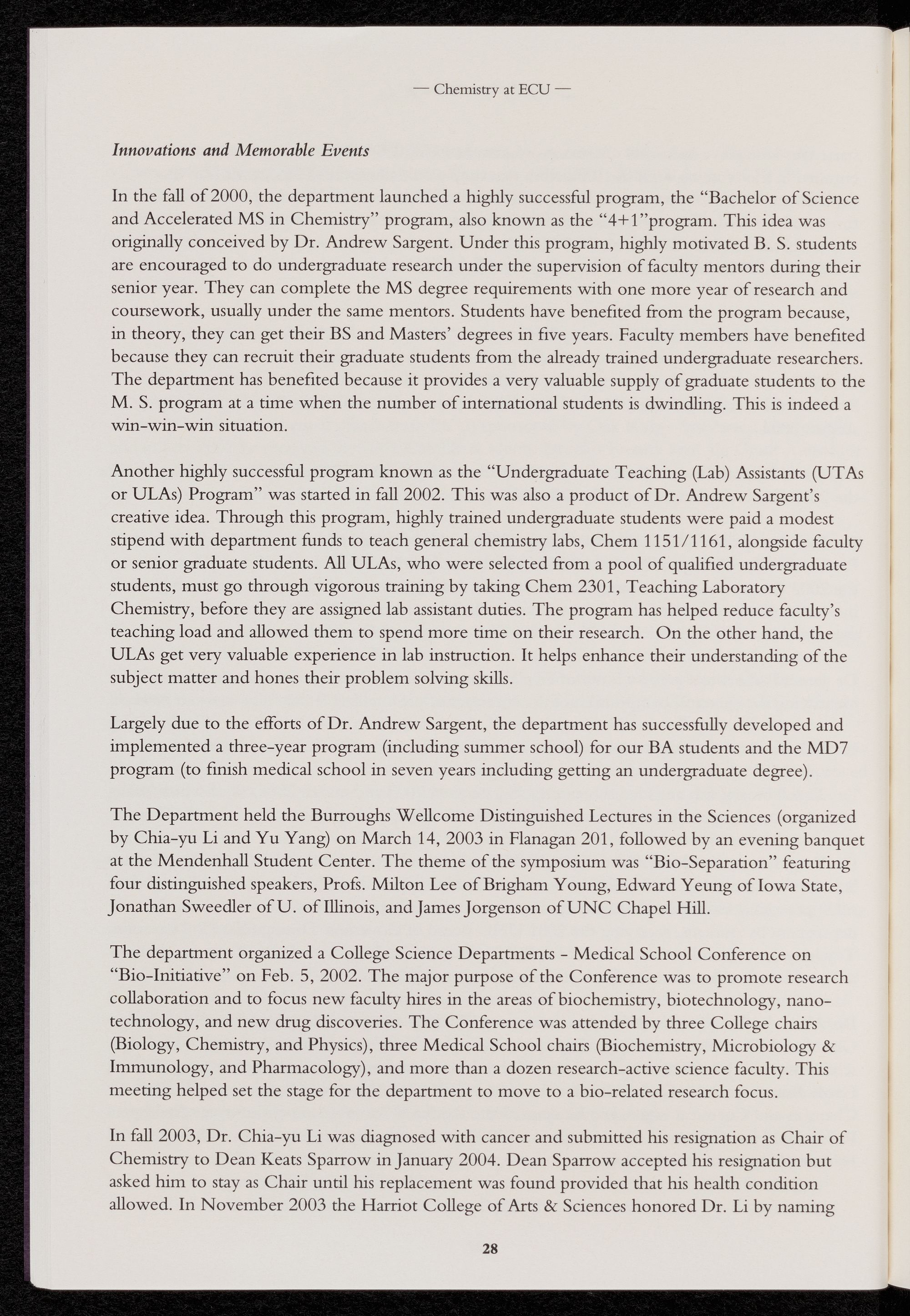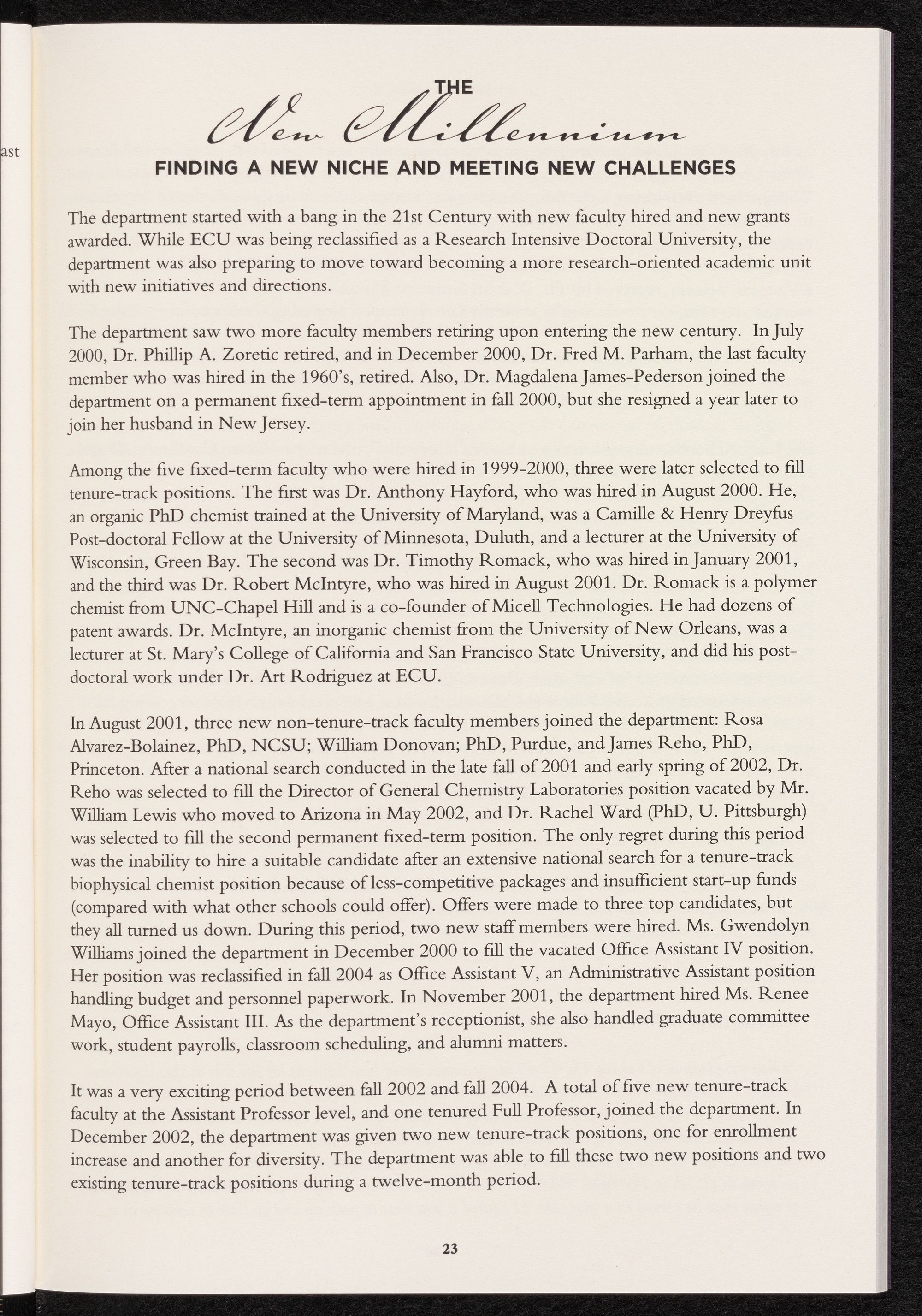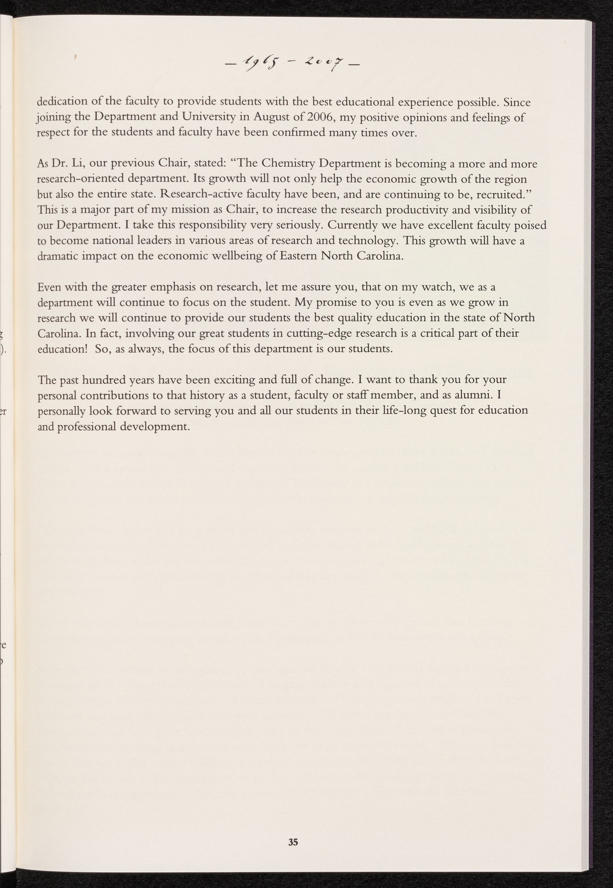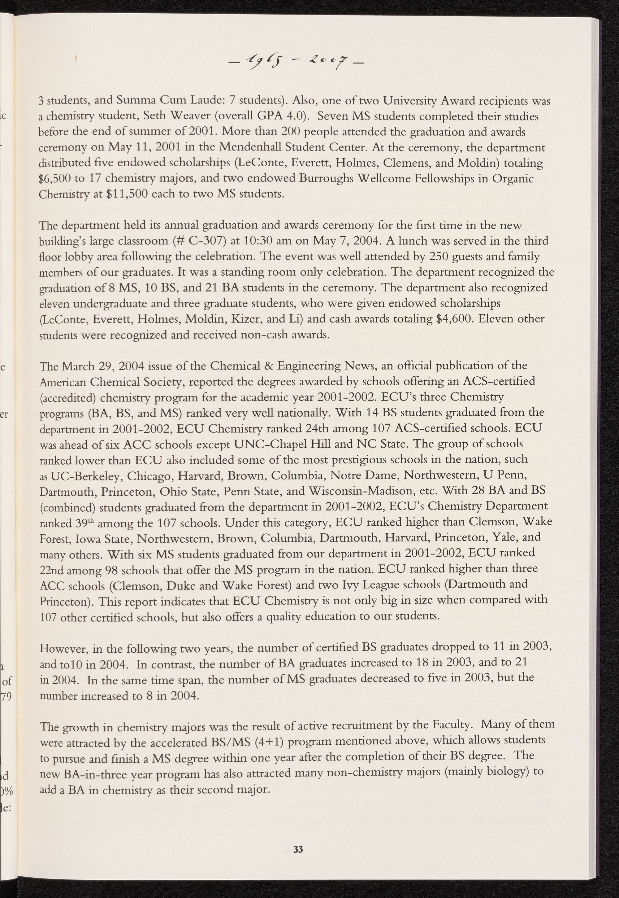 ever hired to specifically teach chemistry at East Carolina University.) During the 1963-64