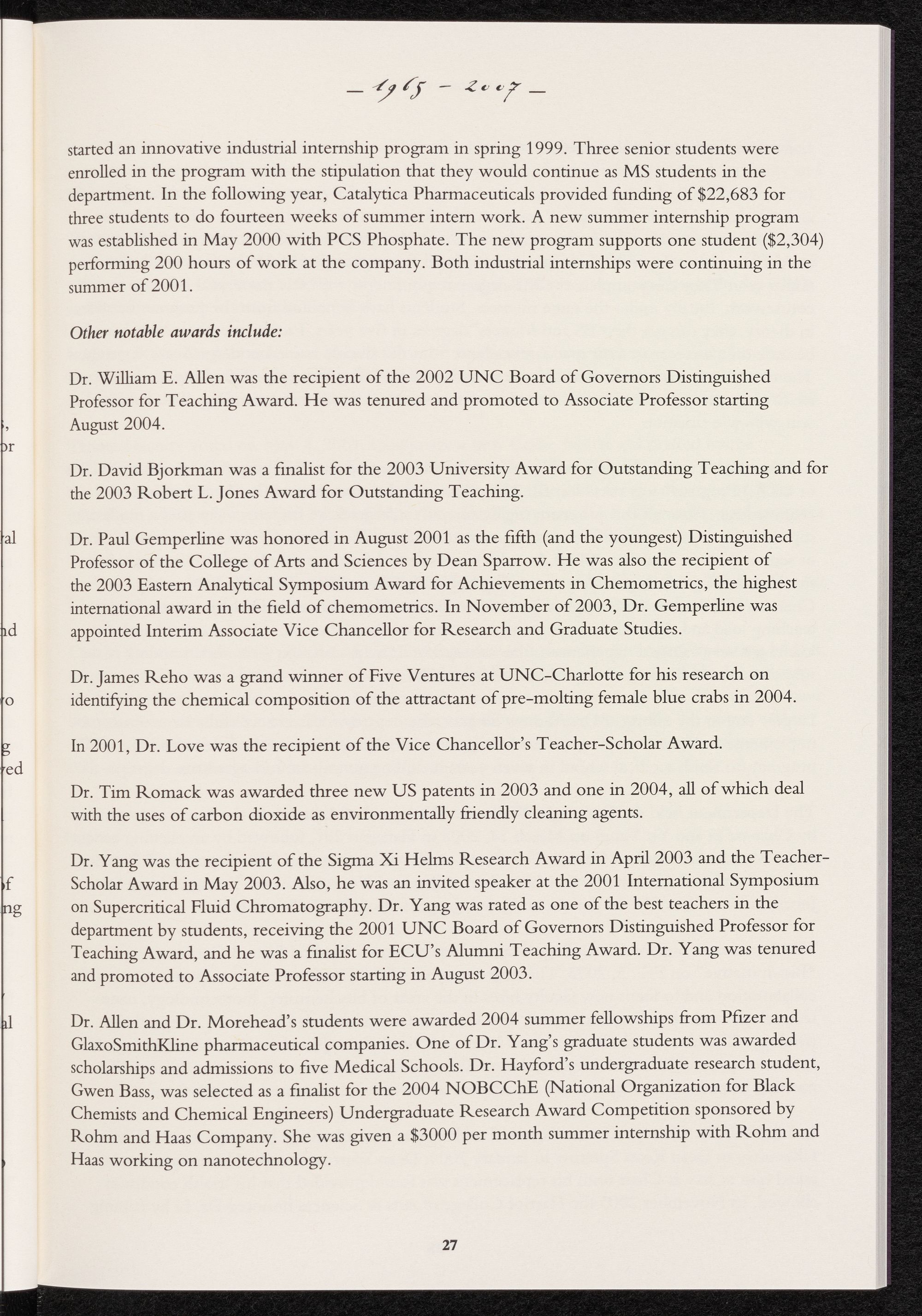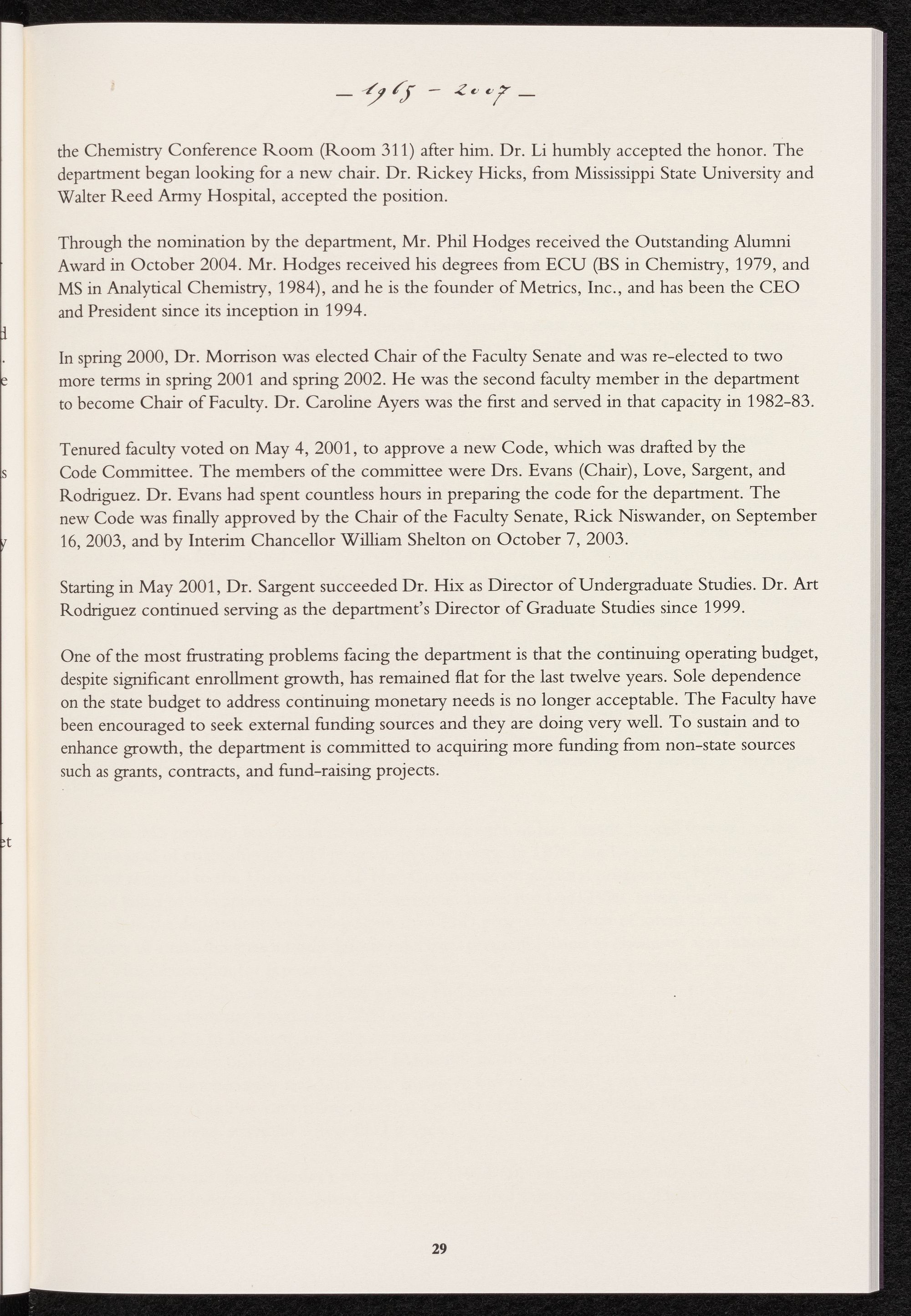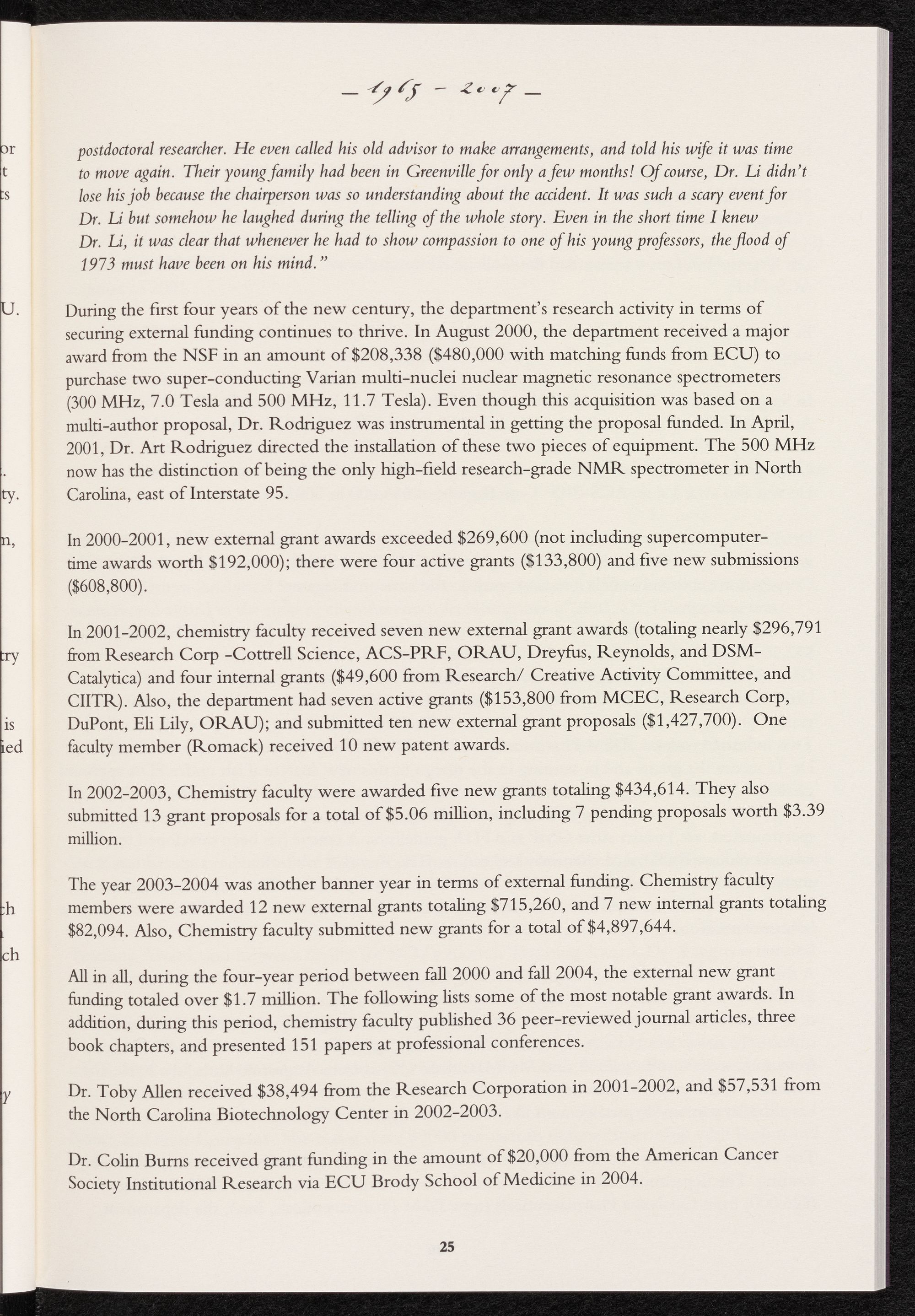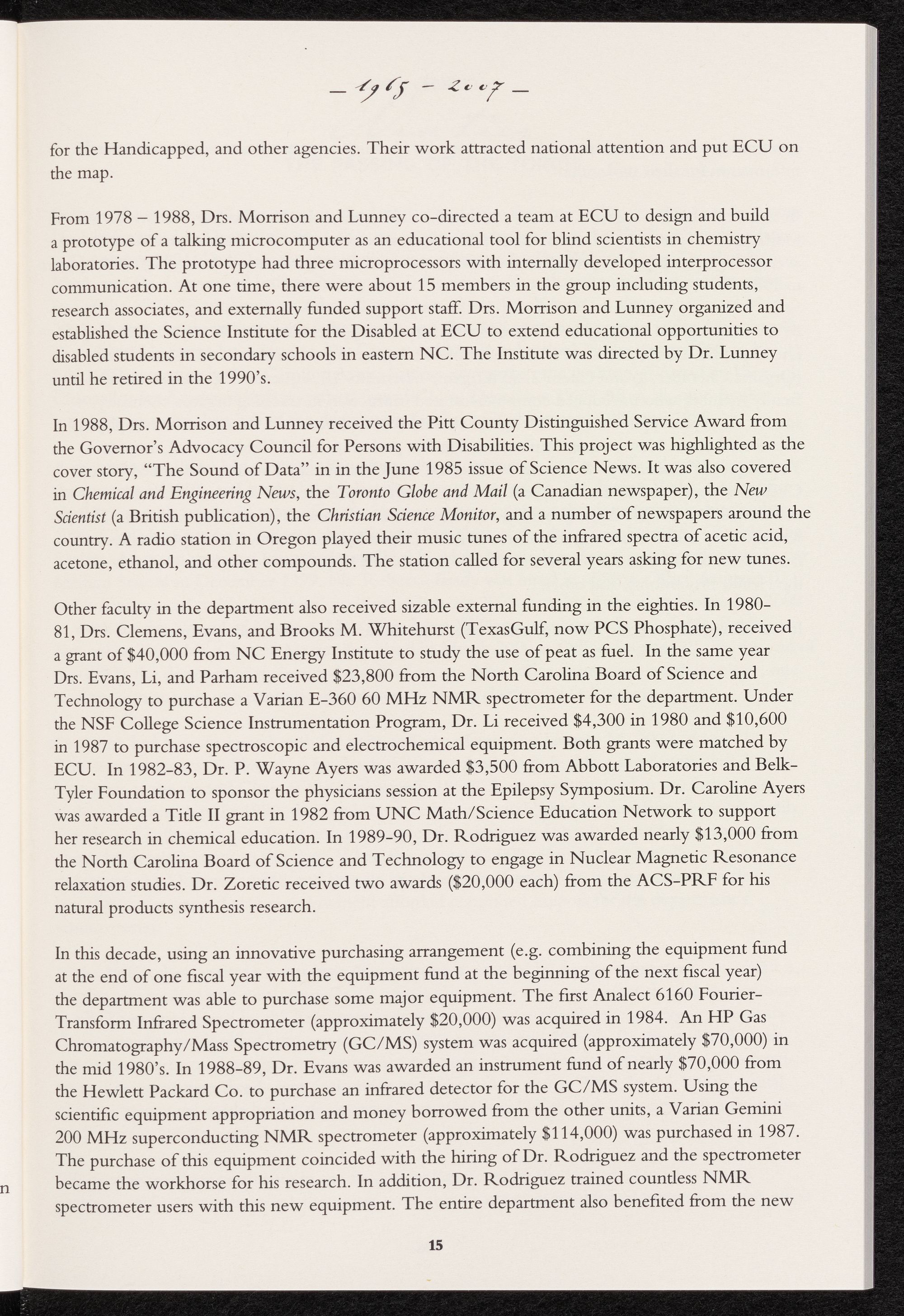 ever hired to specifically teach chemistry at East Carolina University.) During the 1963-64