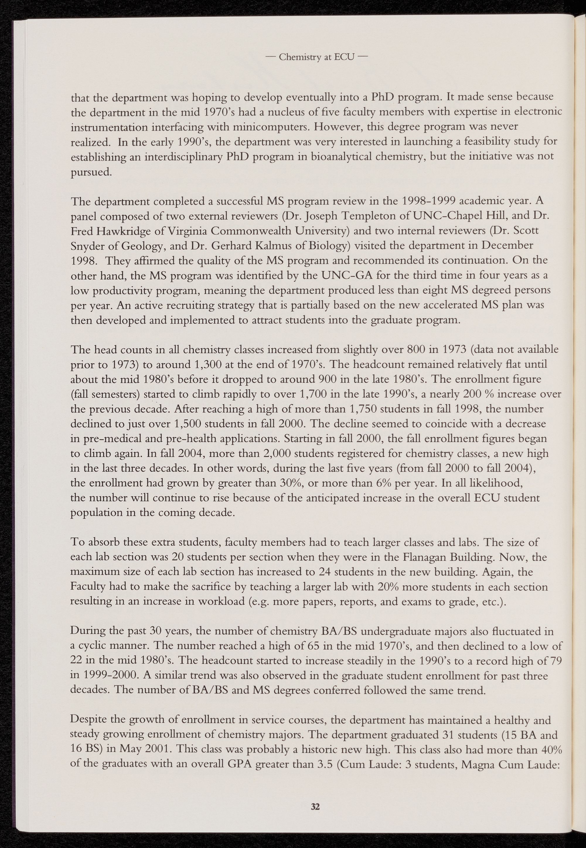 class was taught at East Carolina University (ECU), but the first structured chemistry curriculum