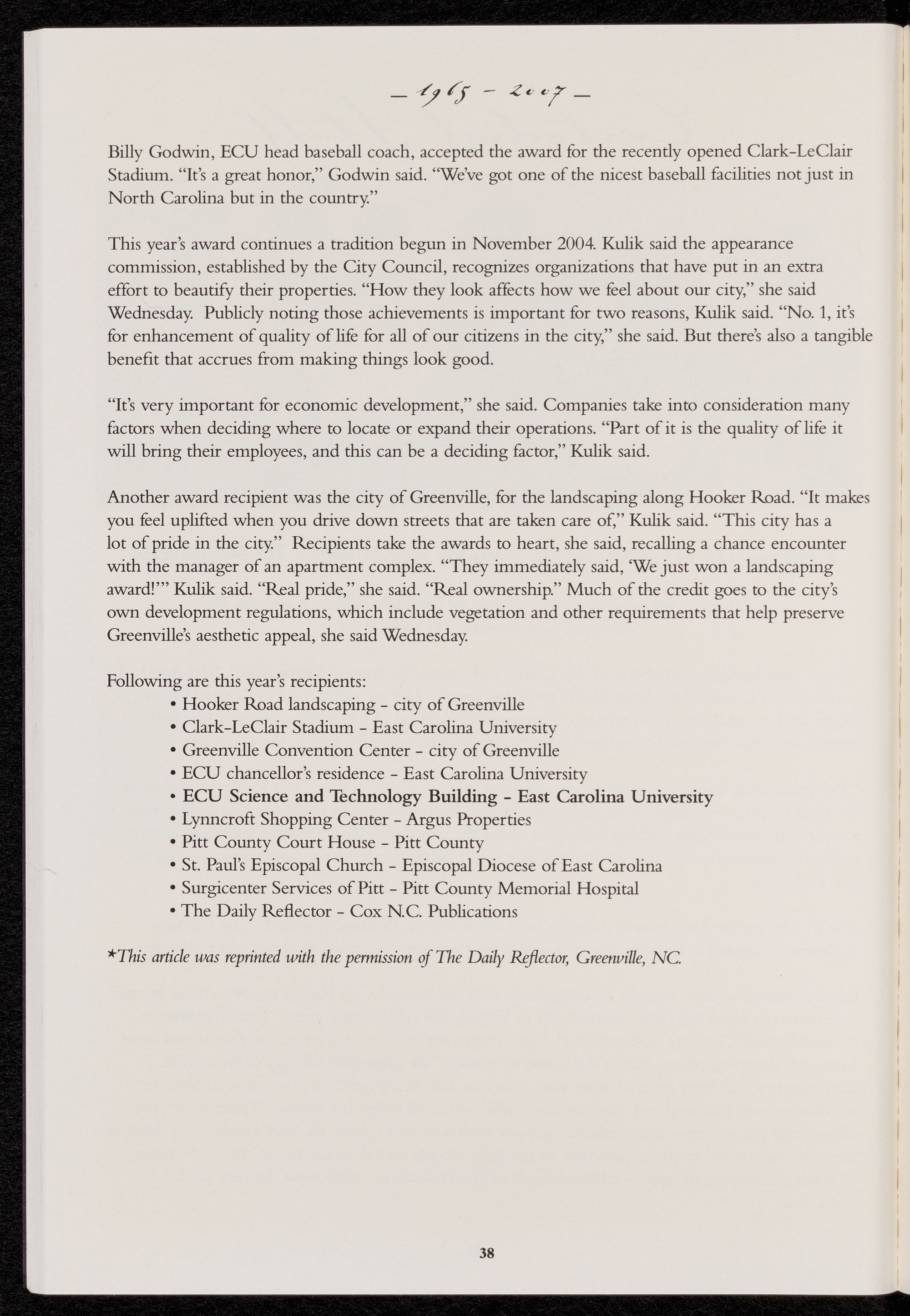 (Mr. Derrick, who joined East Carolina University in 1946, was probably the first faculty member