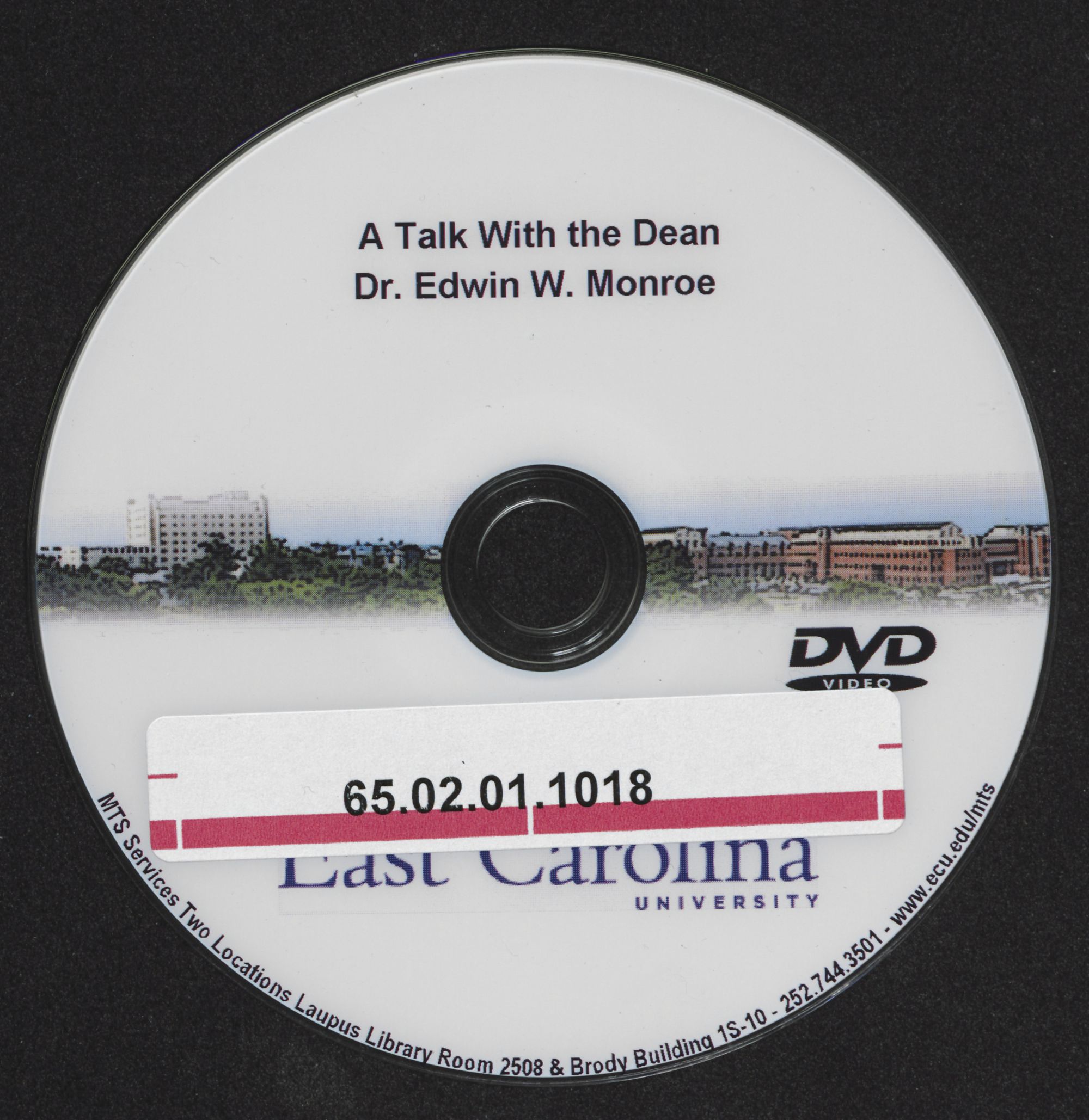 Video recording of a talk with Dean Edwin W. Monroe on DVD. The video contains former Dean Dr. Edwin W. Monroe talking about the development of the School of Medicine and his career at East Carolina University. Date approximated.