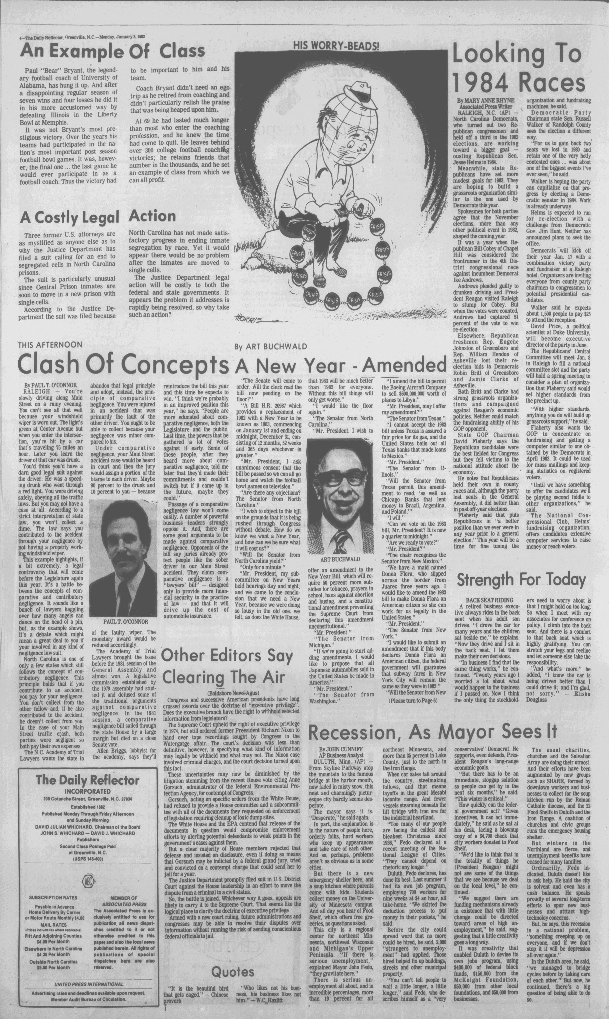 The FarmvUle Democrat also commented on the new Congress and the issues which he feels are paramount as Congress goes into the 1983 session.
