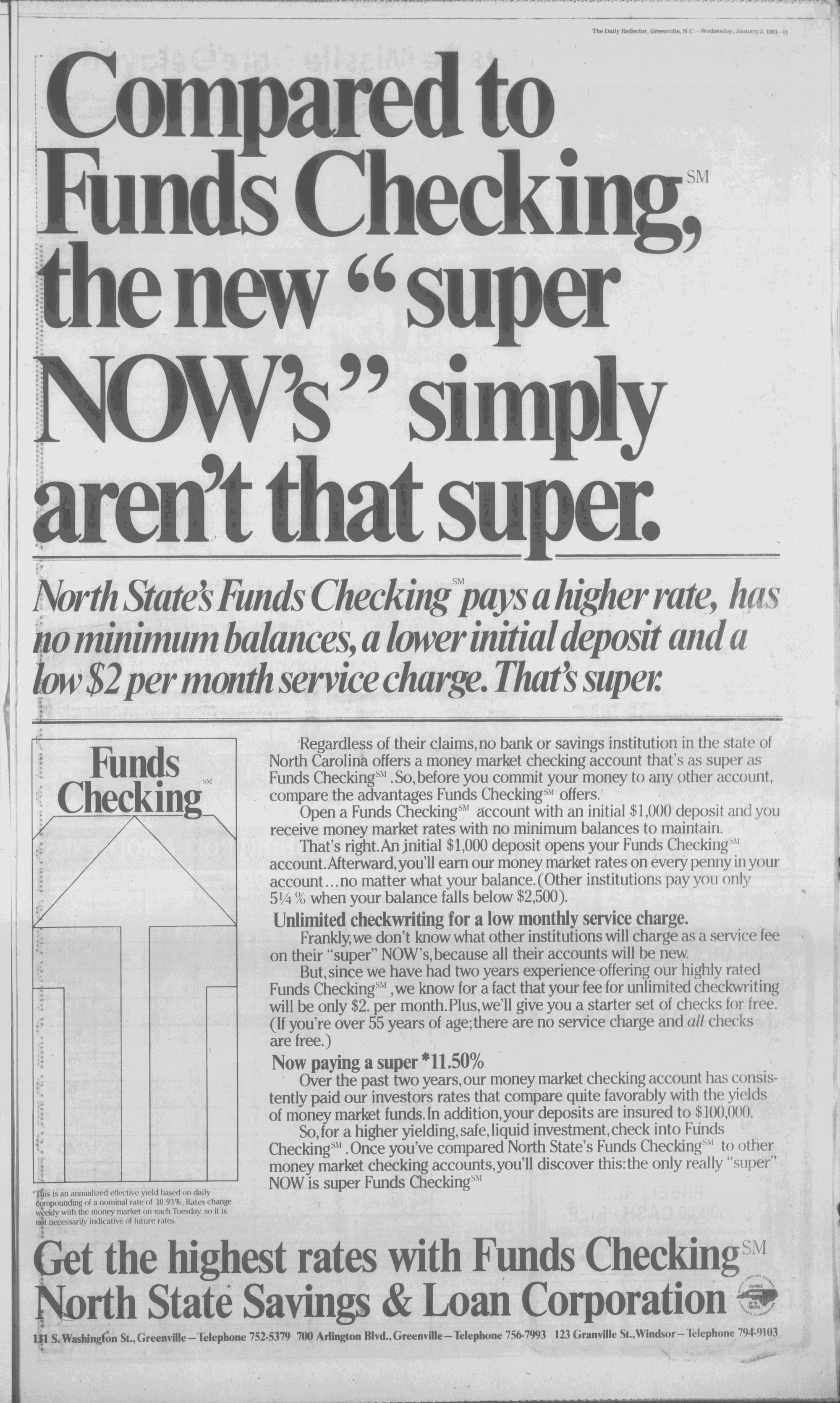 The newspaper was established in 1882, and was originally named the Eastern Reflector. It was founded by Julian Whichard and David Jordan with equipment they purchased from The Greenville Express. On December 10, 1894, it adopted the name The Reflector and began publishing every day. Cox Newspapers acquired The Daily Reflector in 1996. Creator: Daily Reflector (Greenville, N.C.)