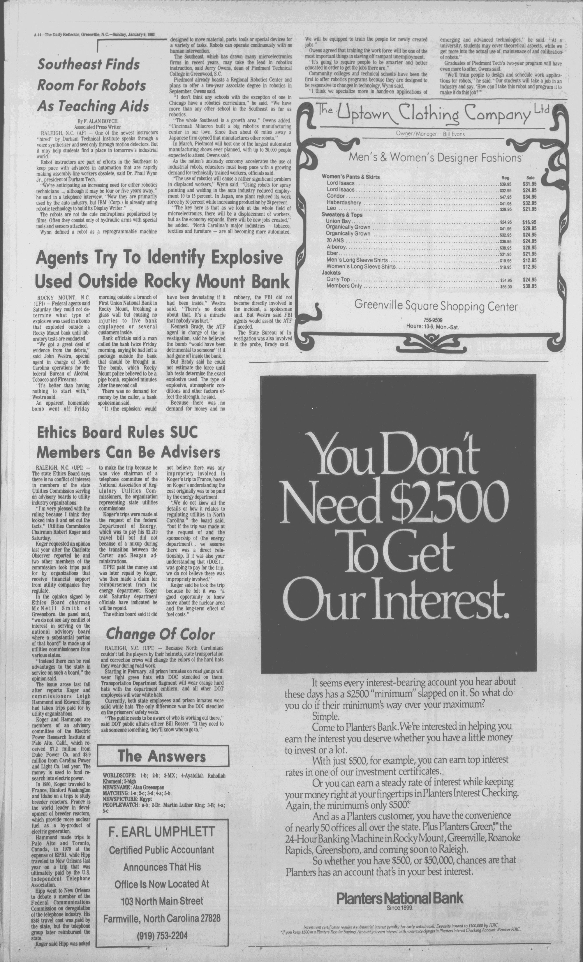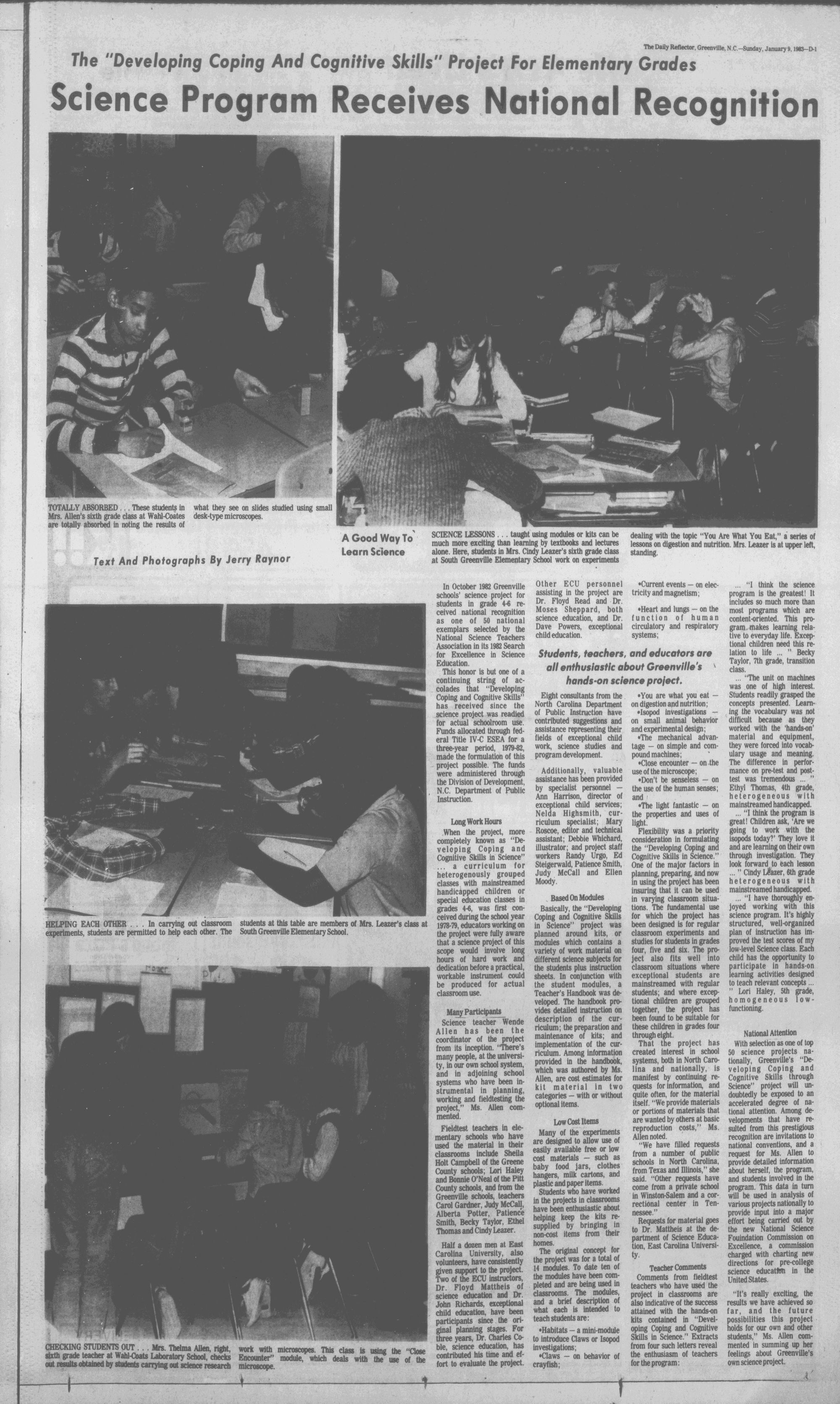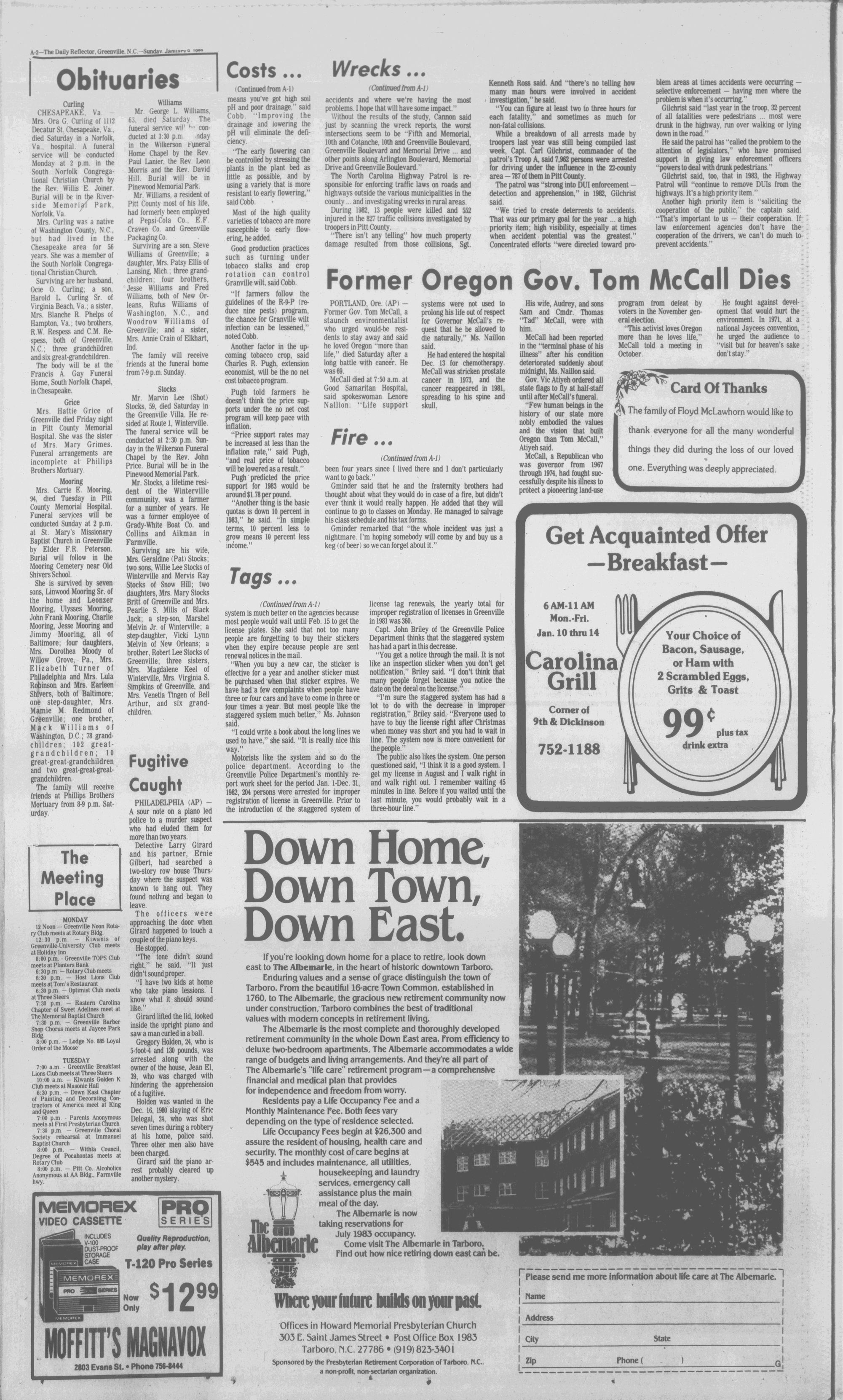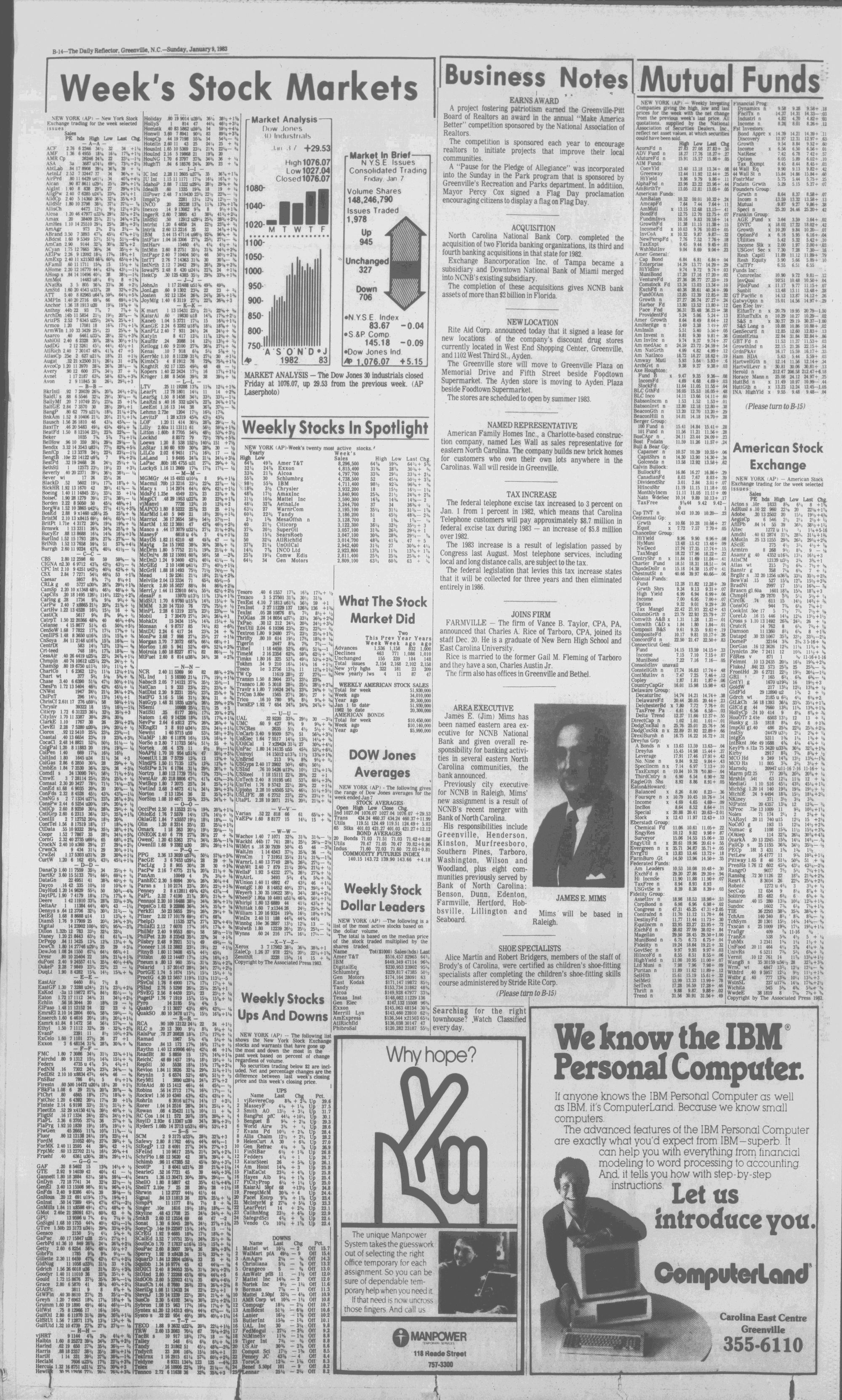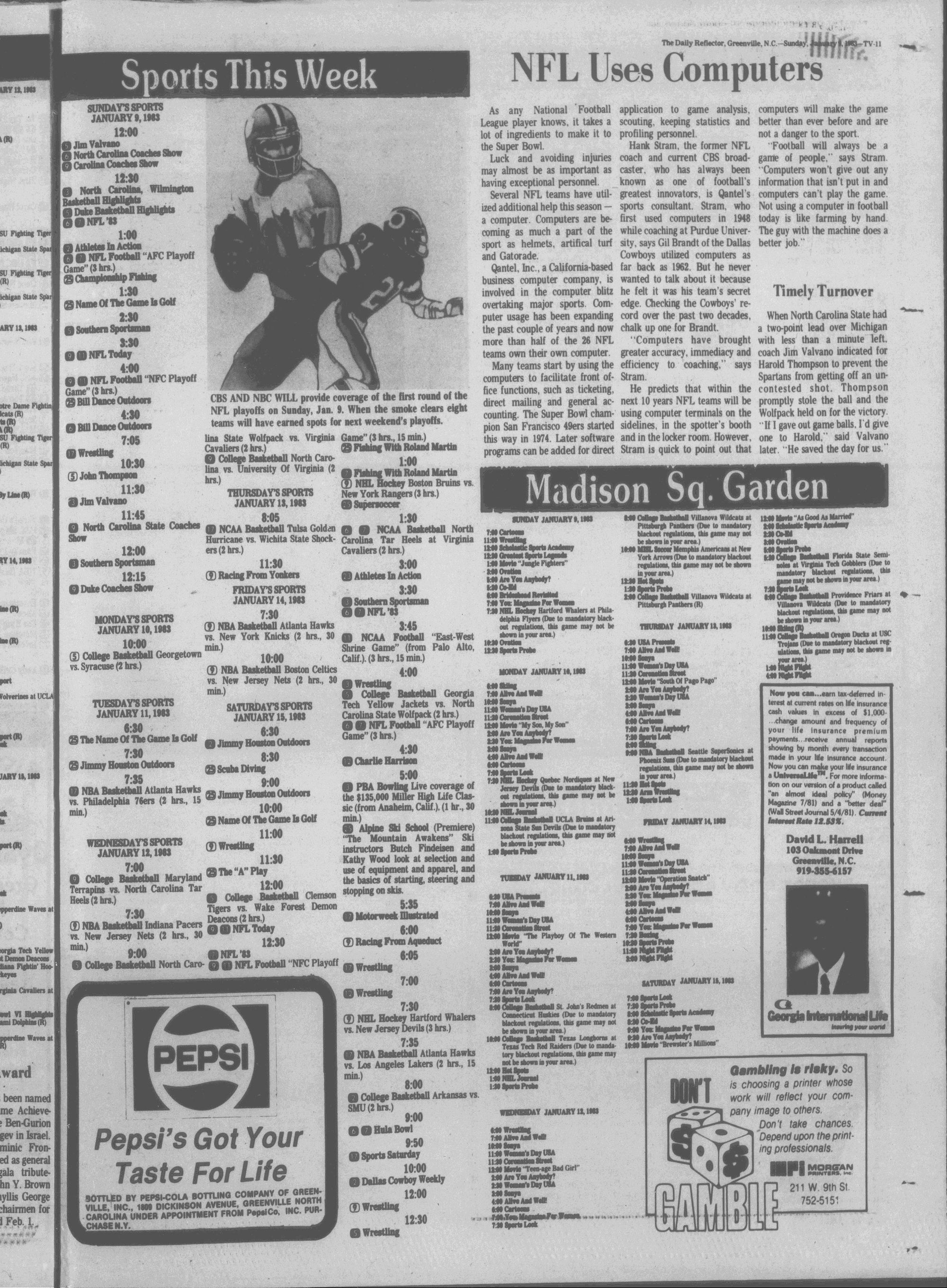 VOL. NO. 7 GREENVILLE, N.C. SUNDAY MORNING. JANUARY 9. 1982