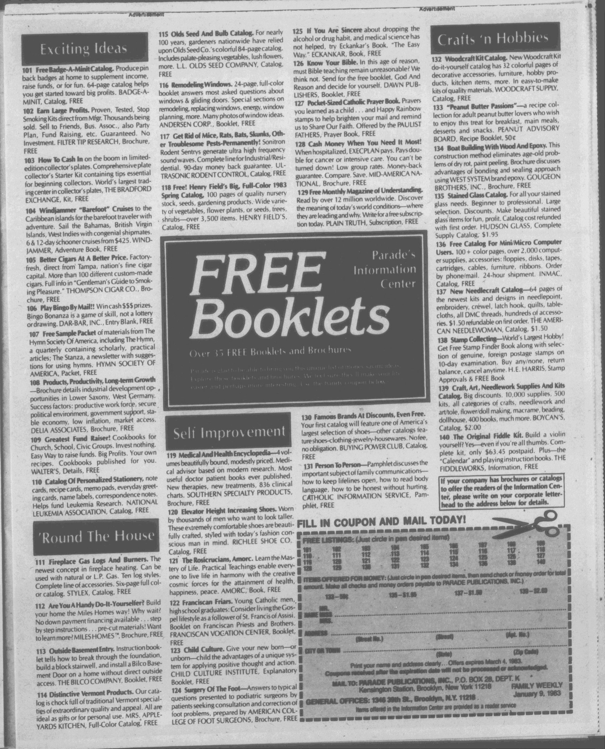 (MPTIOOKt-S2.00aaeb 139-19 00(11 and aOTHES 134-14 QUICK QUKTS 132-QUiLT ORiOIIULt 131-tWEATERt-SIZEt 39-99 129-CRAFTY FlOWCRt 129-PE1M. QUILTS 123-tnrCM N' PATCH QUATS 121-PllLOW SHOW-OFFS 129-CROCHET A WIROROIE 119-CROCHET WITH SQUARES llt-WFTY FIFTY QUILTS 115-RIPPIi CROCHET For cHalogt and booka. pieaM add SOaaactitorpoatagc. handling.