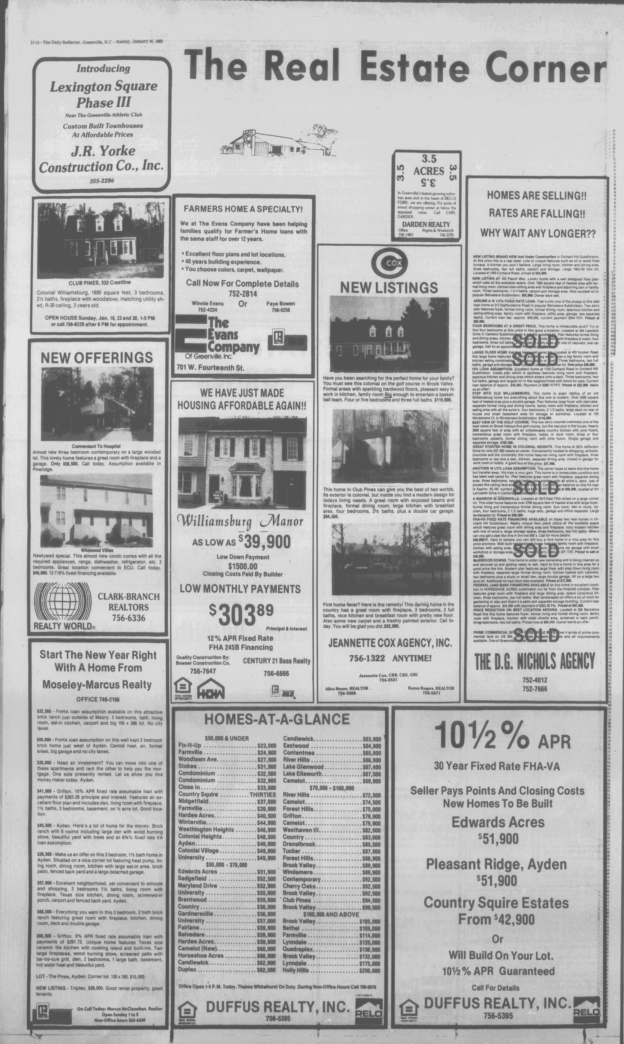 I dont know if the rates will come dowii. It was up around 18 percent at one time but we never made any loans at those rates. That makes a normal house not very reasonable anymore. Larkin Little at Home Federal Savings & Loan said, Now is a good time to buy." That firm had money available at 12% on Thursday, a fixed rate for owner-occupied homes, he said.