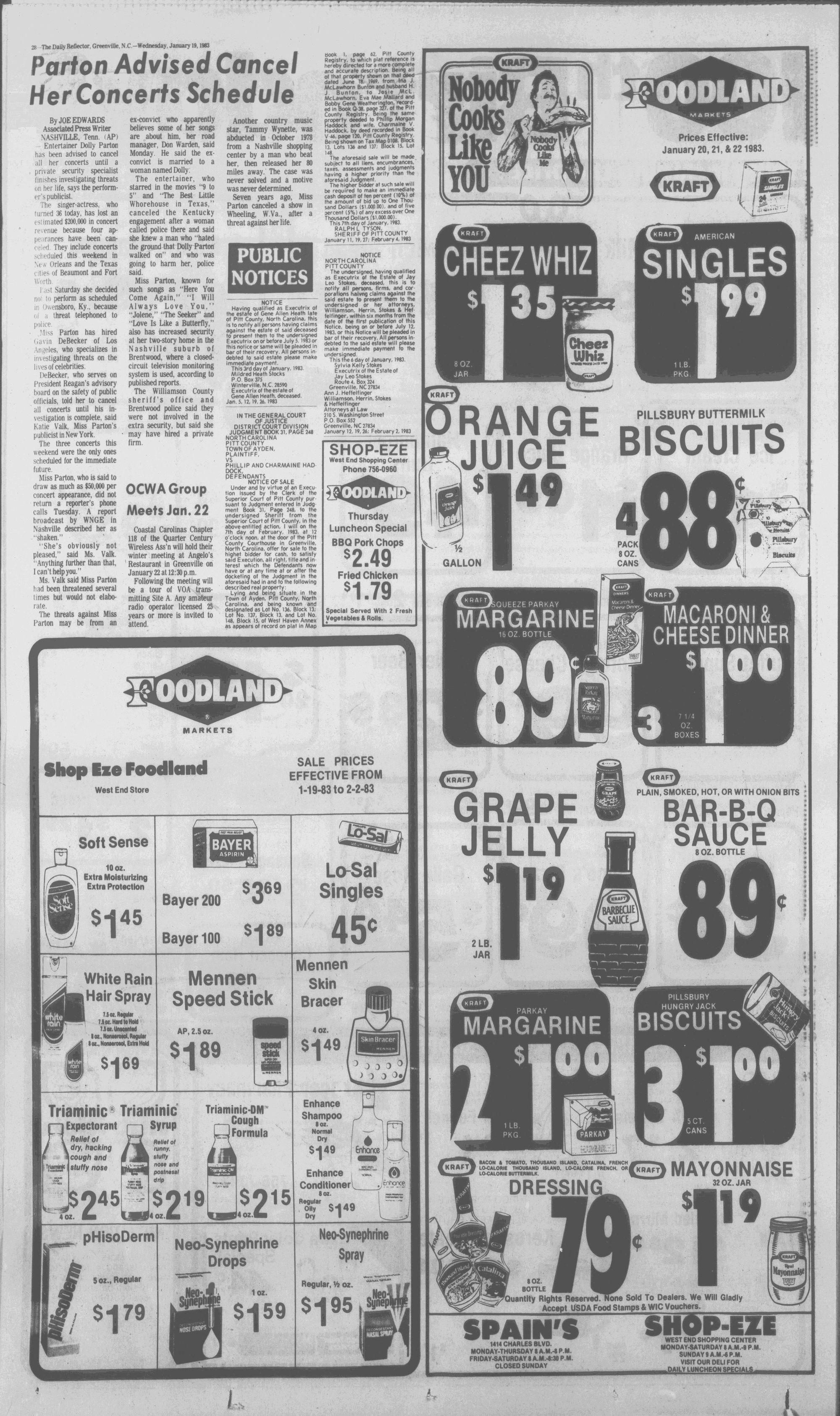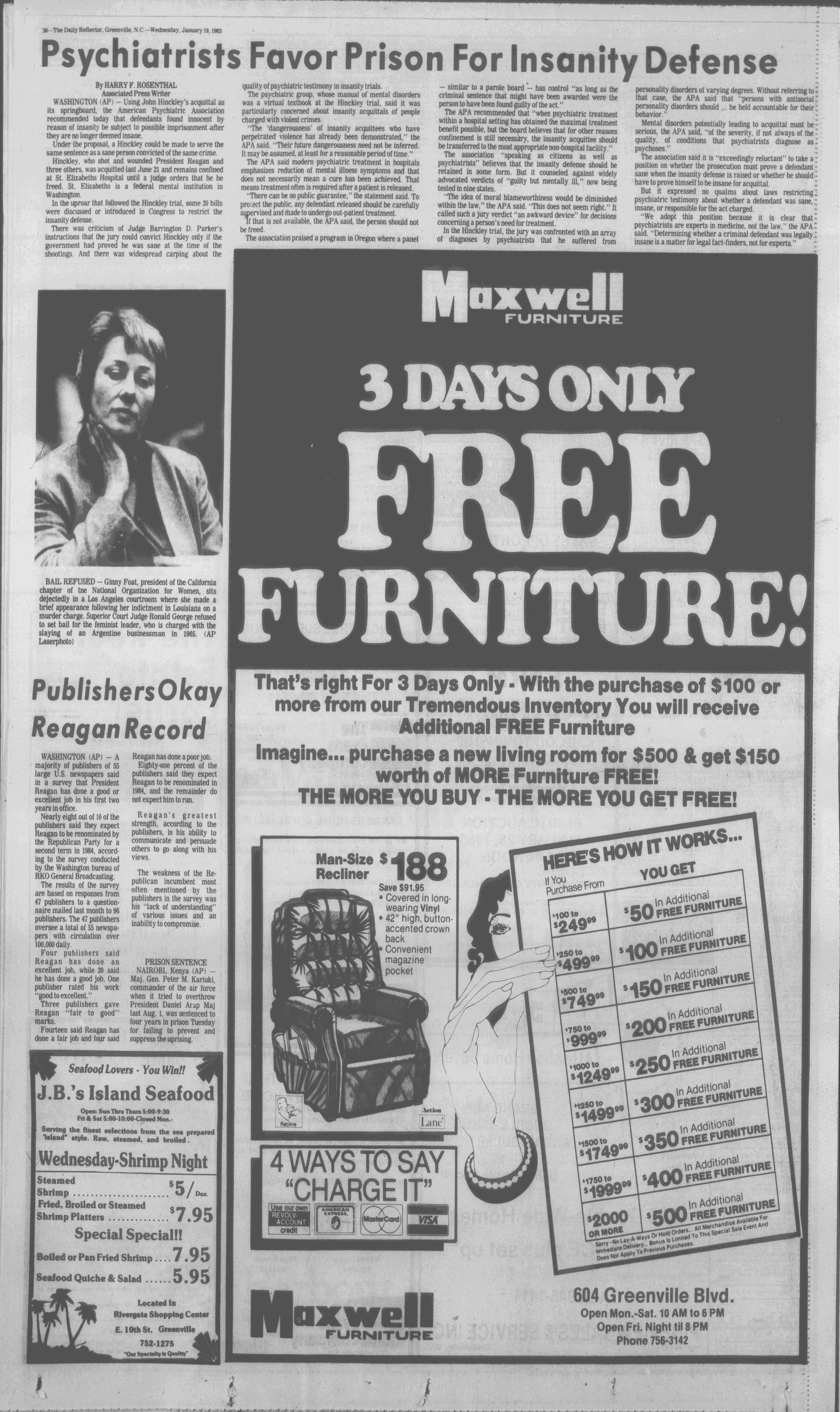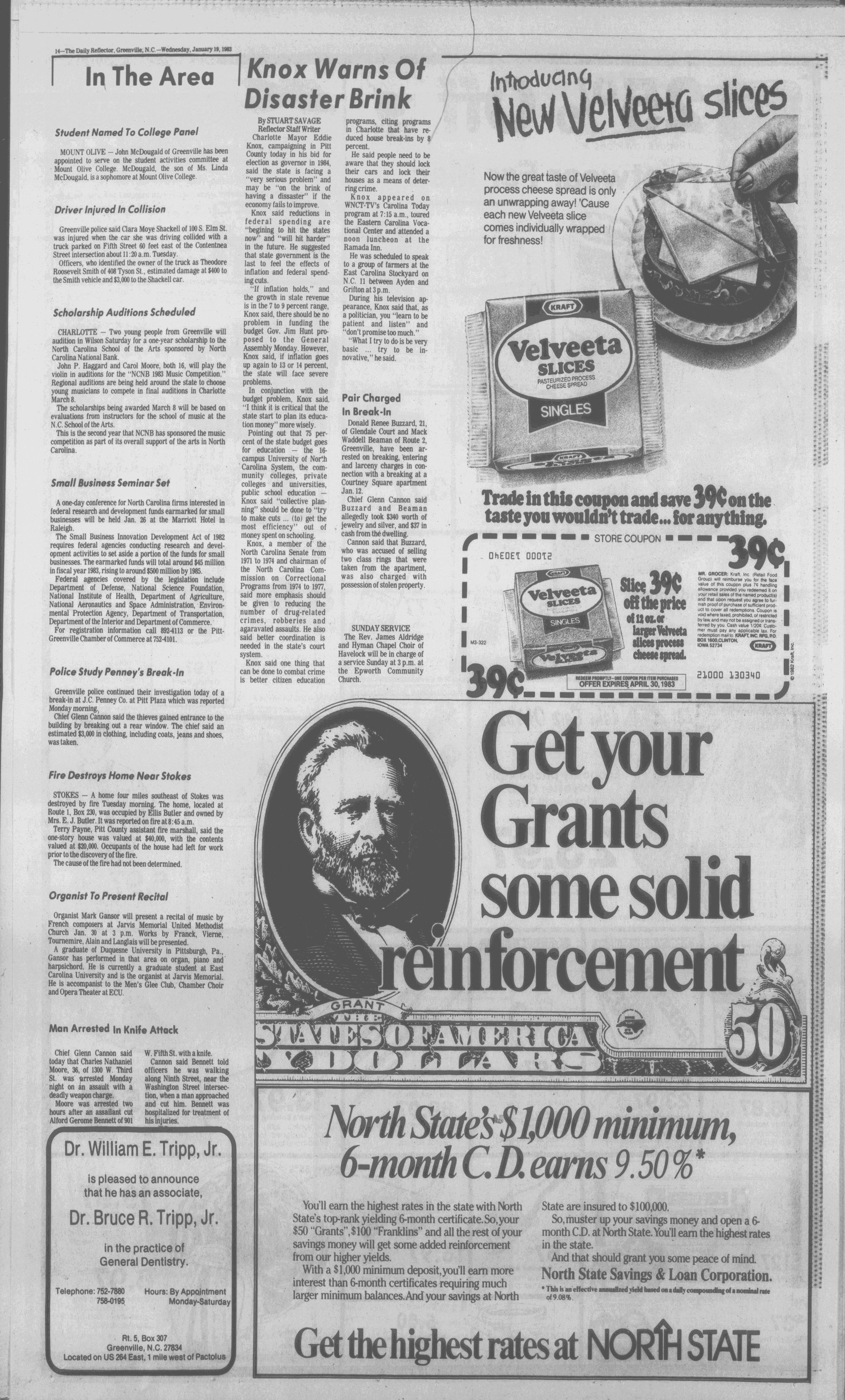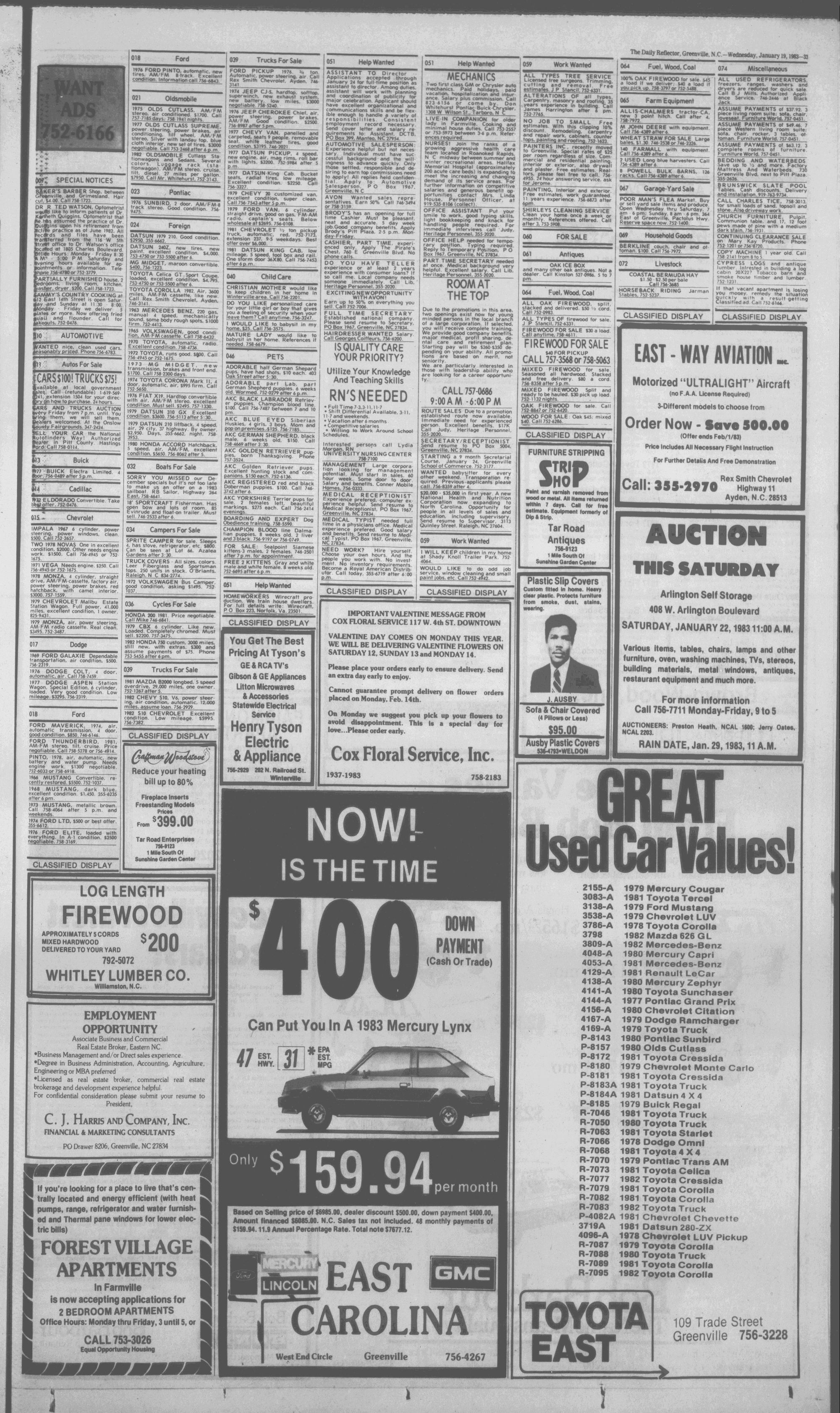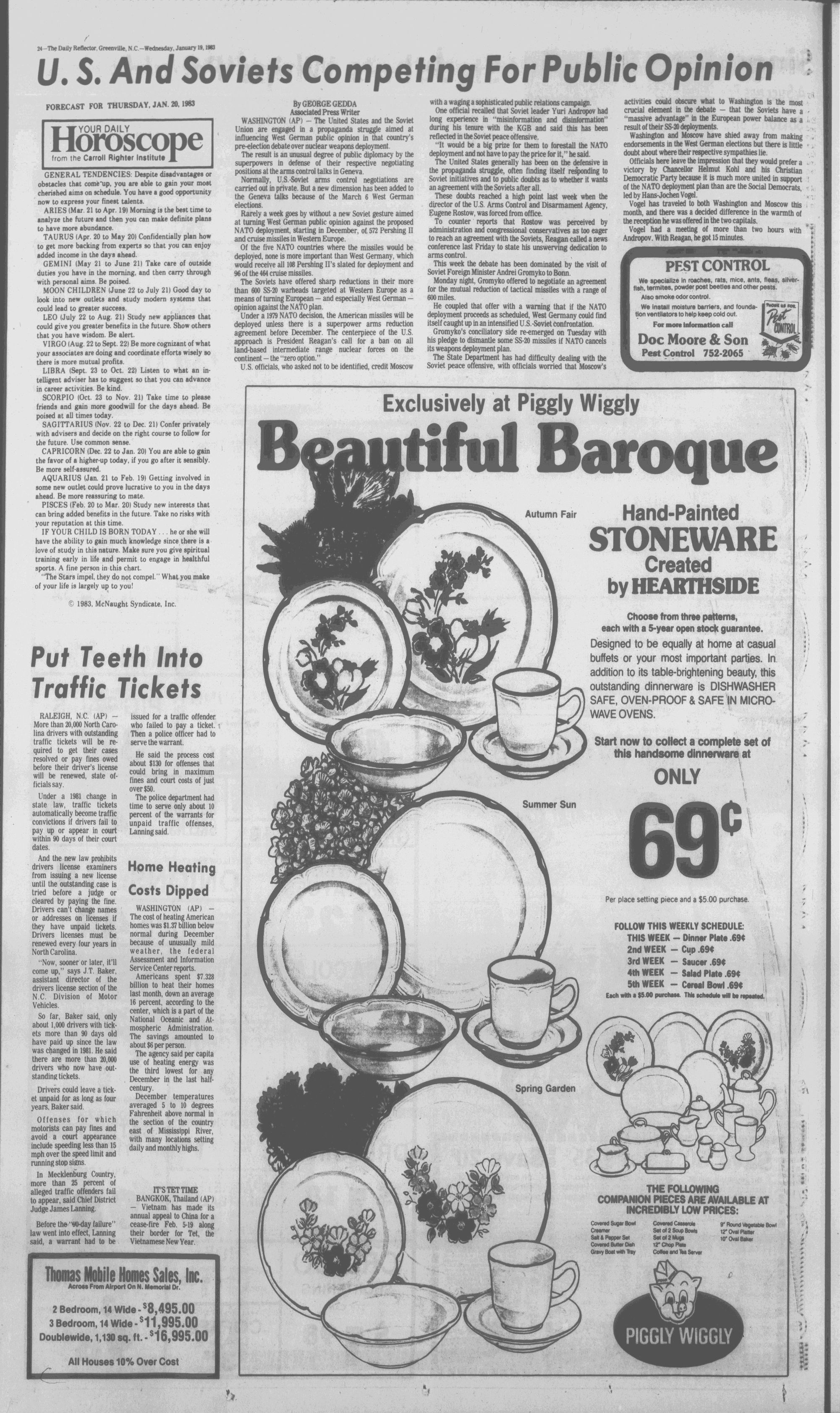Page 14-Area item Page24-U.S.-Soviet Page 2S-Insanity pleaTRUTH IN PREFERENCE TO FiaiON GREENVILLE, N.C. WEDNESDAY AFTERNOON, JANUARY 19,1983