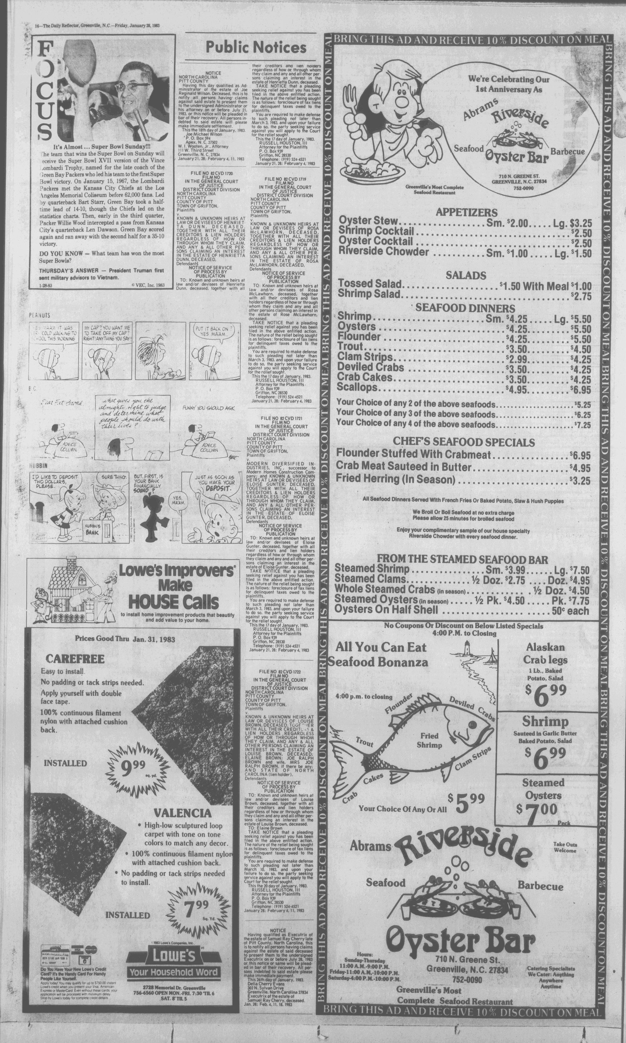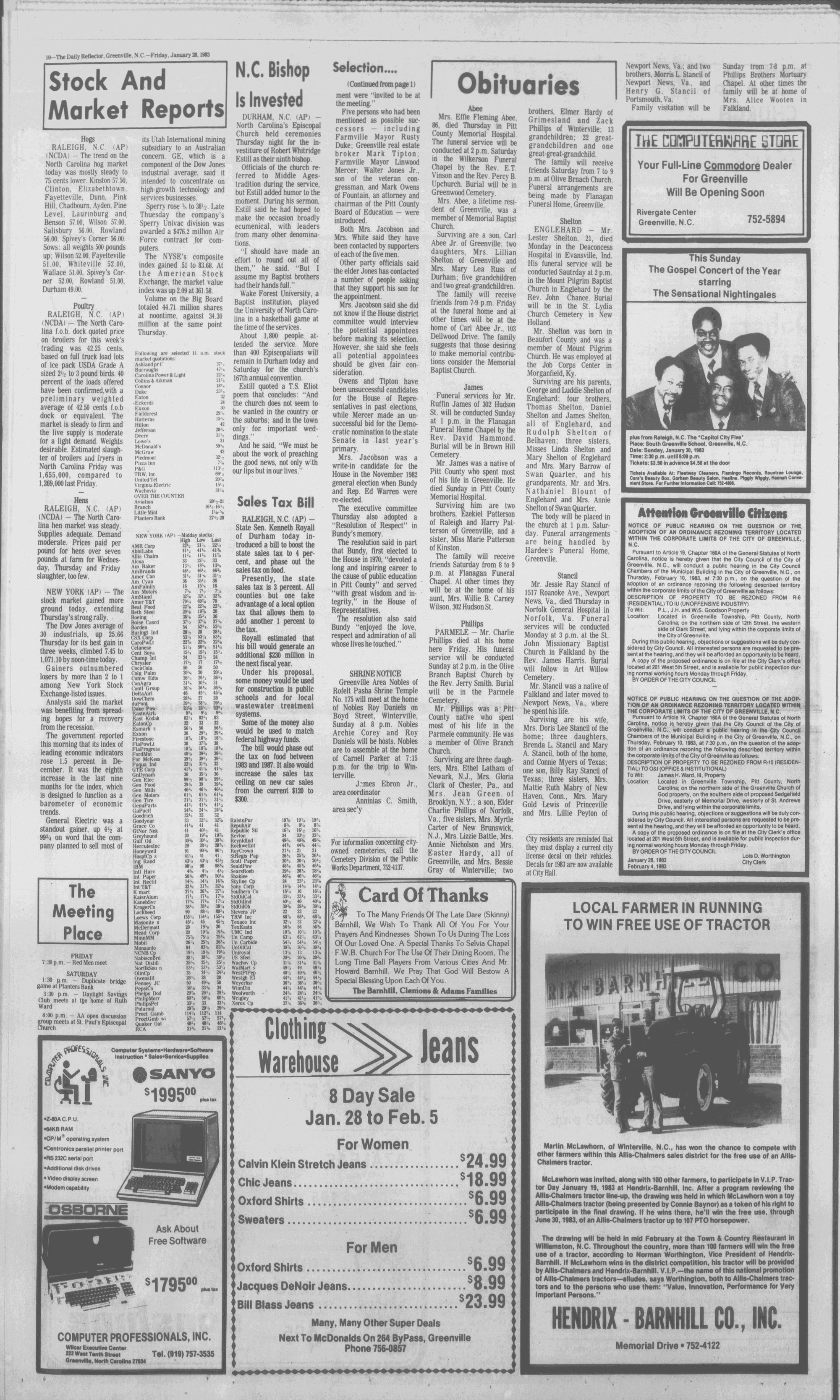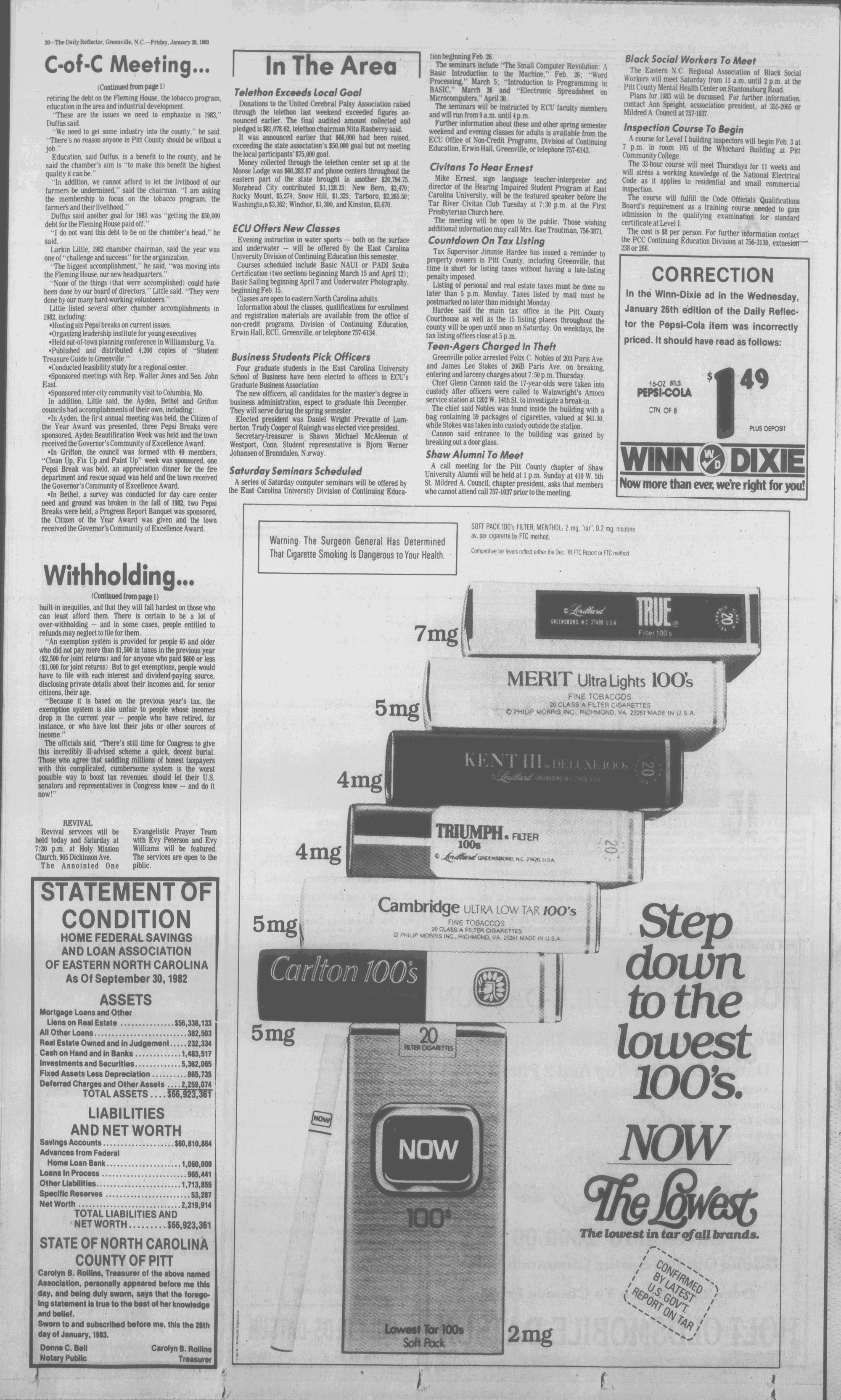 A call meeting for the Pitt County chapter of Shaw University Alumiii will be held at 1 p.m. Sunday at 410 W. 5th St. Mildred A. Council, chapter president, asks that members who cannot attend call 757-1037 prior to the meeting.CORRECTIONIn the Winn-Dixie ad in the Wednesday, January 26th edition of the Daily Reflector the Pepsi-Cola item was incorrectly priced. It should have read as follows: