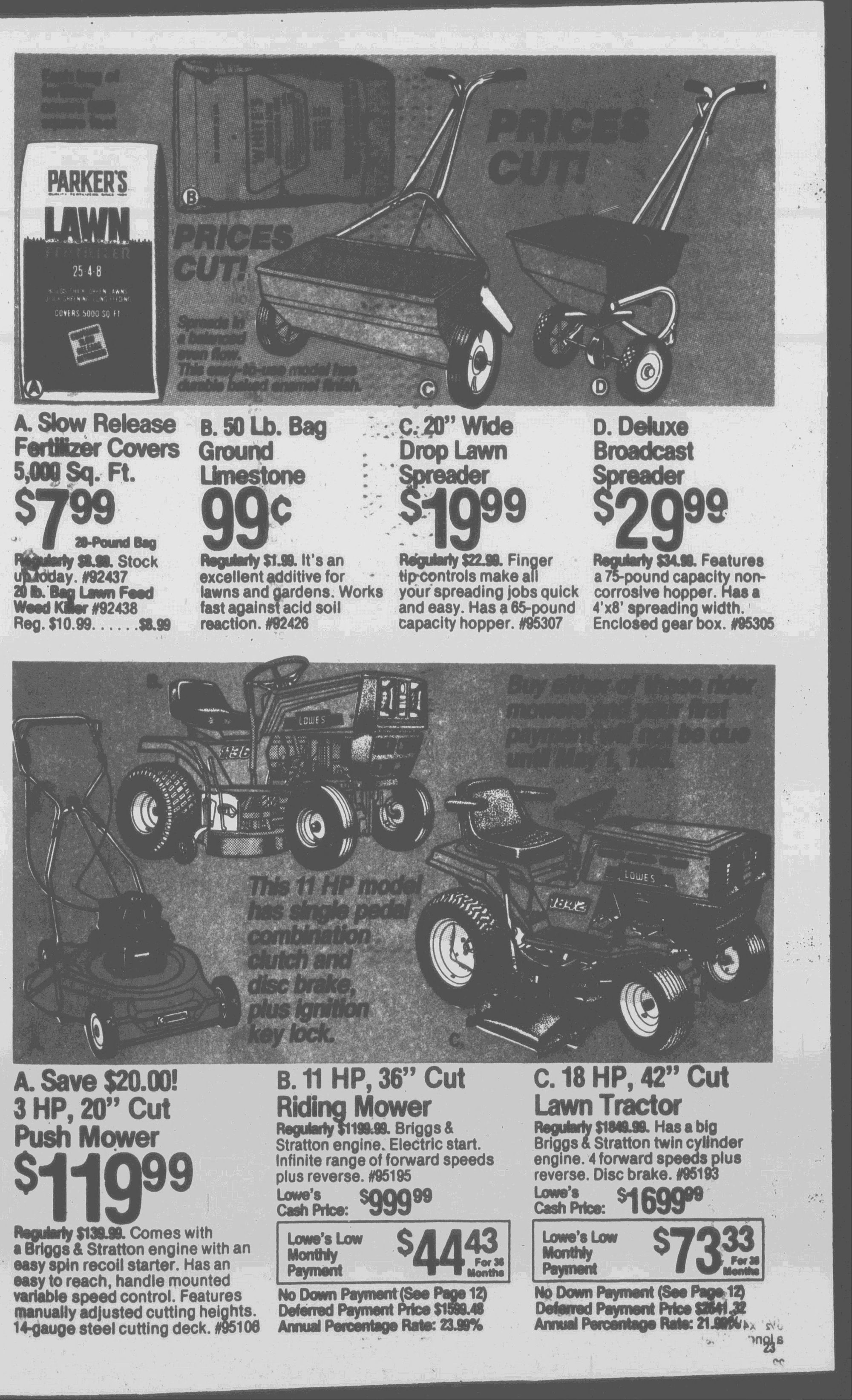 lliBulMly$tJB.It8an excellent dditive for lewne and gardens. Works fast against acid soil reaction. #92426p.:l Wide D. Deluxe Drop Lawn Broadcast Spreadar