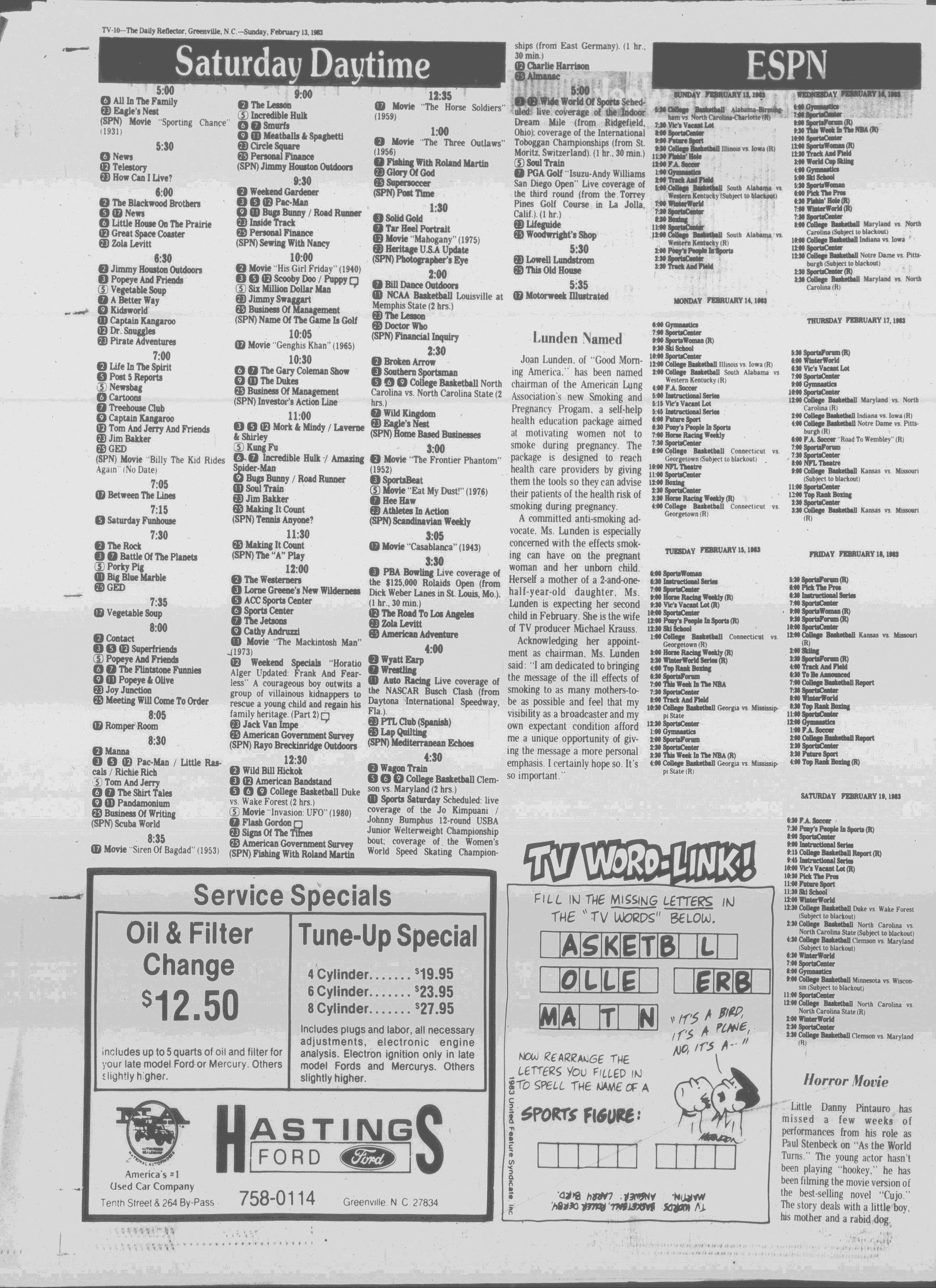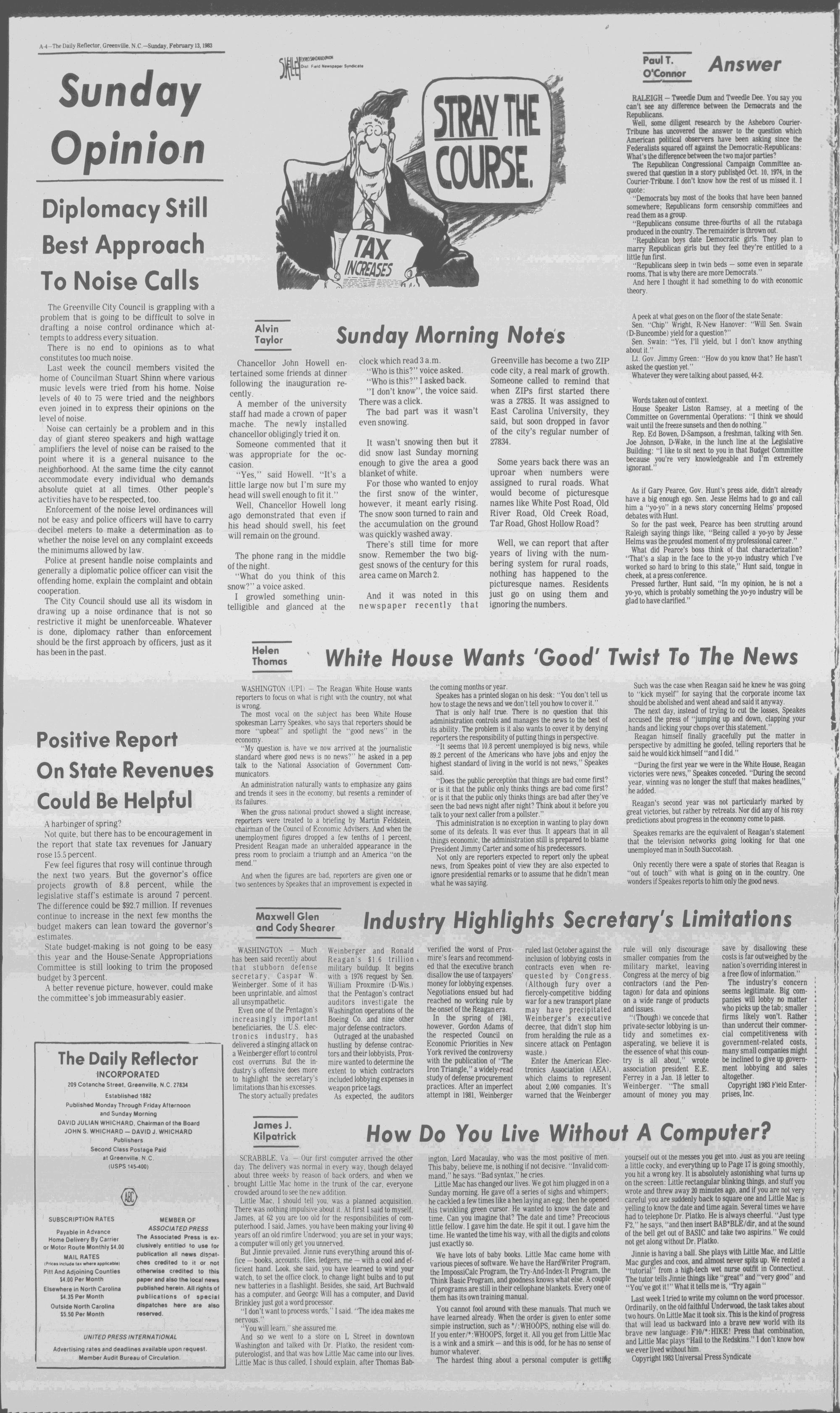 GREENVILLE, N.C. SUNDAY MORNING, FEBRUARY 13, 1983