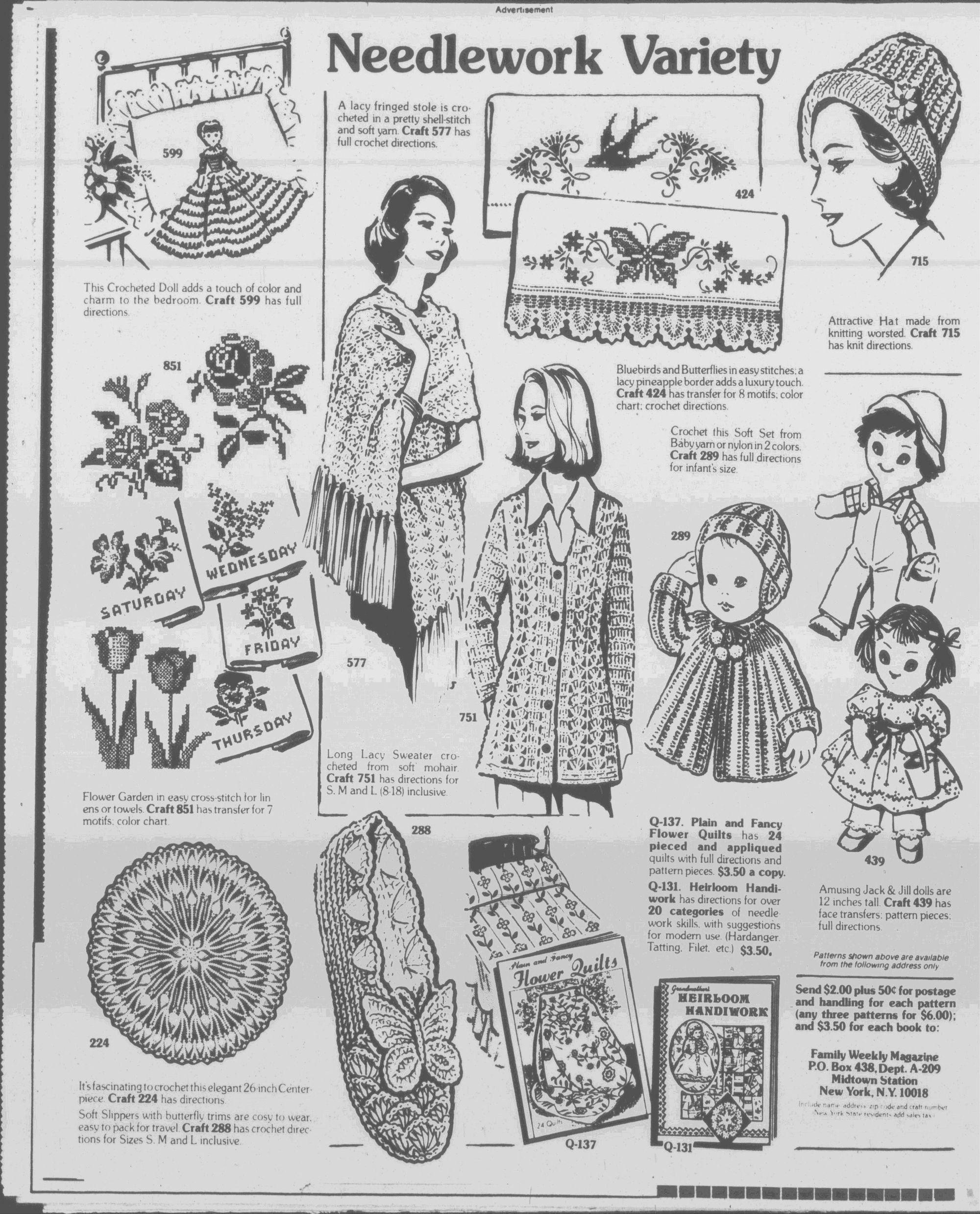 Send now for book 129-QUICK n' EAS TRANSFERS' Embrotder, paint or ma chine-sew over 150 deugns-from SO state flower patches to fruits, faces, toys, tots. Includes transfers, easy directions. $2.00