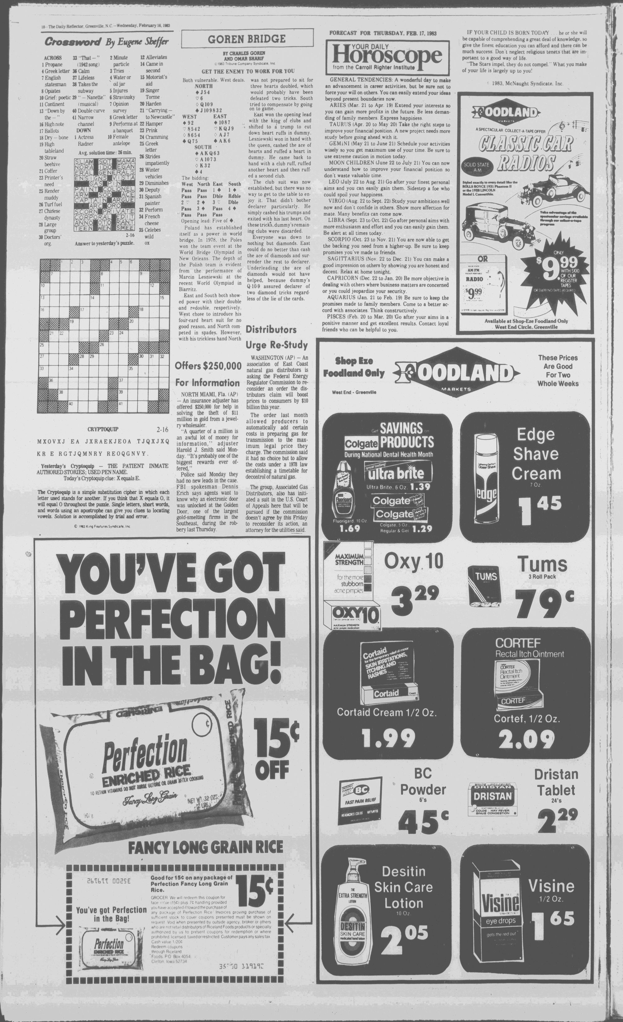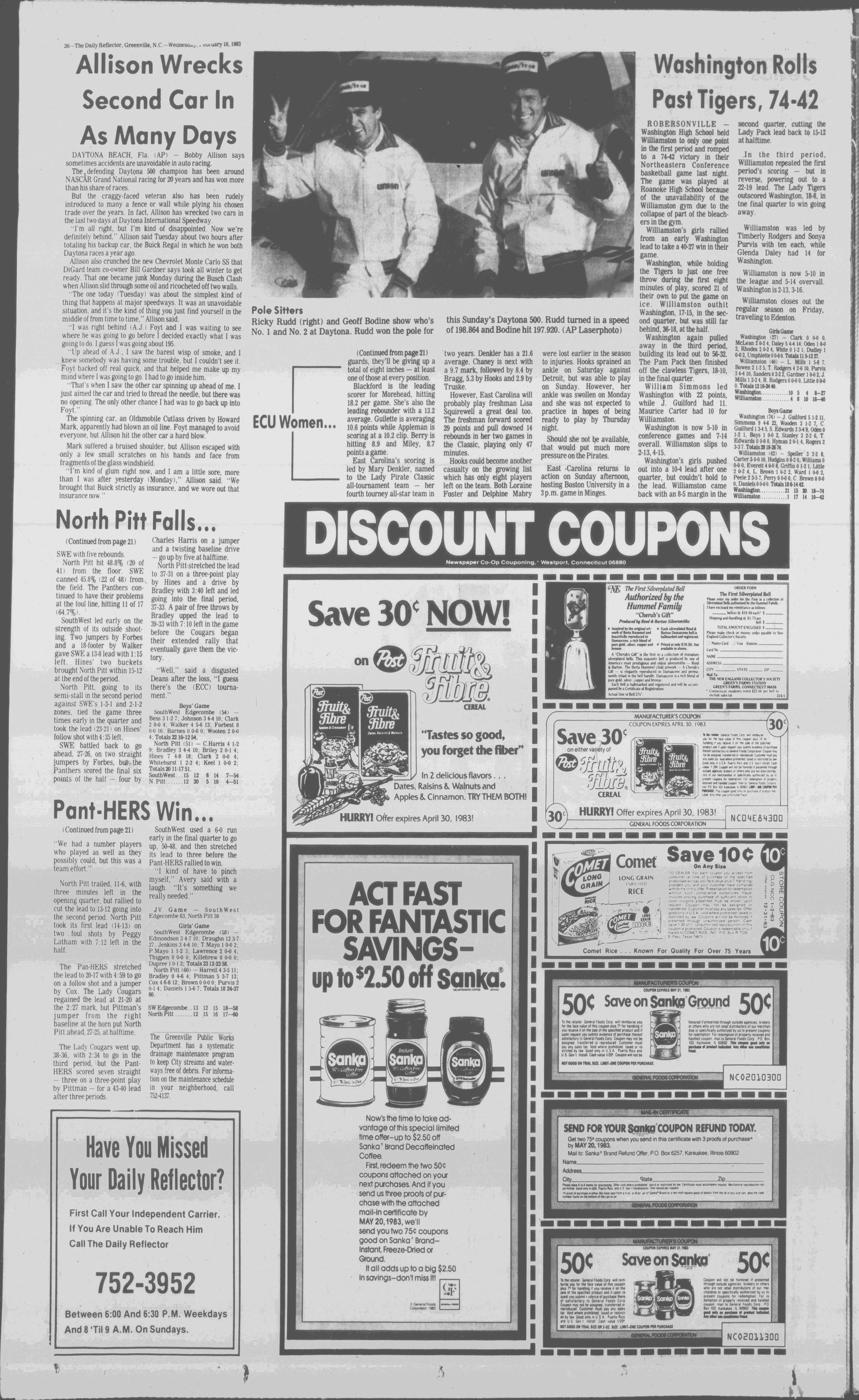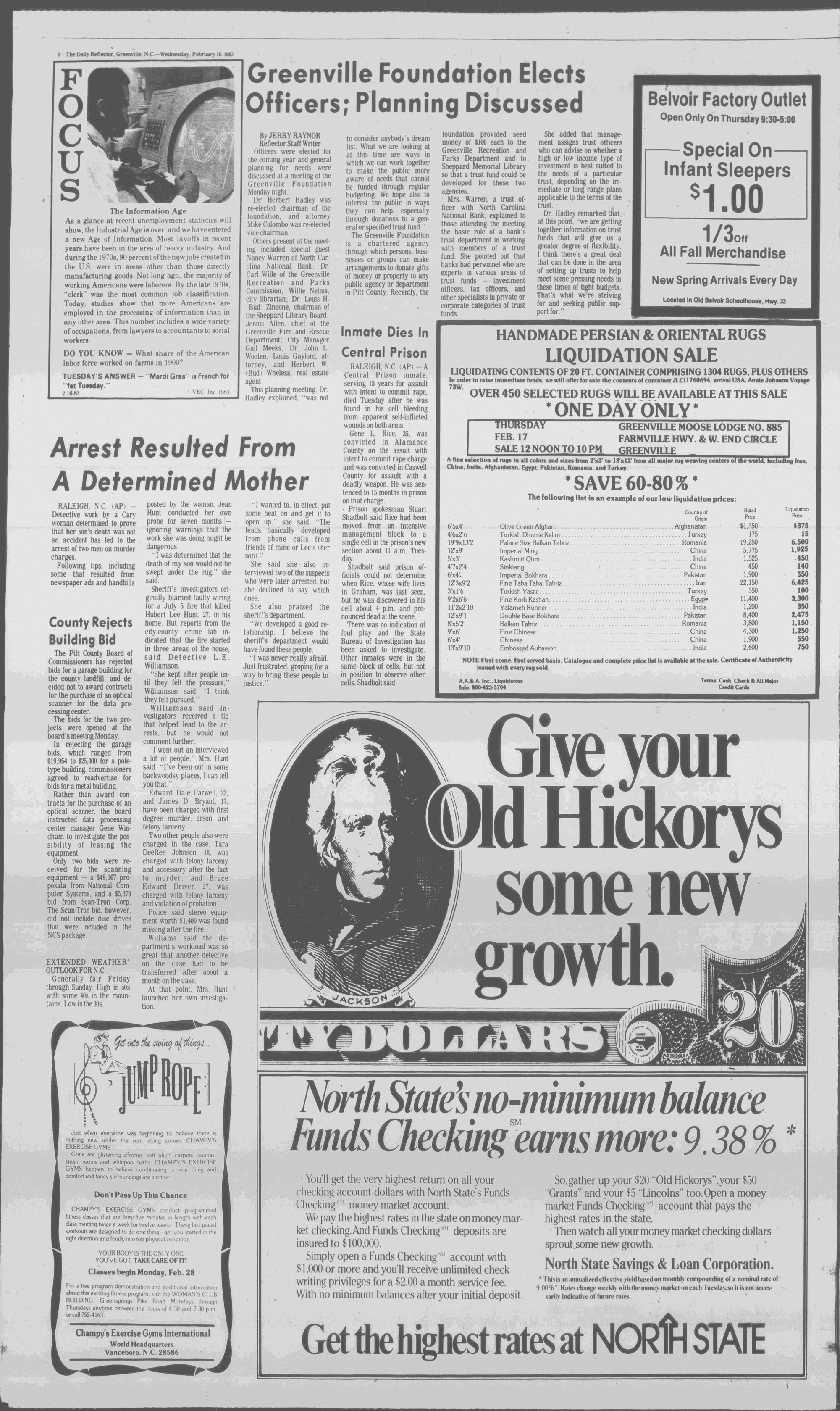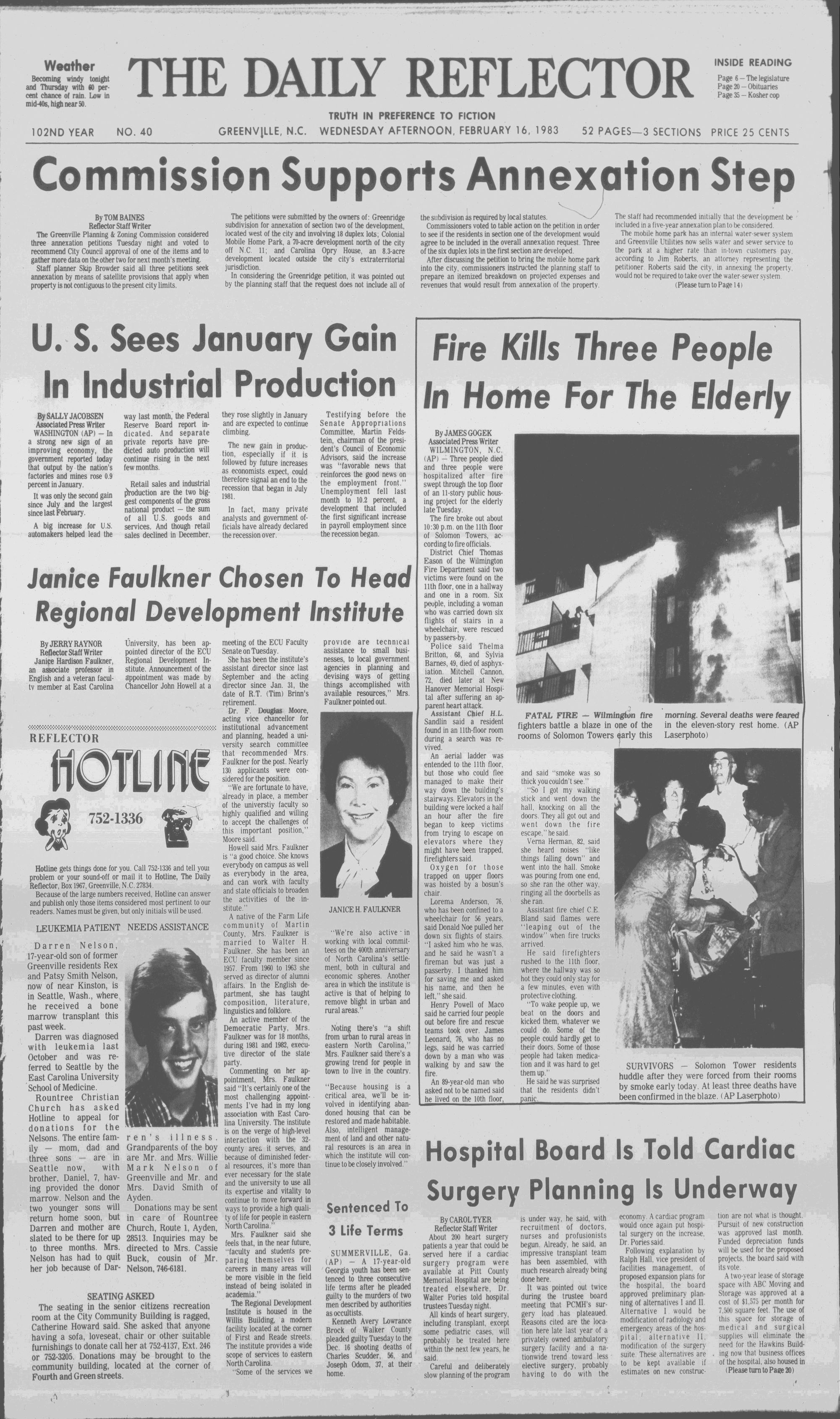The newspaper was established in 1882, and was originally named the Eastern Reflector. It was founded by Julian Whichard and David Jordan with equipment they purchased from The Greenville Express. On December 10, 1894, it adopted the name The Reflector and began publishing every day. Cox Newspapers acquired The Daily Reflector in 1996. Creator: Daily Reflector (Greenville, N.C.)