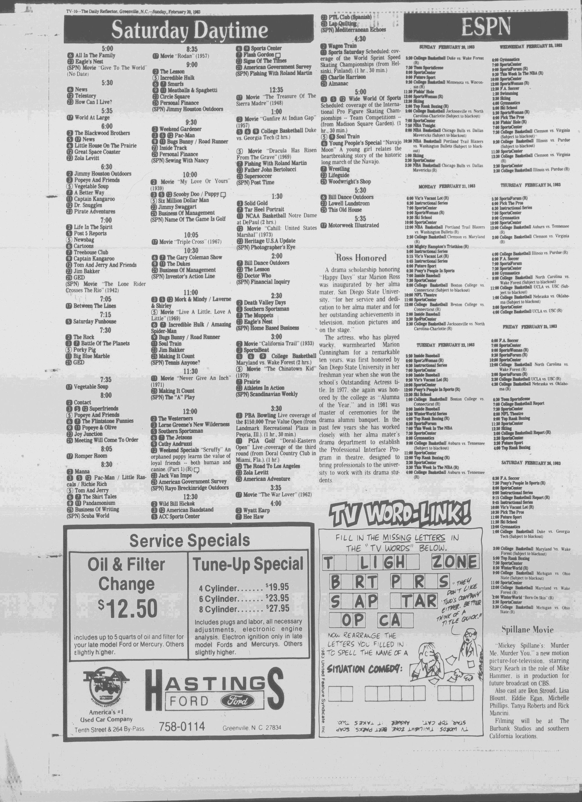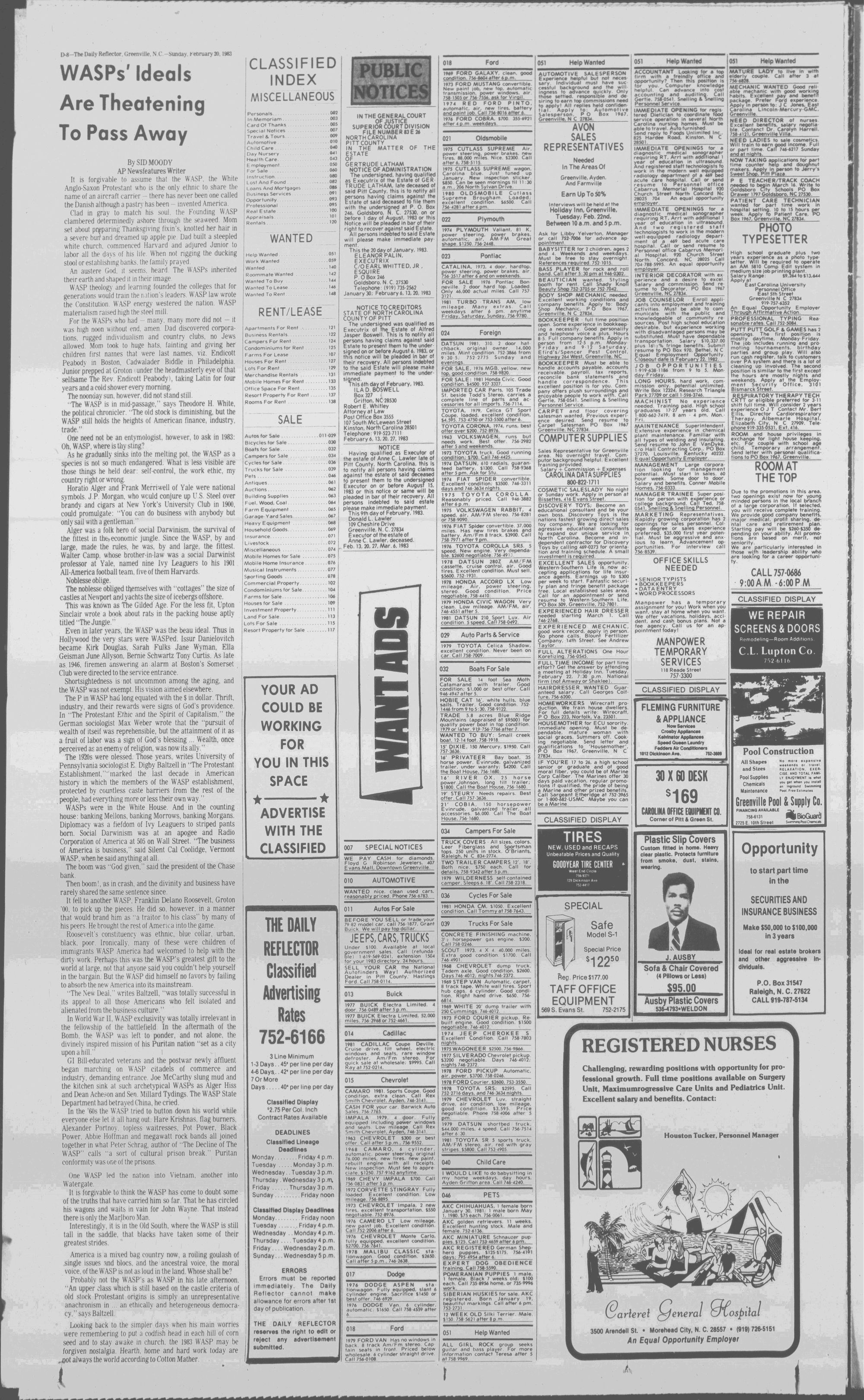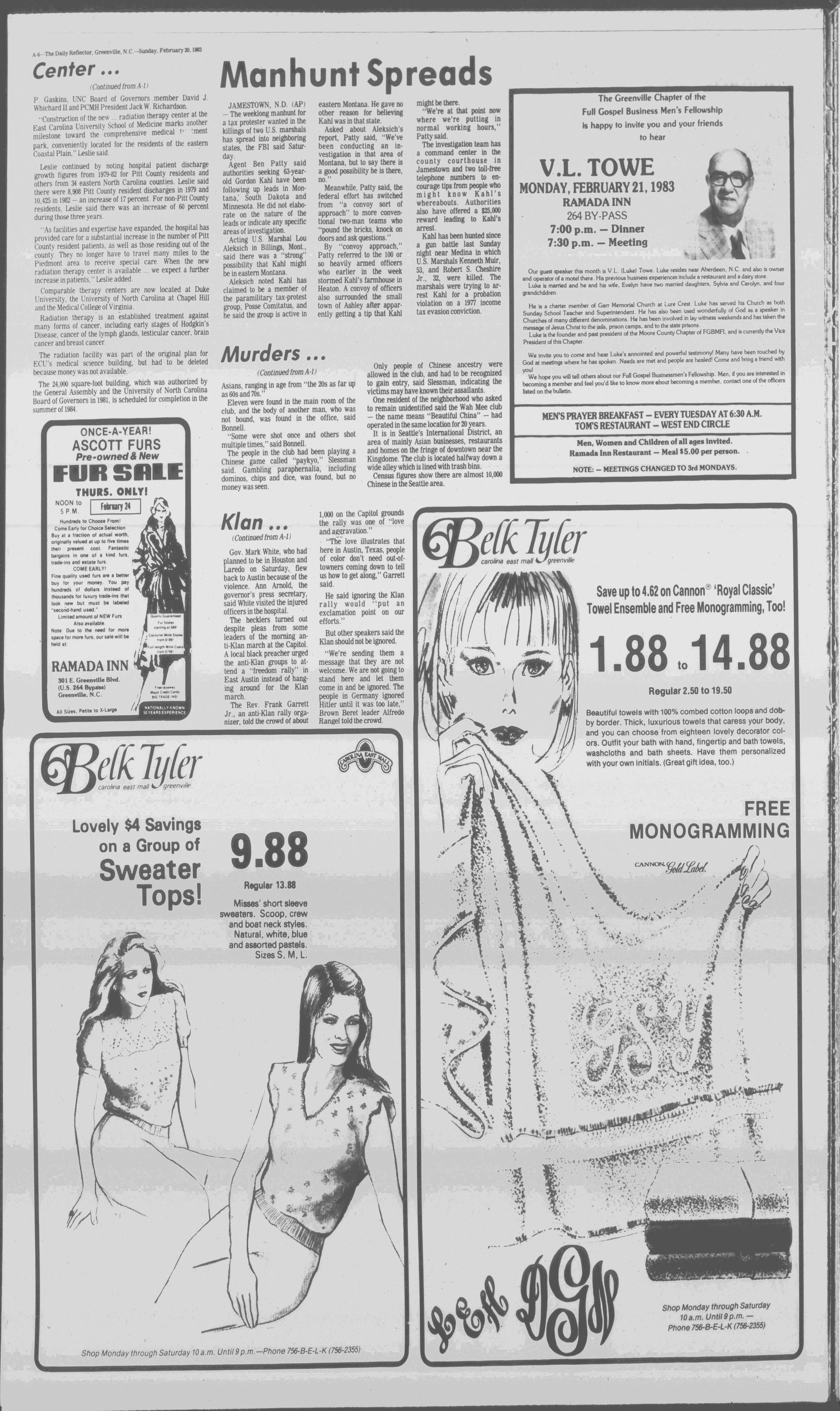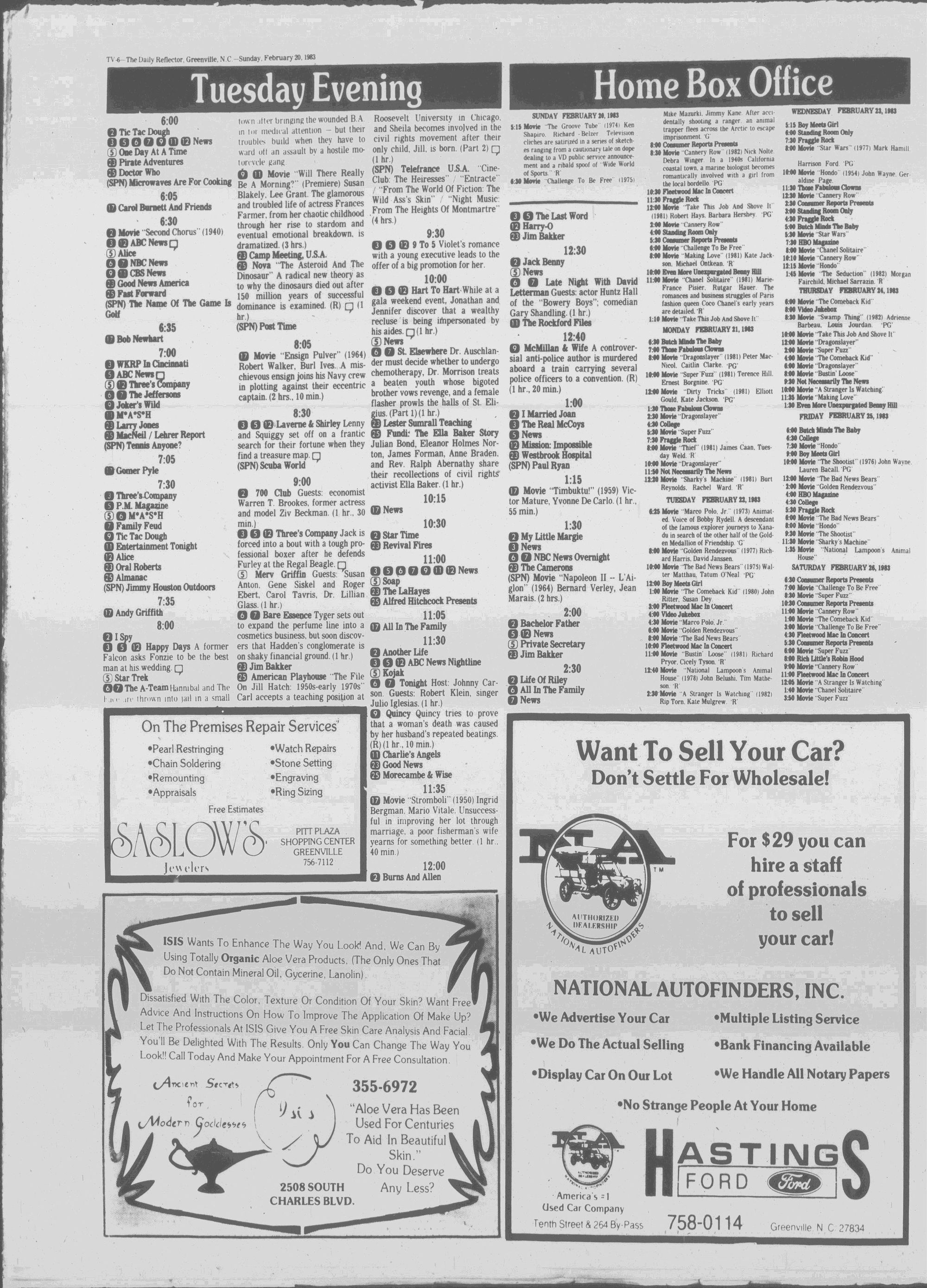 GREENVILLE, N.C. SUNDAY MORNING, FEBRUARY 20, 1983