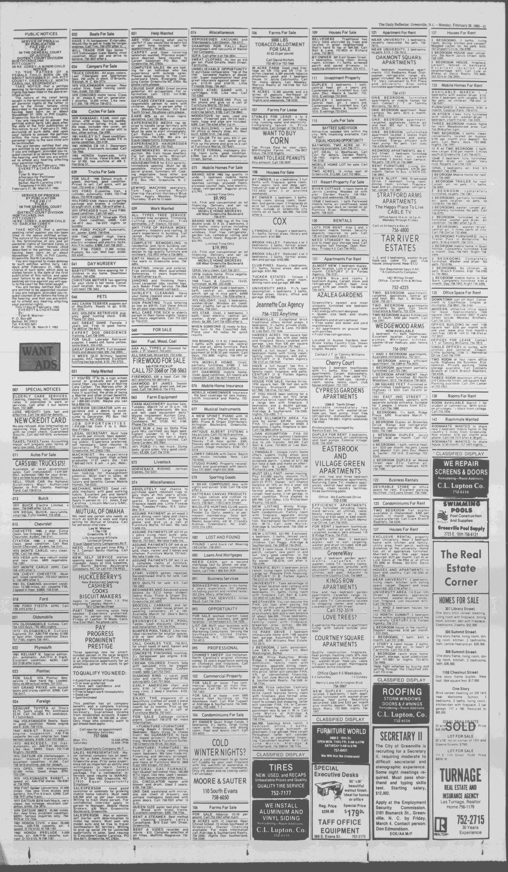 The City of Greenville is recruiting for a Secretary II, requiring moderate to difficult secretarial and stenographic experience. Some night meetings required. Must pass shorthand and typing skills test. Starting salary, $12,002.