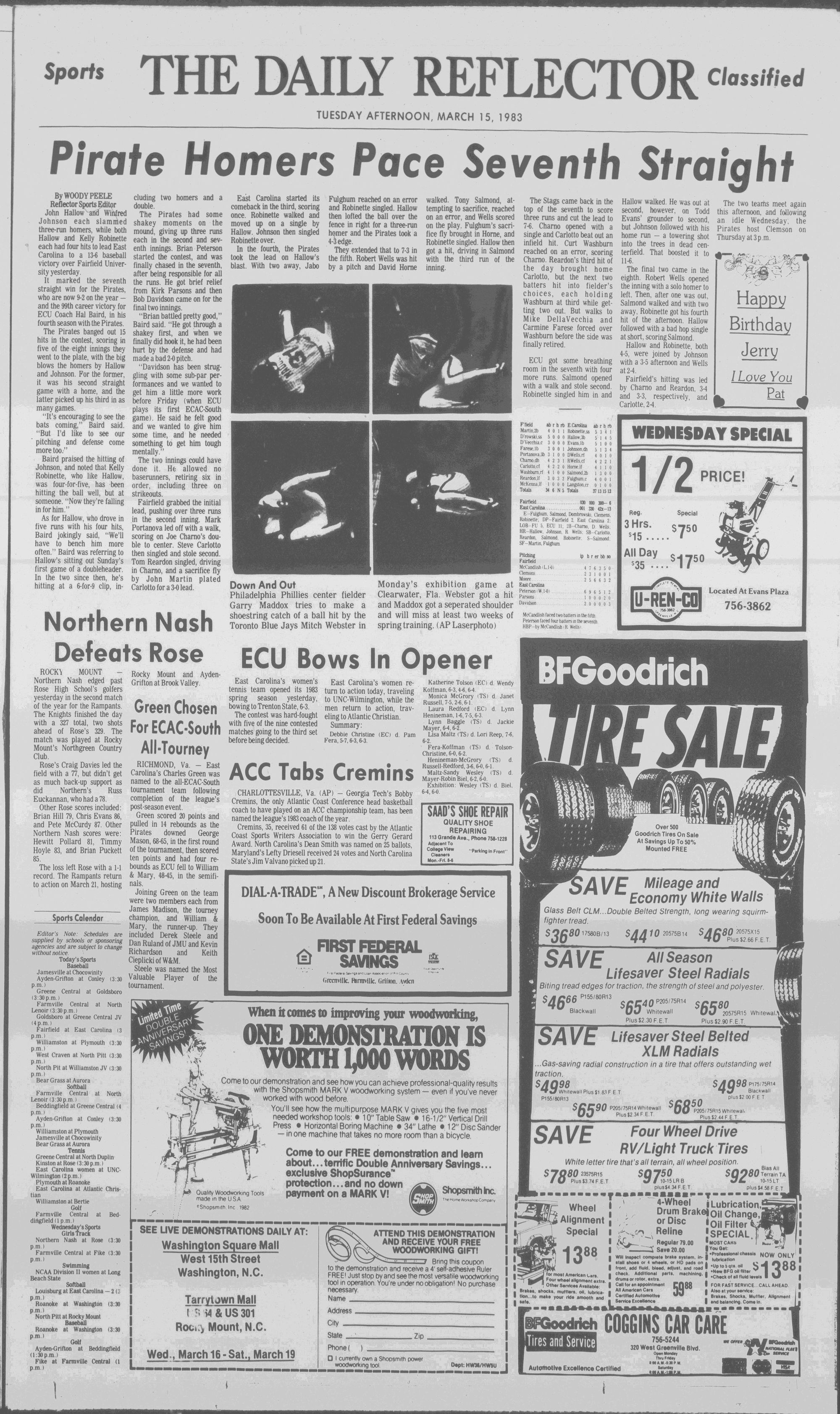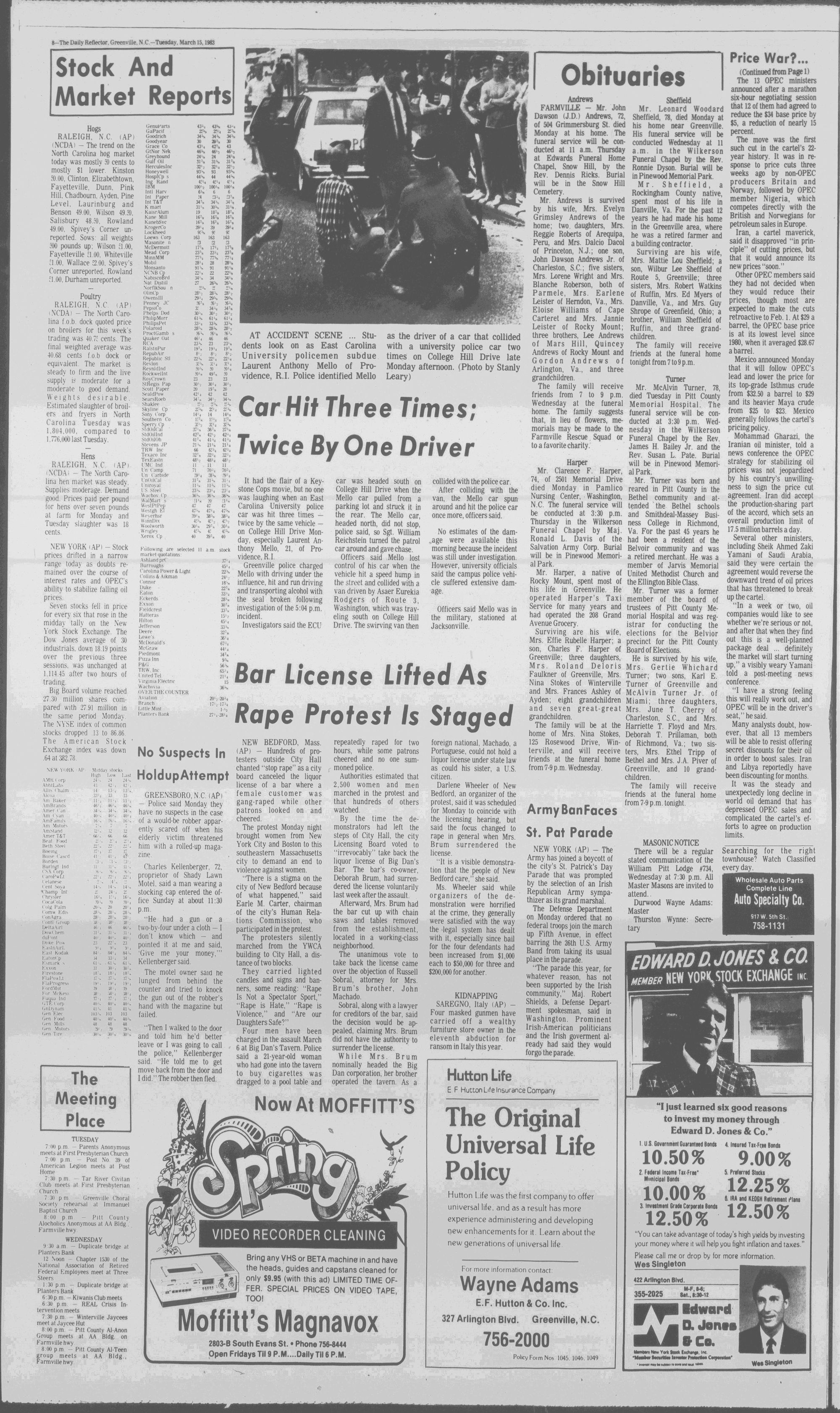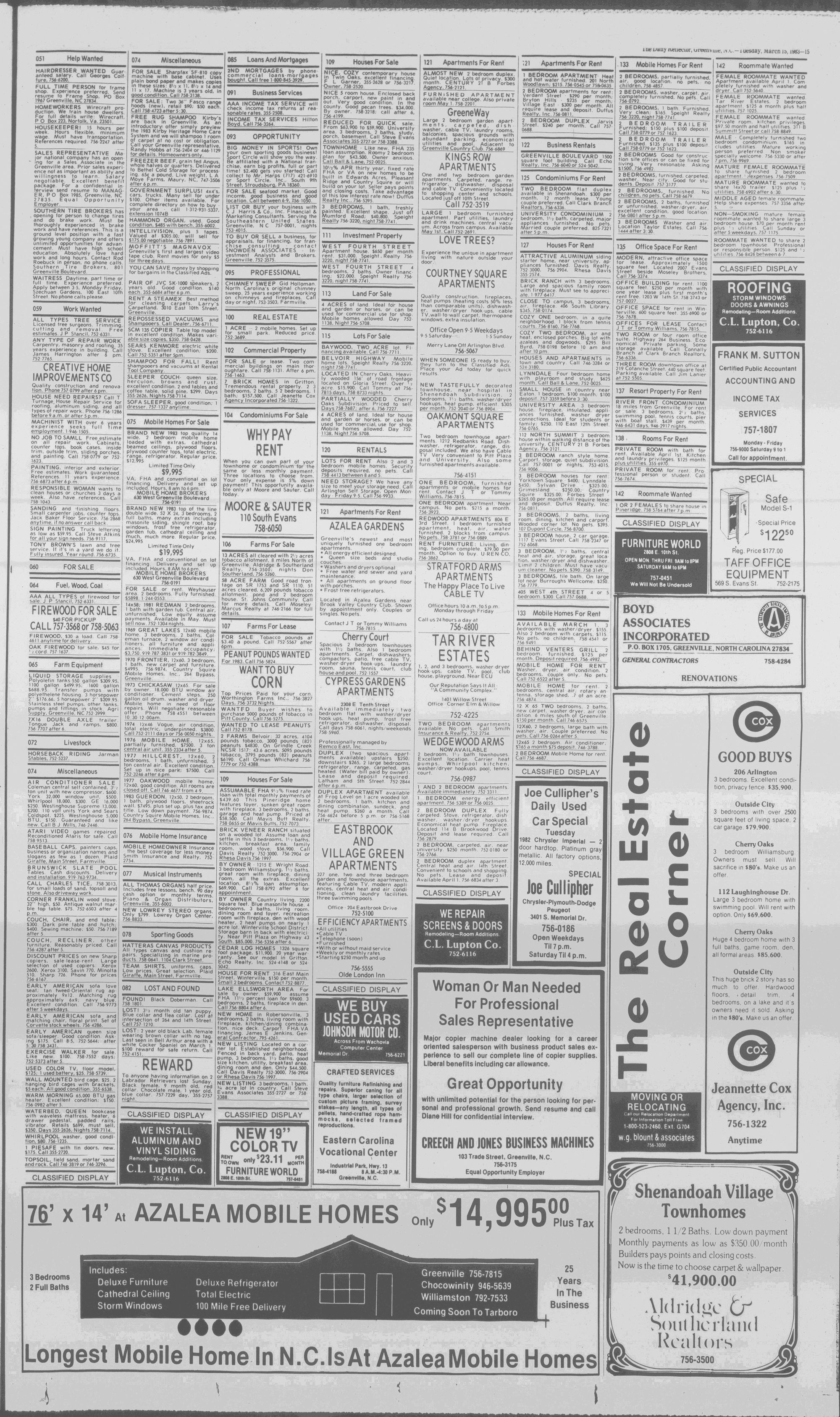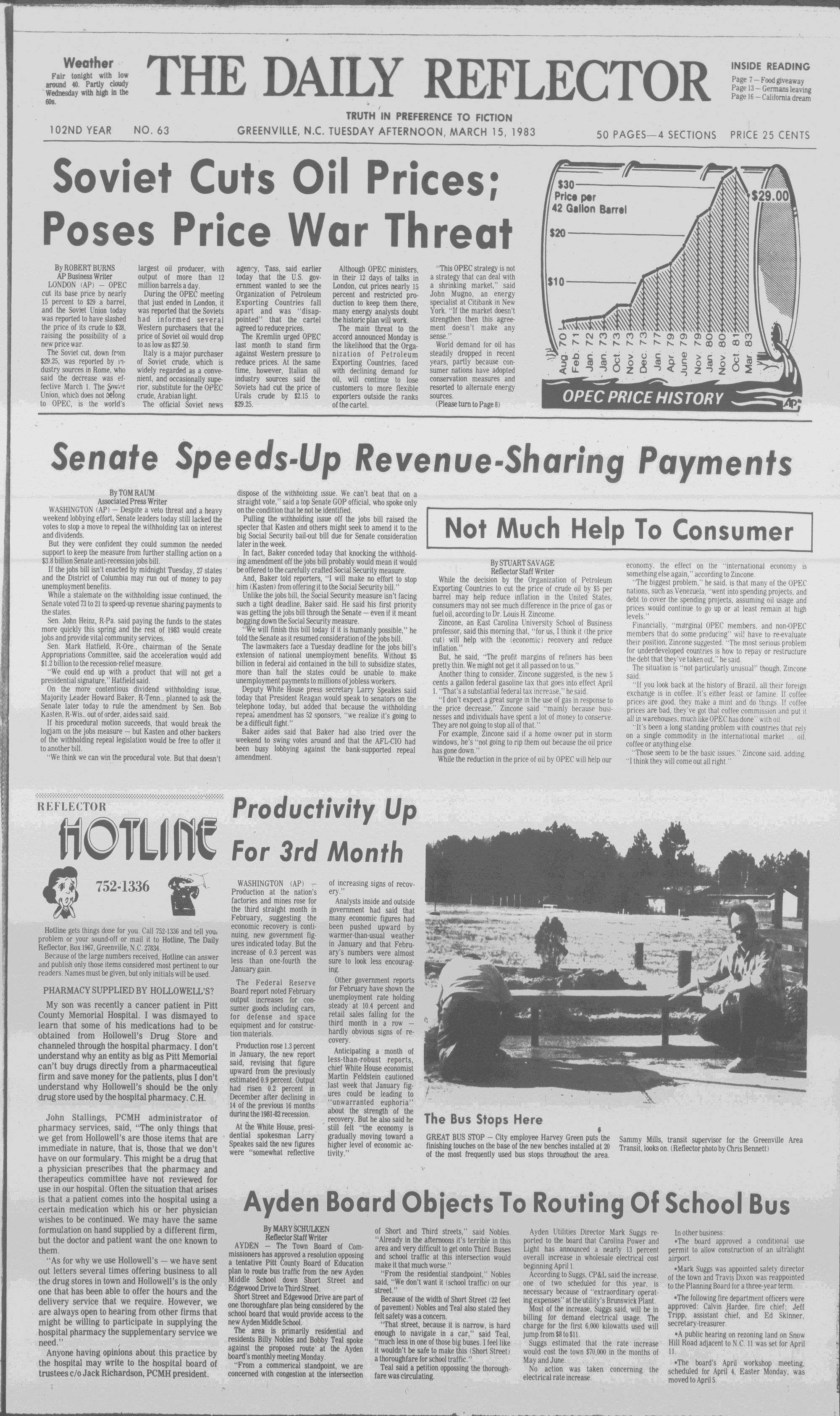 102NDYEAR NO. 63TRUTH IN PREFERENCE TO FICTION GREENVILLE, N.C. TUESDAY AFTERNOON, MARCH 15, 1983