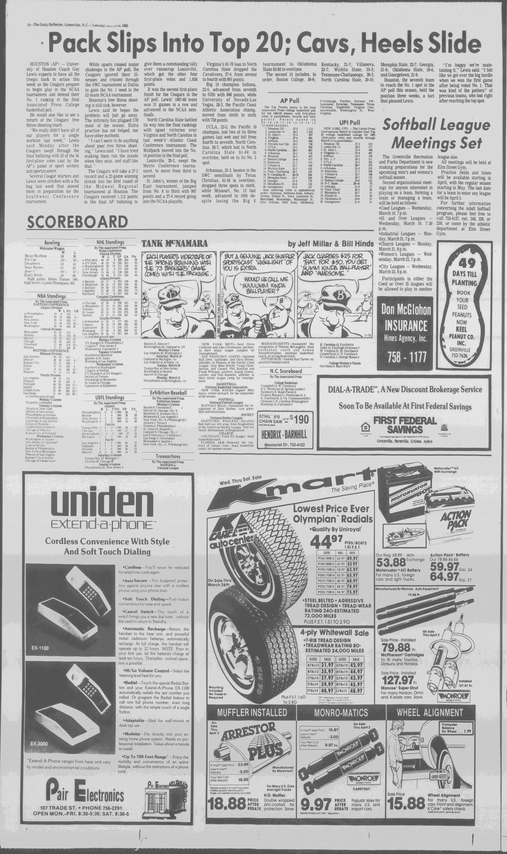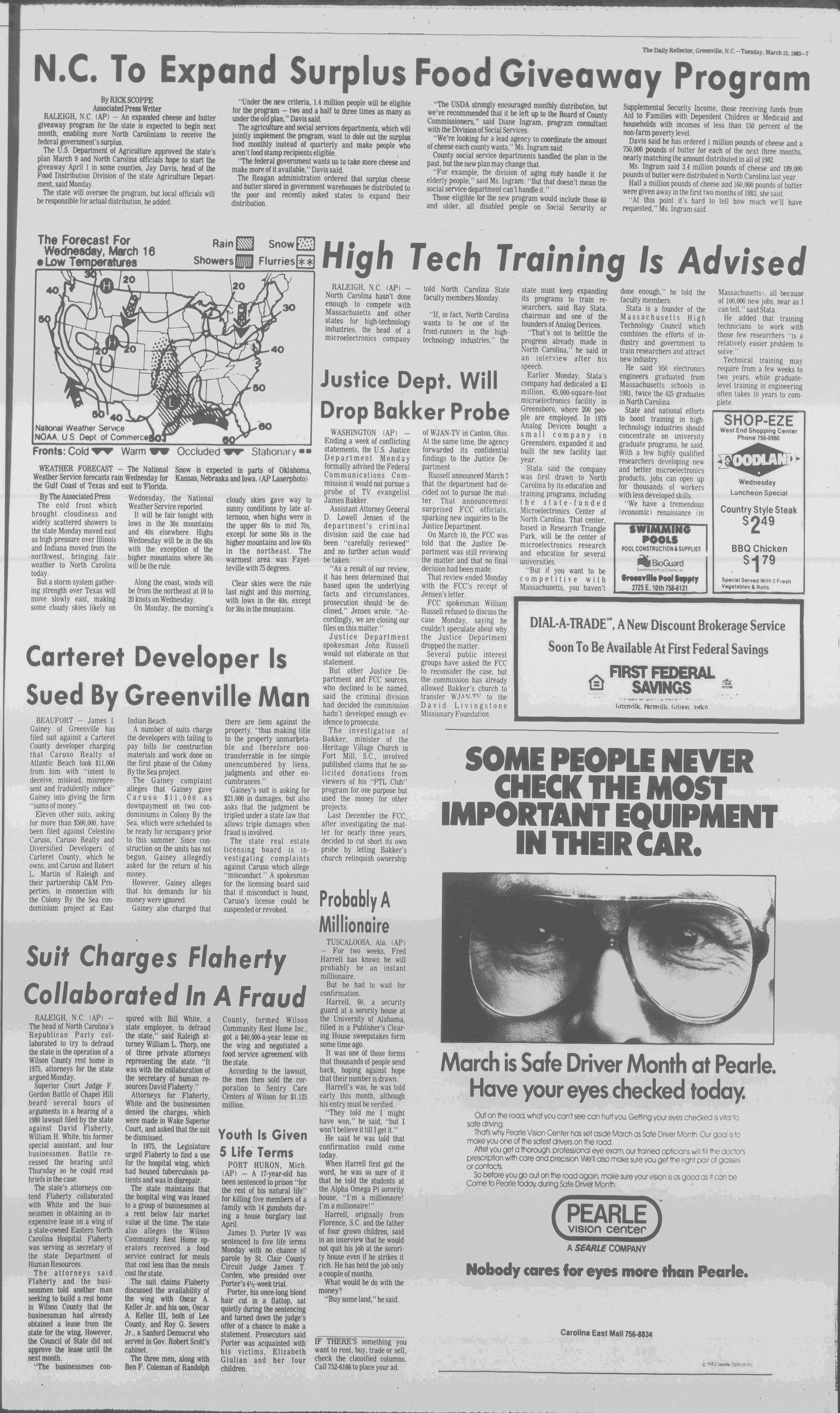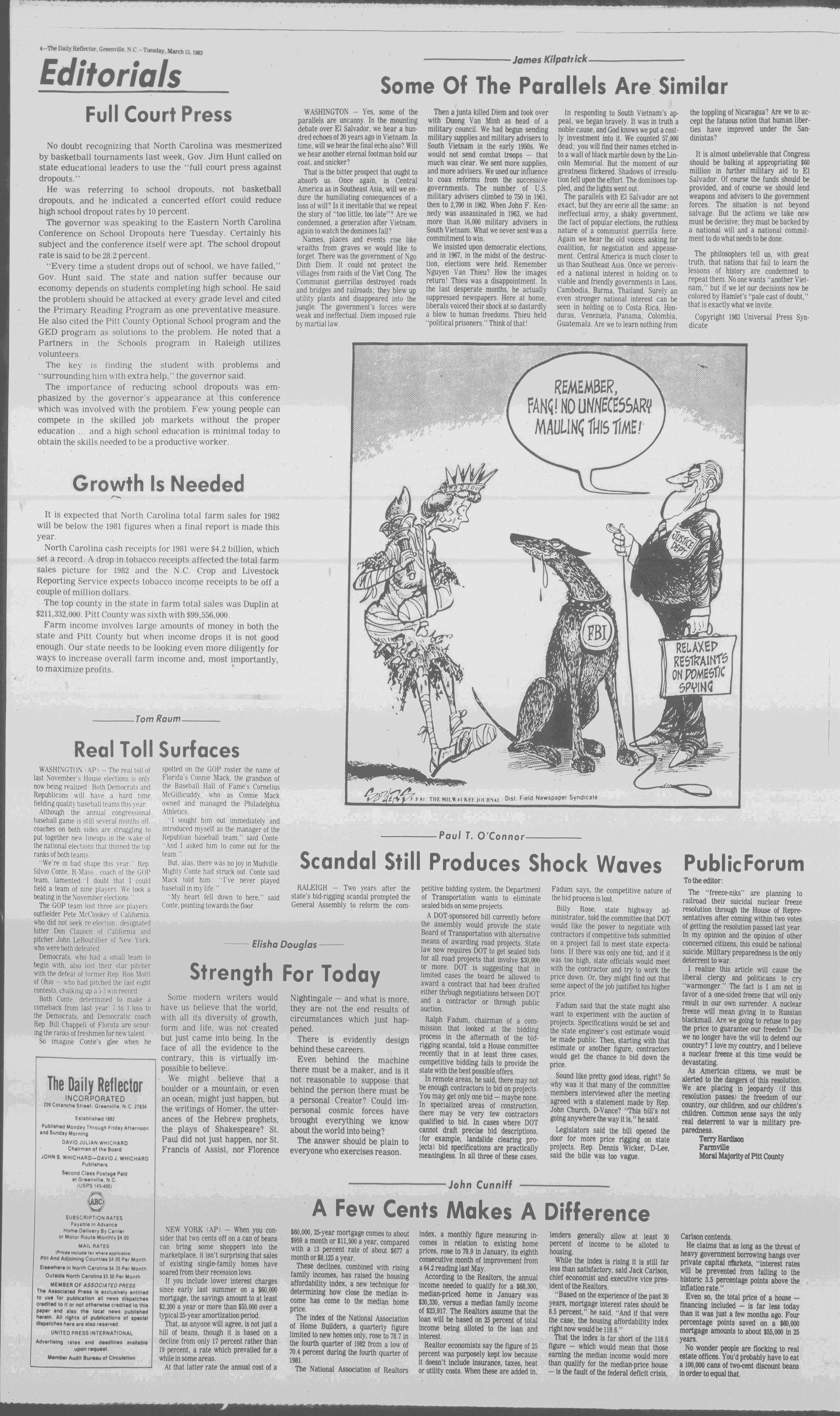 102NDYEAR NO. 63TRUTH IN PREFERENCE TO FICTION GREENVILLE, N.C. TUESDAY AFTERNOON, MARCH 15, 1983