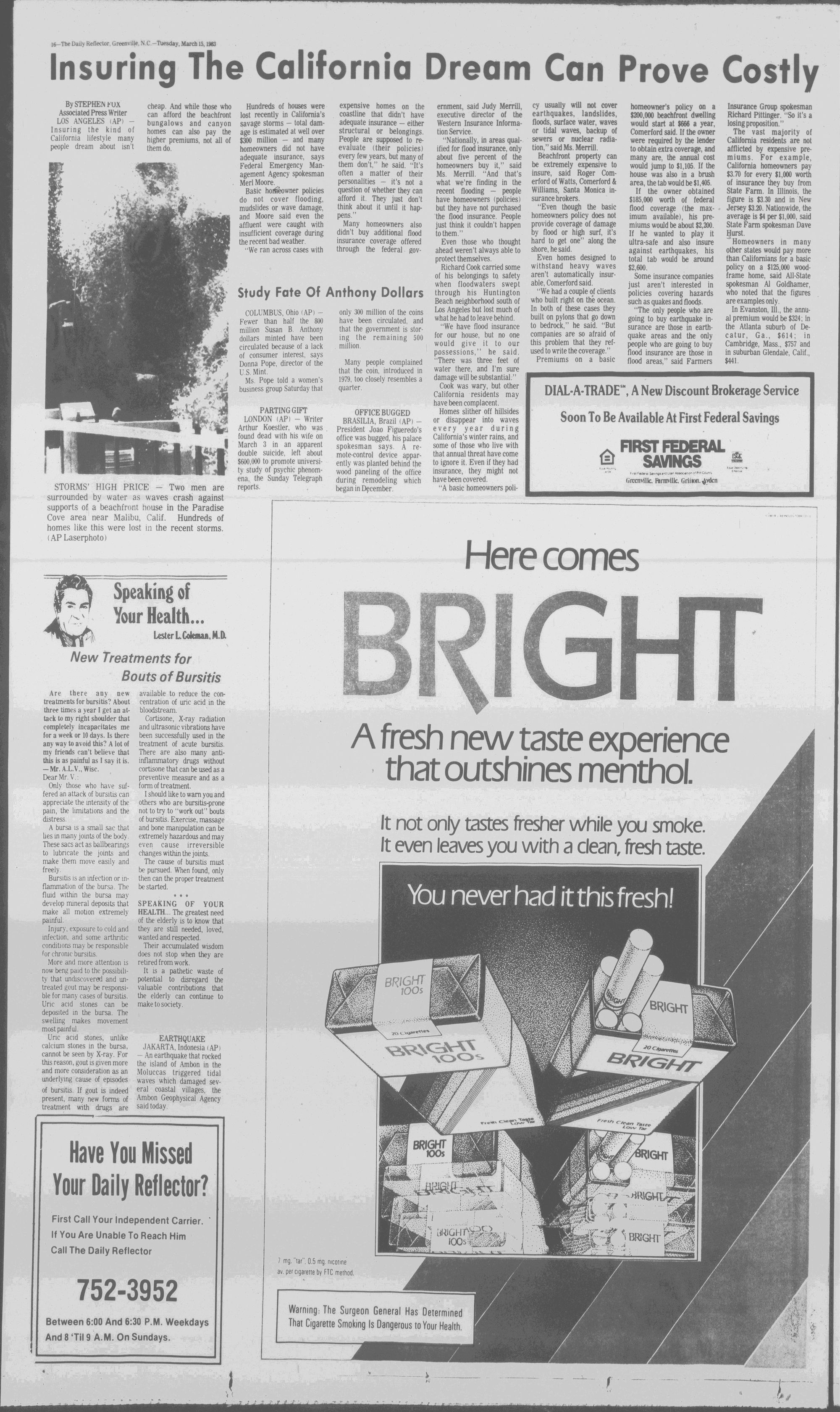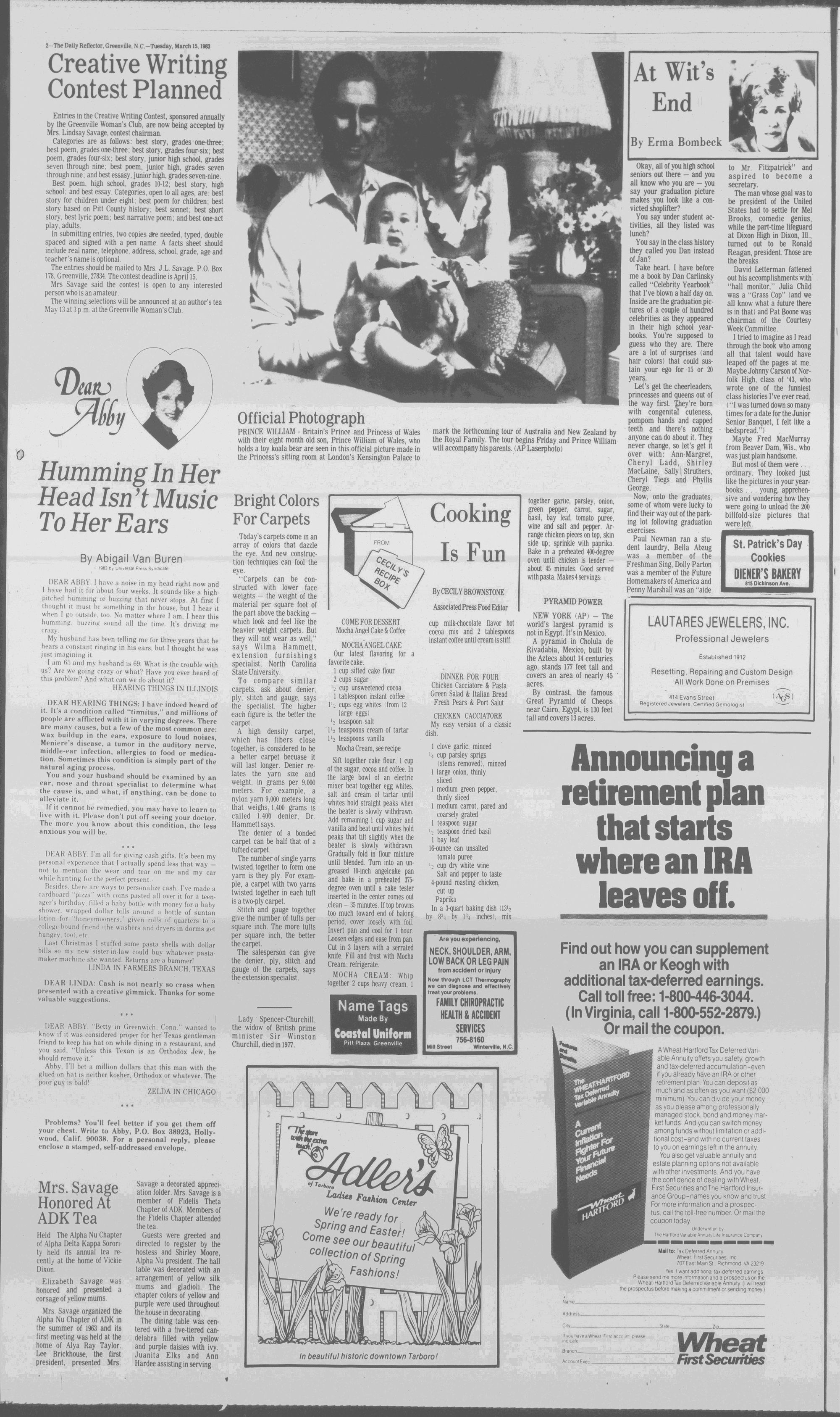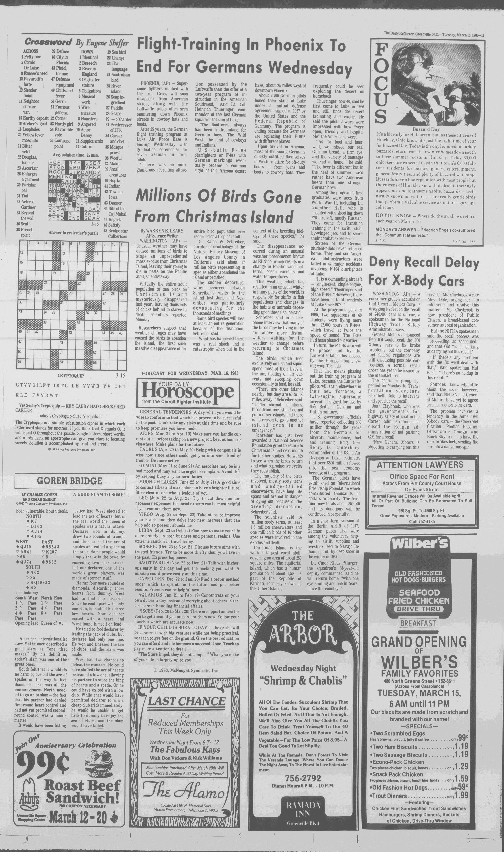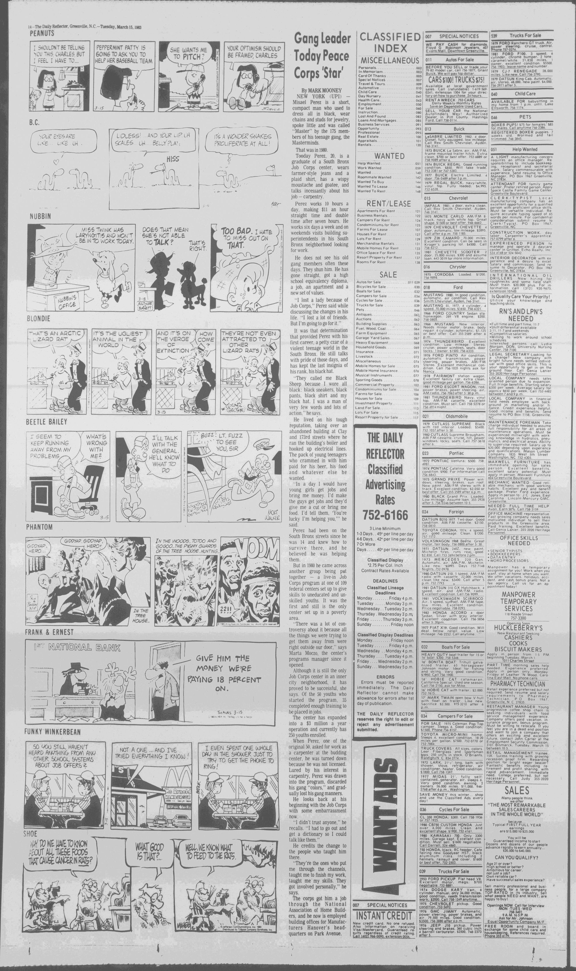102NDYEAR NO. 63TRUTH IN PREFERENCE TO FICTION GREENVILLE, N.C. TUESDAY AFTERNOON, MARCH 15, 1983